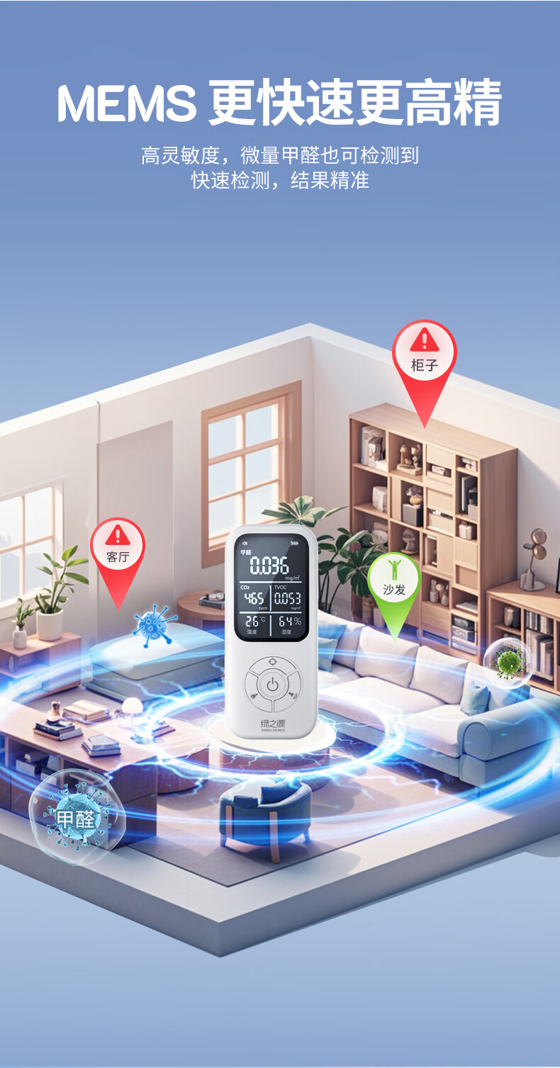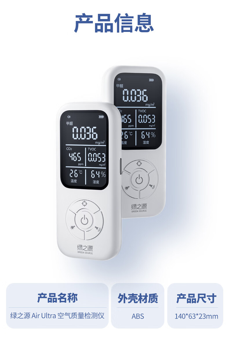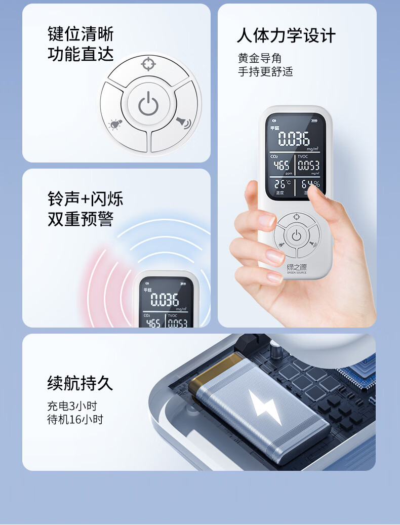 绿之源甲醛检测仪高精准便携多功能专业测甲醛仪器空气质量检测笔高精度