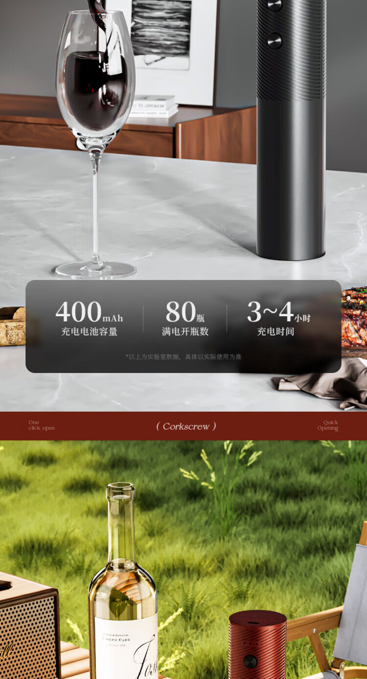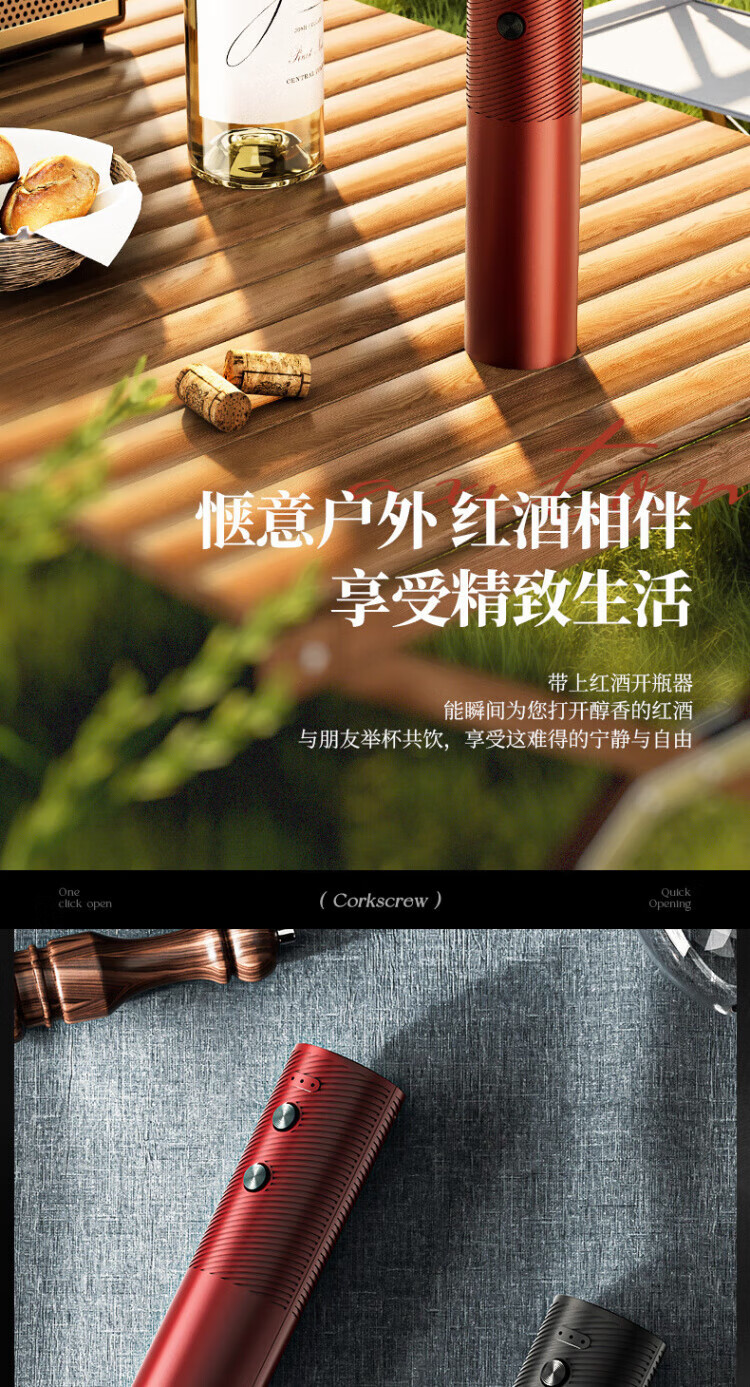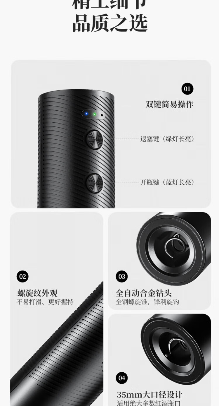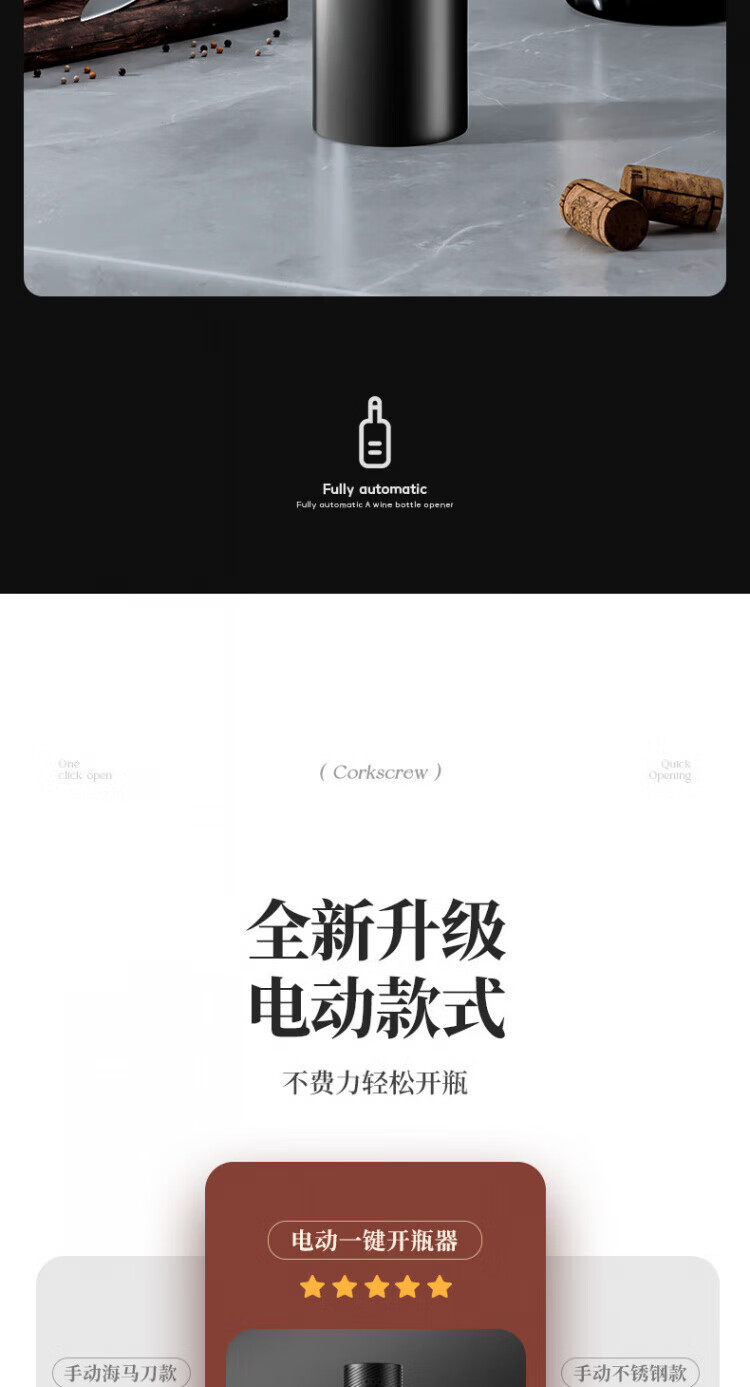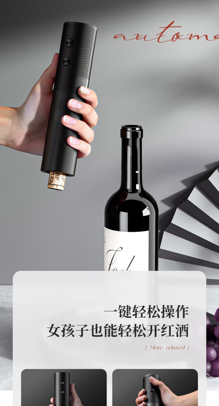 SSIIXX日本品牌红酒开瓶器送礼葡萄酒充电款电动启瓶器自动起子神器 501黑色