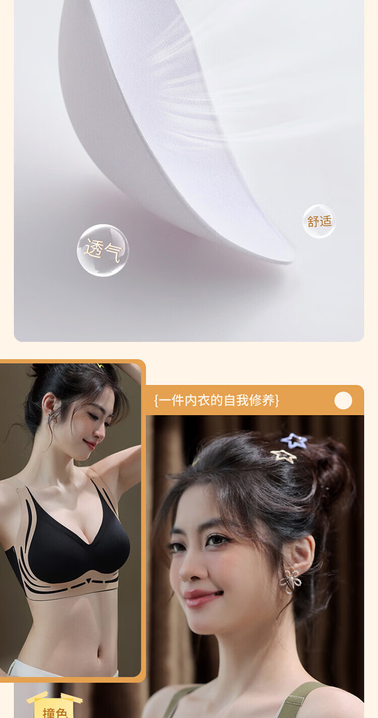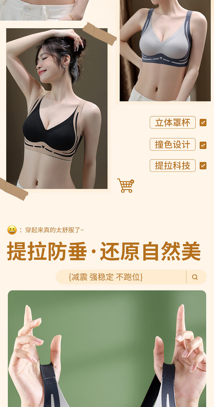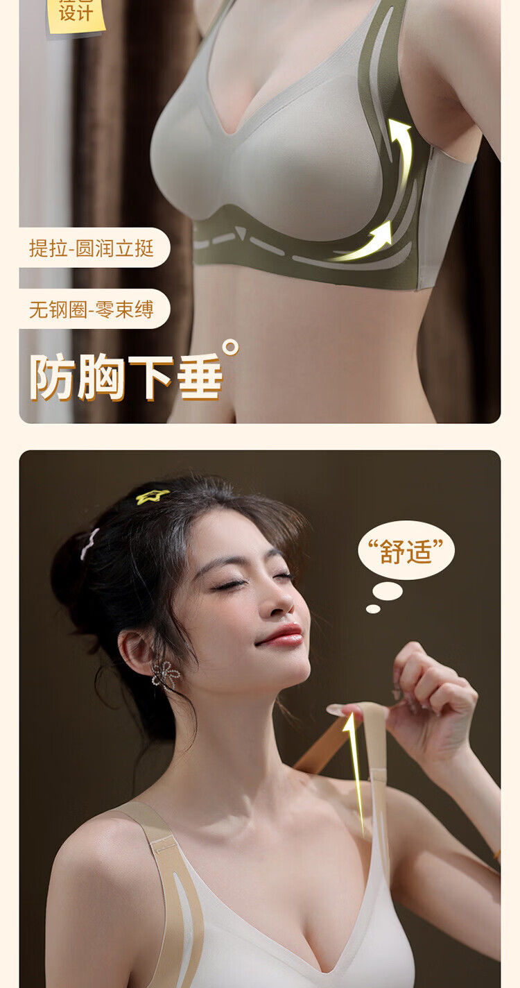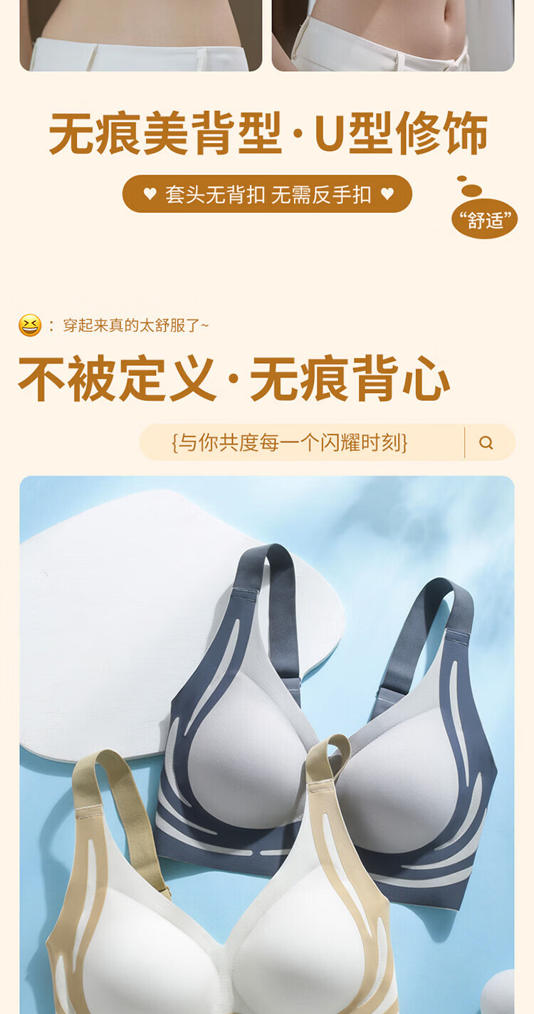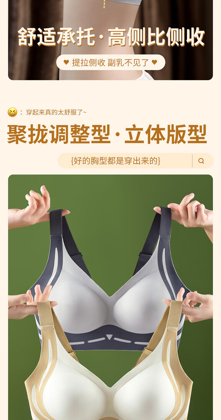 裳襟光面无痕内衣女B-D杯大码舒适聚拢反重力承托提拉透气软无钢圈 肤色 XL /38/BC通杯