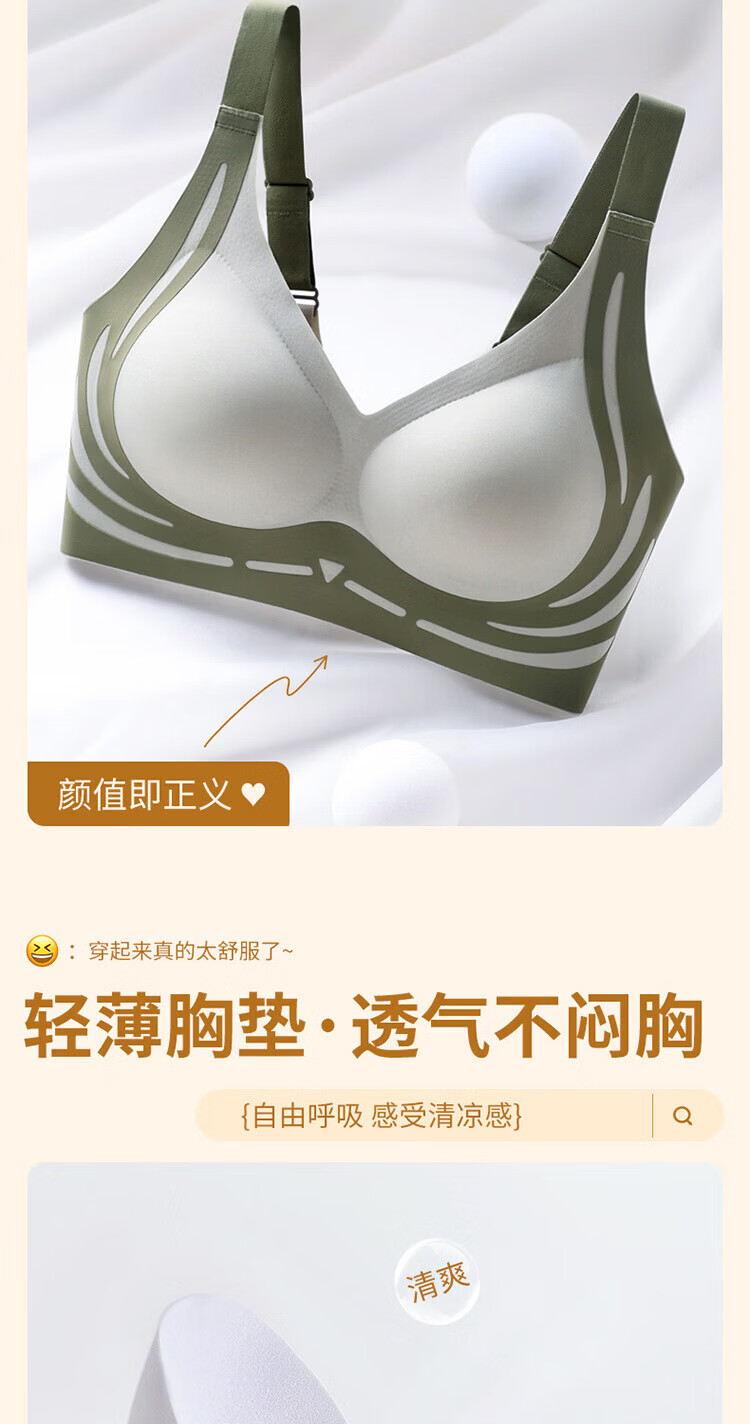 宜而爽聚拢美背小胸文胸内衣舒适运动夏季薄款一片式性感透气 绿色 2XL