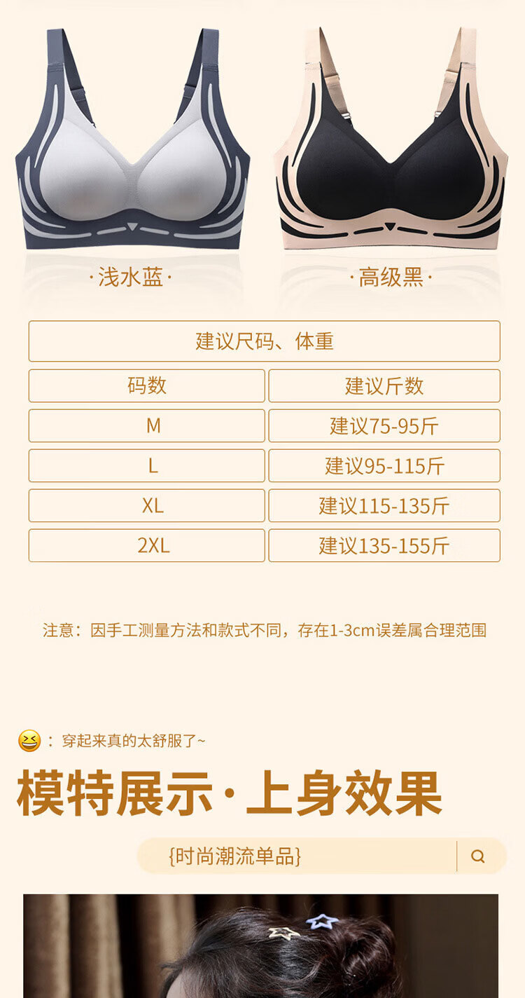 UFEEL清仓 痕舒适透气摩登系文胸女无钢圈文胸美背无痕显瘦内衣8668 黑白色颜色随机 单件 2XL 131-145斤