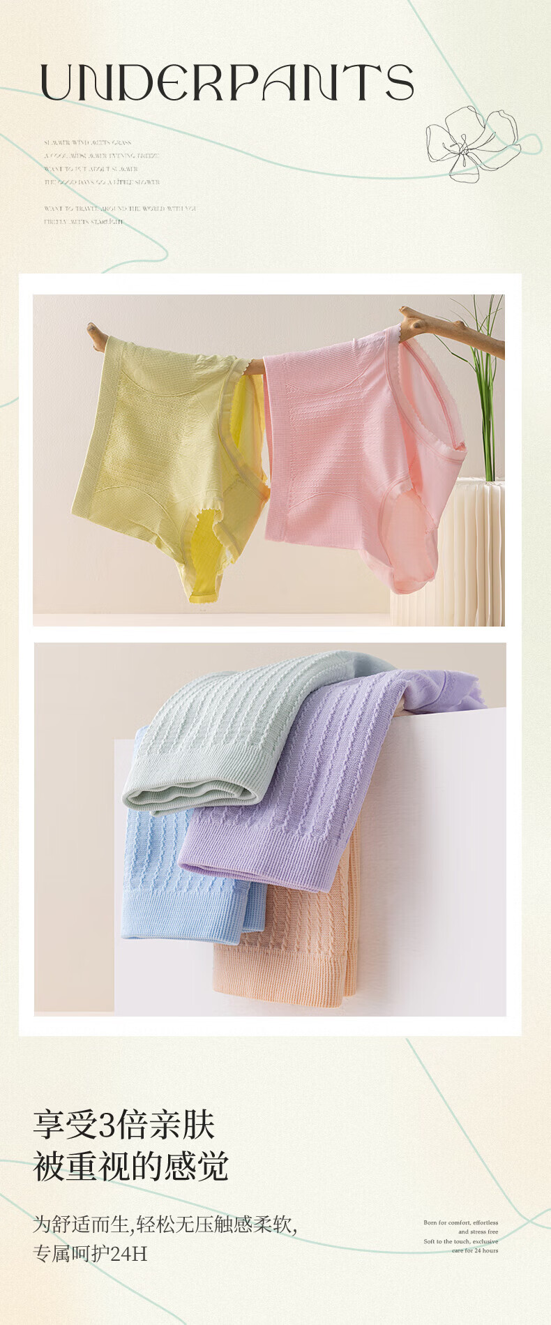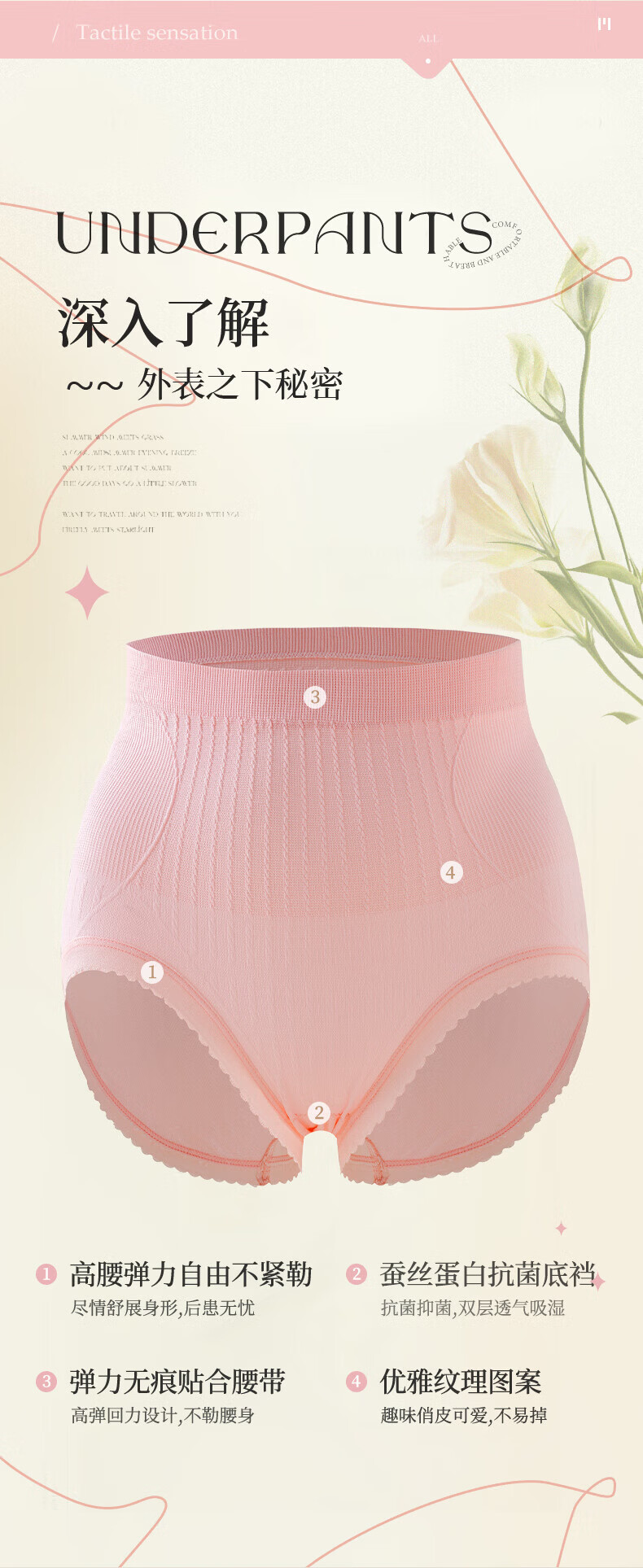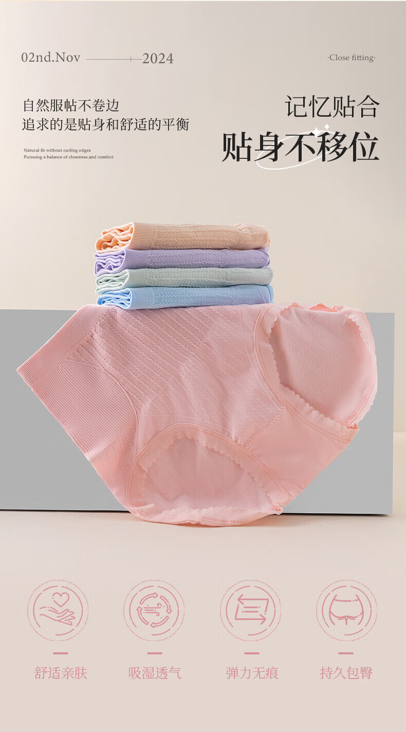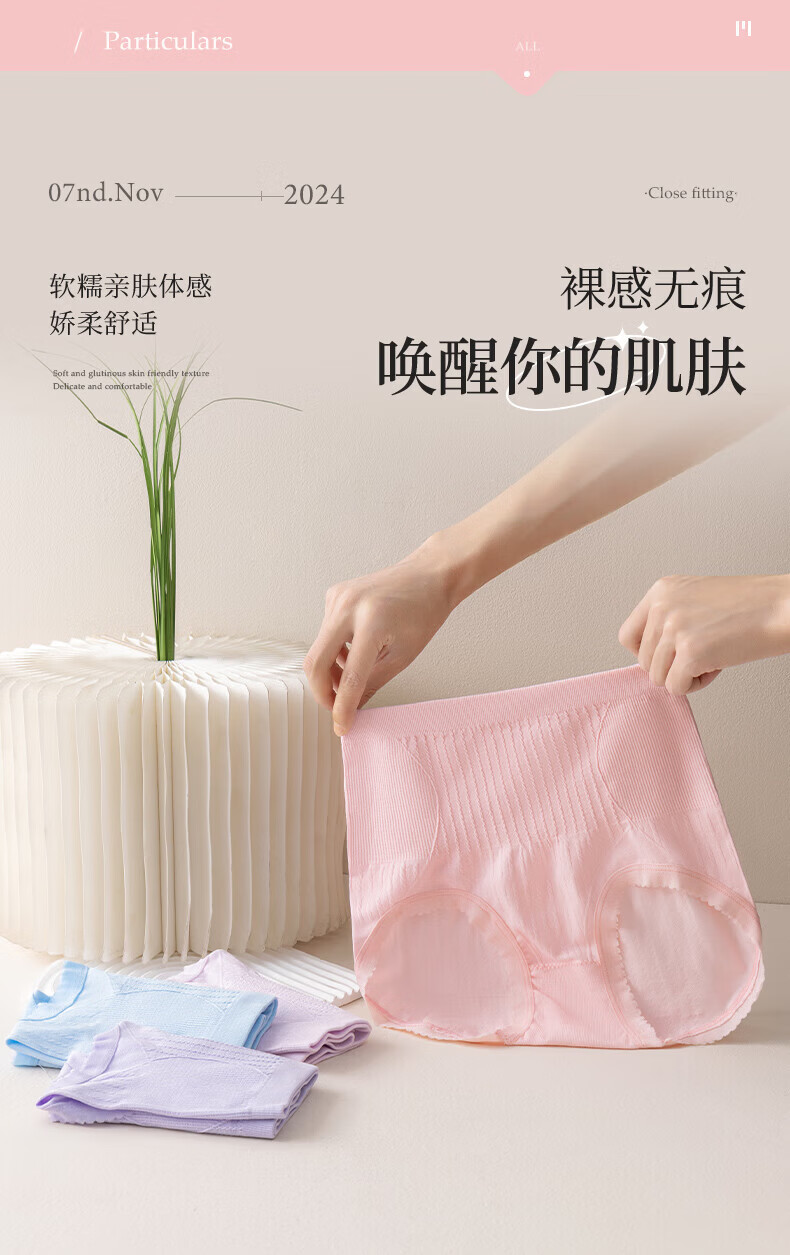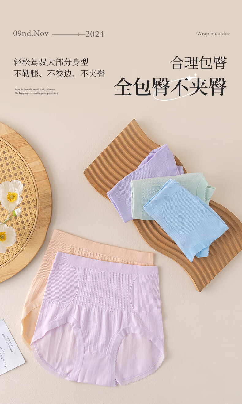 宜而爽秋冬季中高腰女士内裤高弹亲肤抗菌短裤舒适透气包臀无痕三角裤 4条装(颜色随机) XL 【亲肤高弹】 【130-170斤】