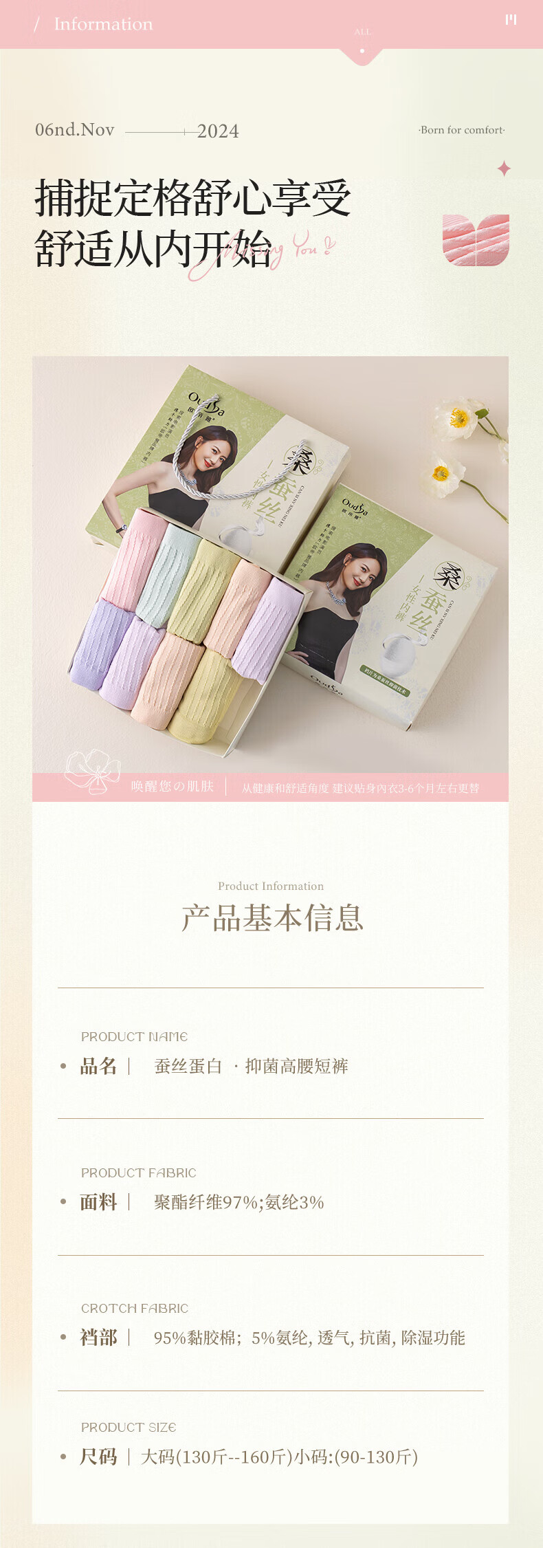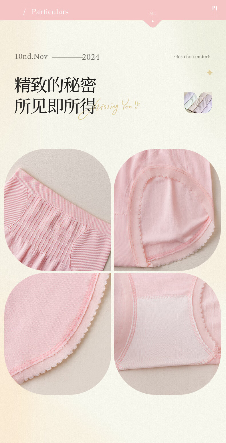 都市丽人可爱女士内裤抗菌莫兰迪色少女中腰全棉学生无痕蝴蝶结三角裤 浅灰,粉红,白色,豆绿,灰蓝,浅灰,粉红 L 建议165
