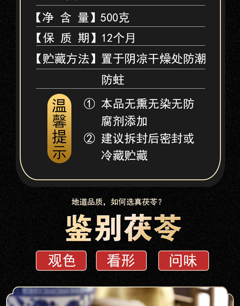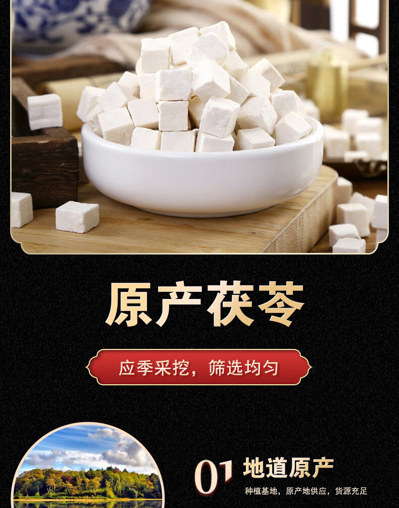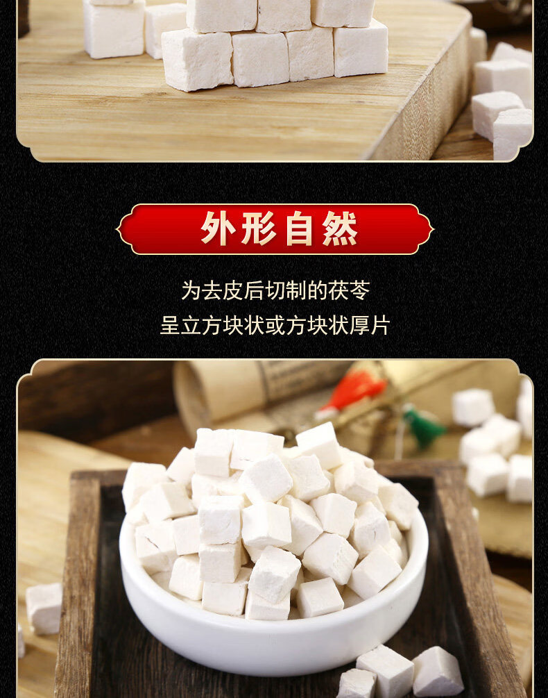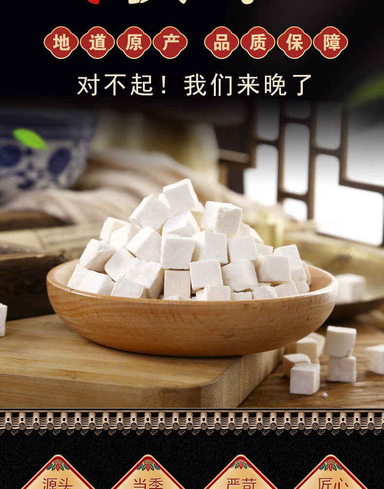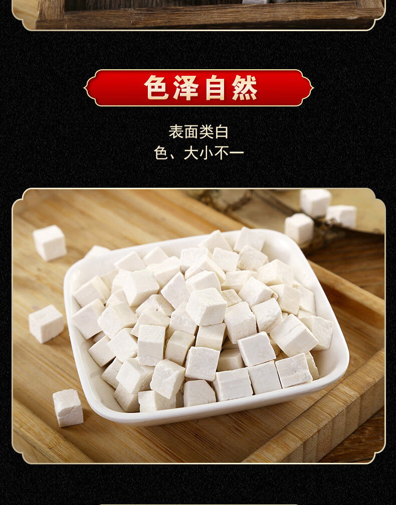 内廷上用云南茯苓500g克新货筛选白茯苓丁茯苓块茯苓粒可磨炒白茯苓粉 无硫茯苓100g(磨粉) 100g*1袋