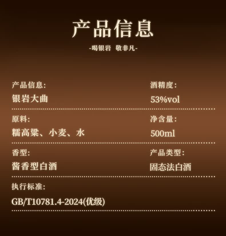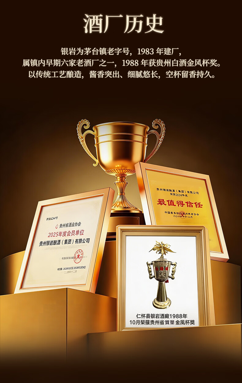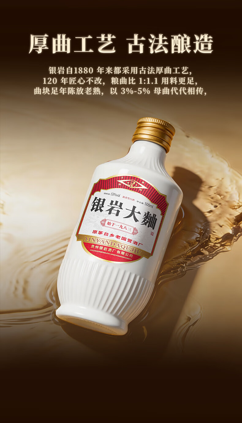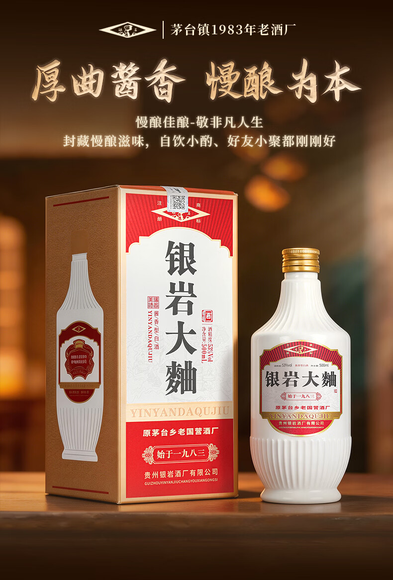 银岩大曲 大曲坤沙工艺 53度纯粮酱香酒 原国营老酱酒厂出品 53度 500mL 2瓶 加赠4瓶送3手提袋原箱发货