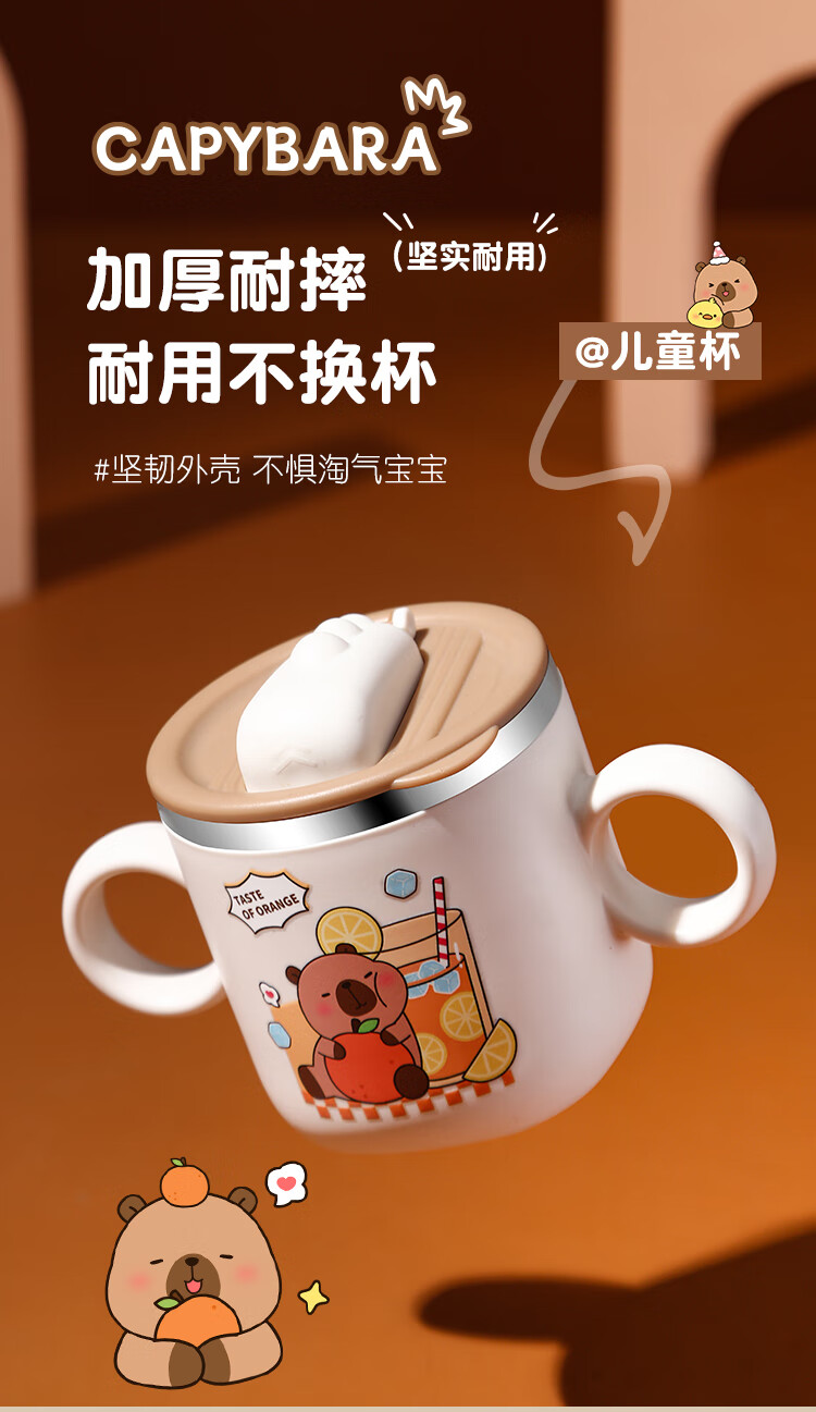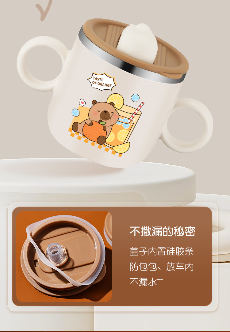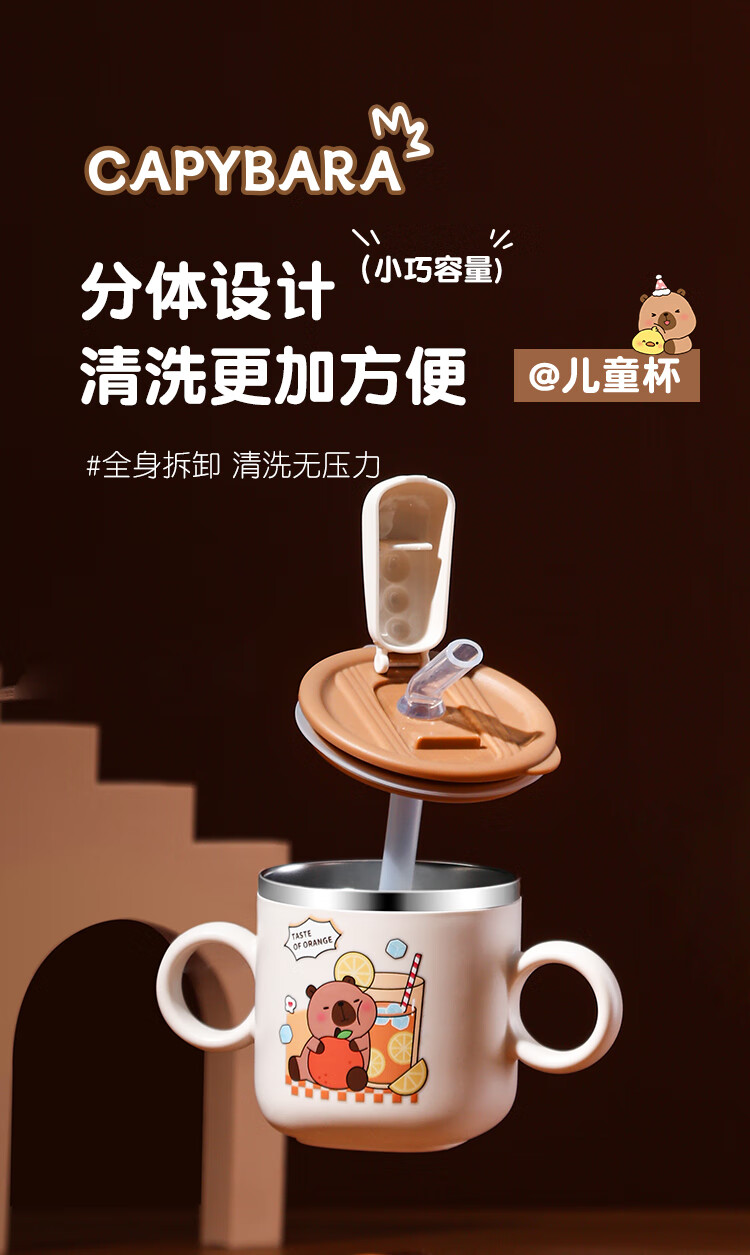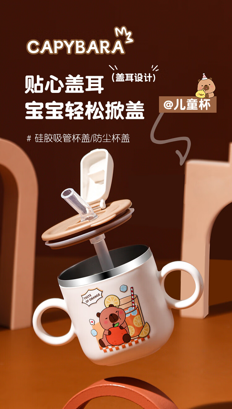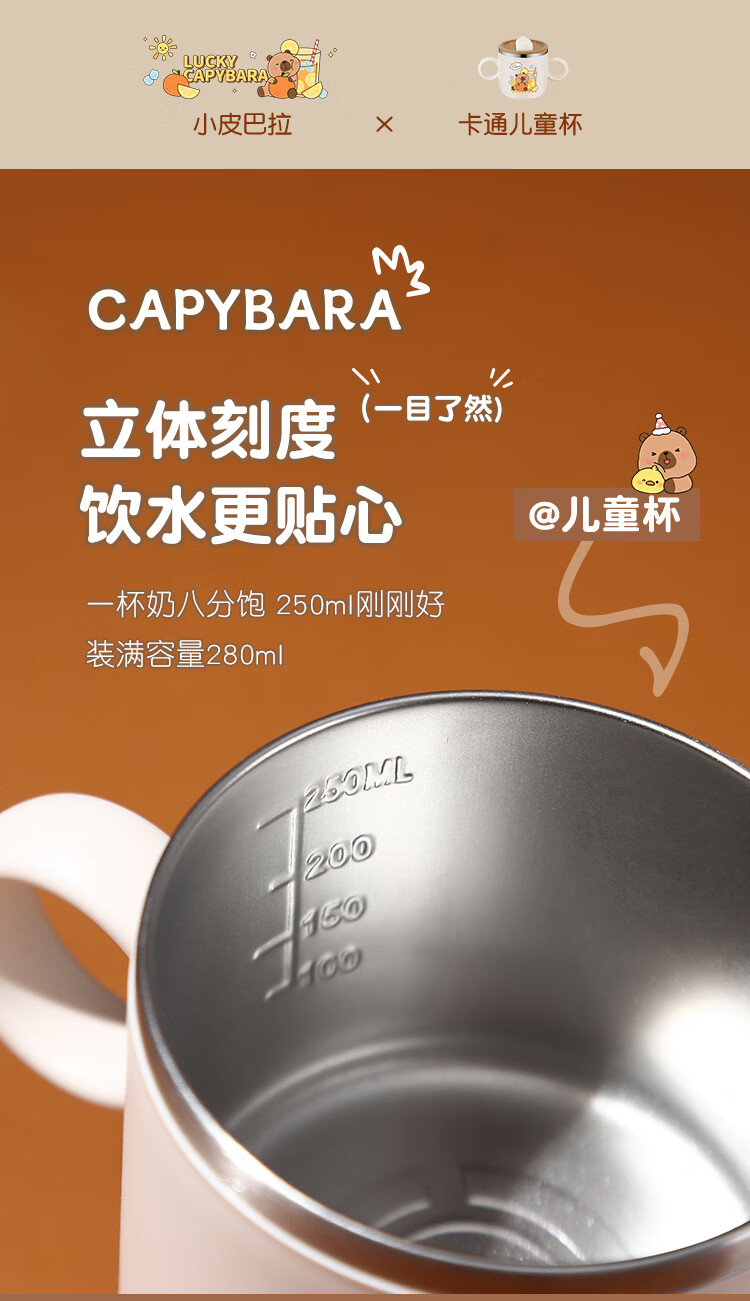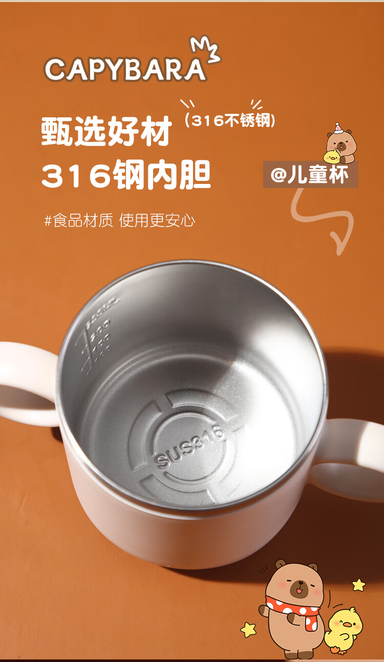 MPPMCK儿童饮水杯3-6岁316不锈钢儿童吸管杯带盖宝宝家用带刻度喝水杯幼 280ml 316小皮巴拉吸管杯