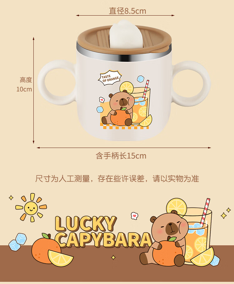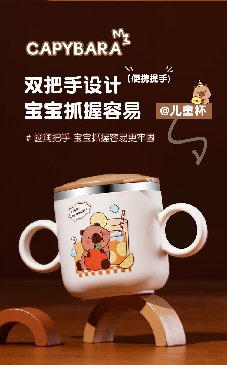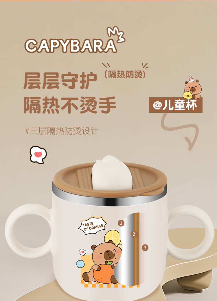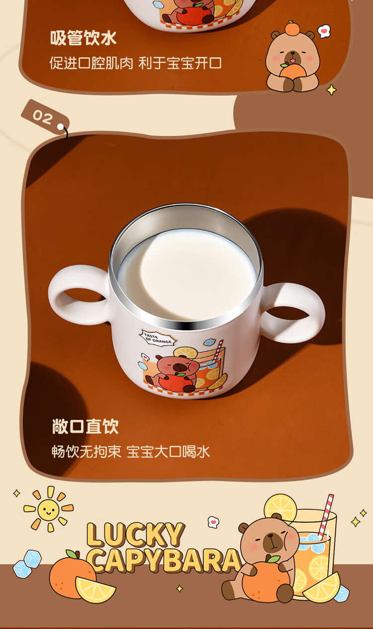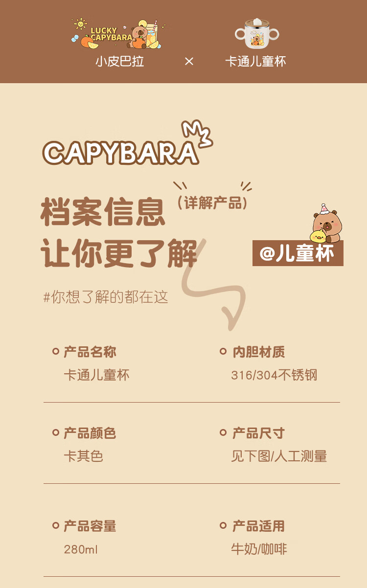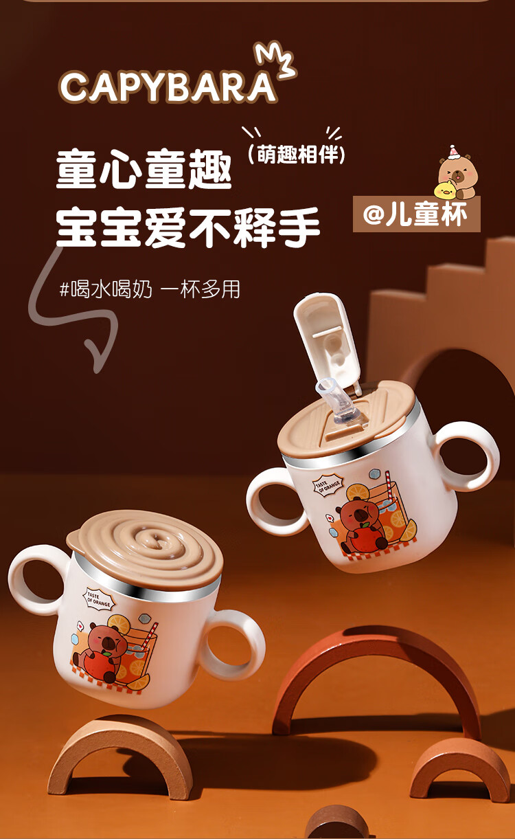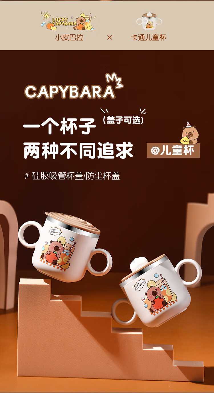 MPPMCK儿童饮水杯3-6岁316不锈钢儿童吸管杯带盖宝宝家用带刻度喝水杯幼 280ml 316小皮巴拉吸管杯