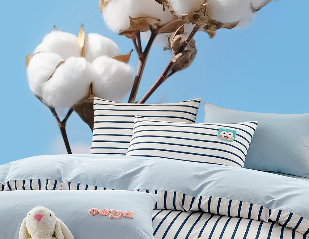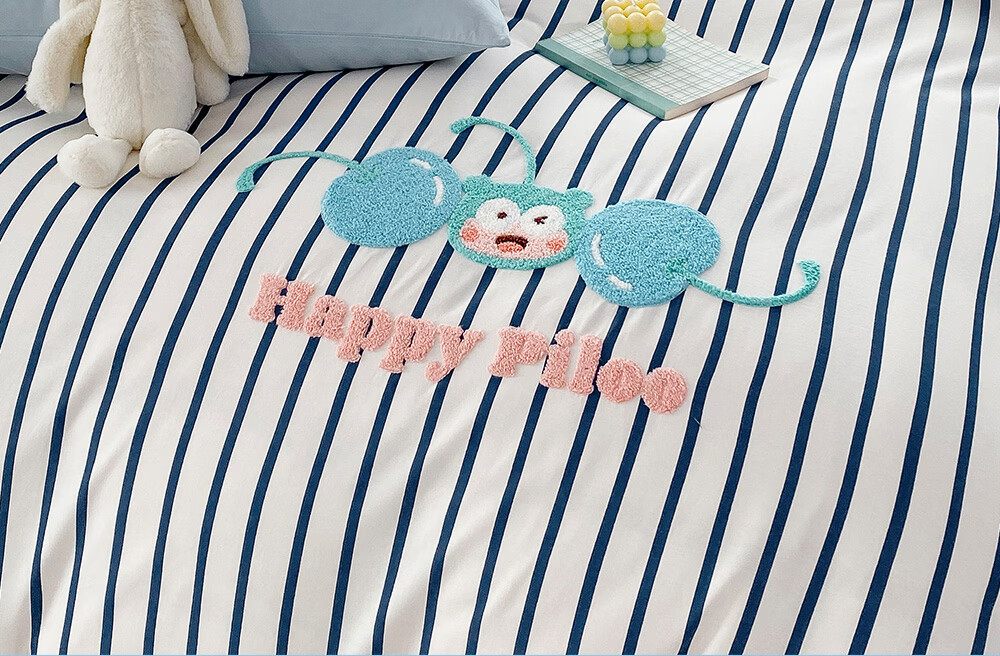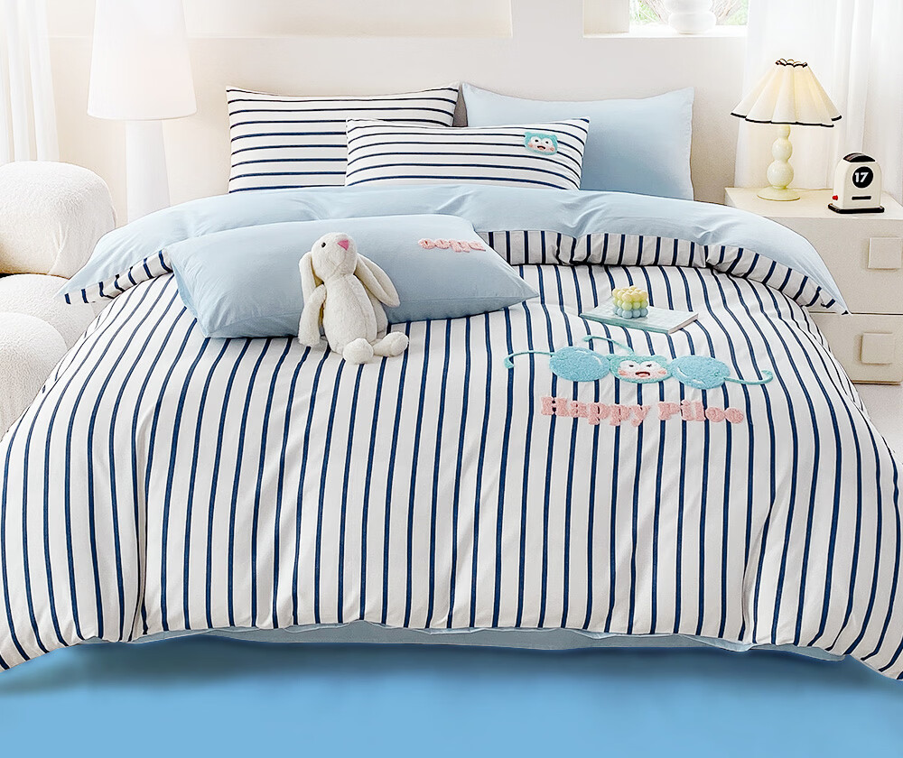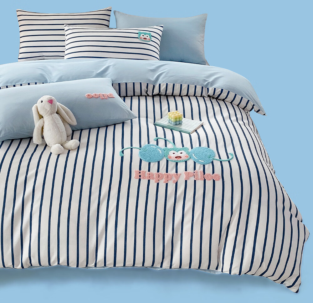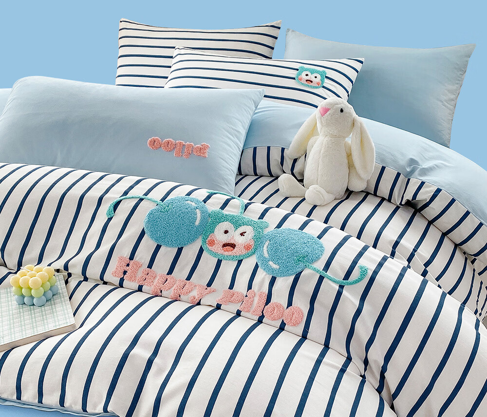 匹鲁100%纯棉三件套A类刺绣款全棉床单被套150*200cm 0.9/1.2米床