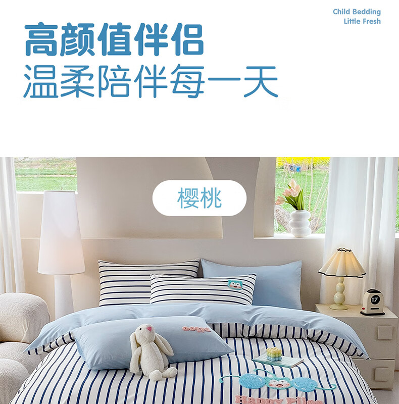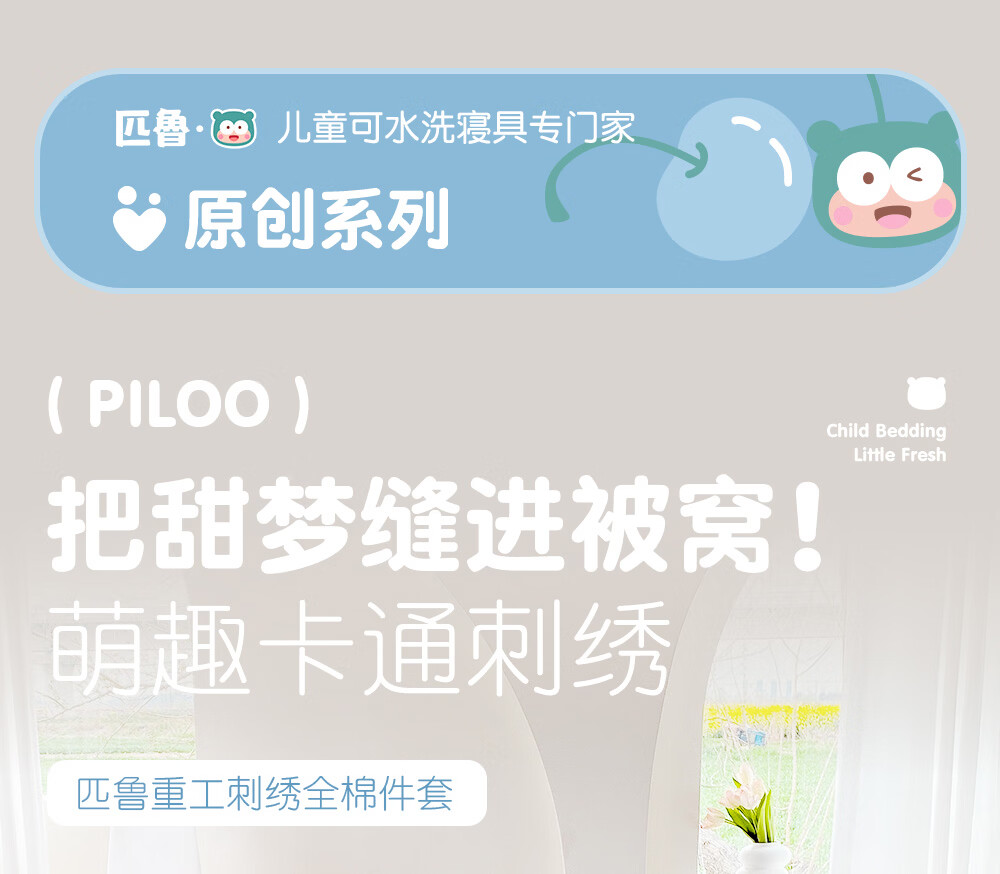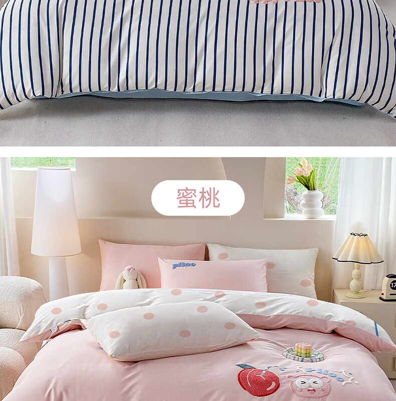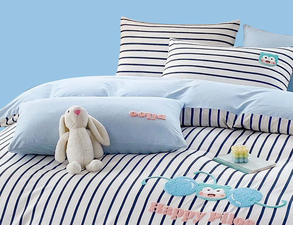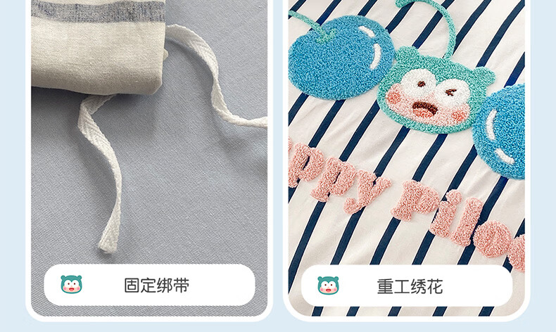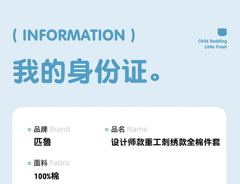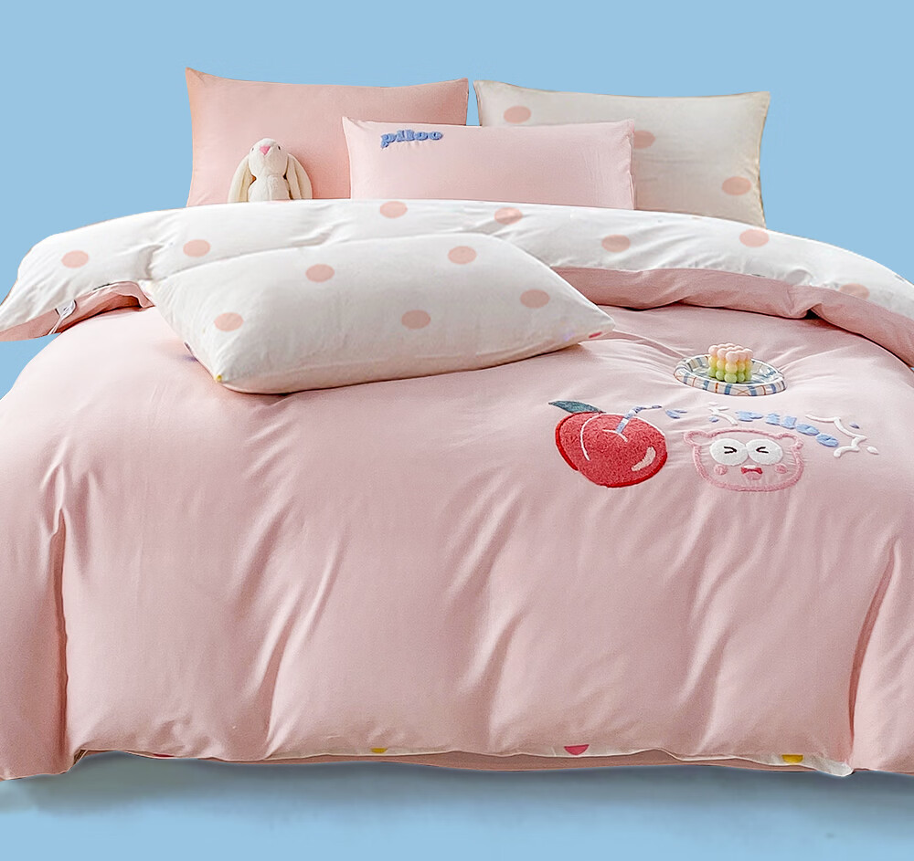 匹鲁100%纯棉三件套A类刺绣款全棉床单被套150*200cm 0.9/1.2米床
