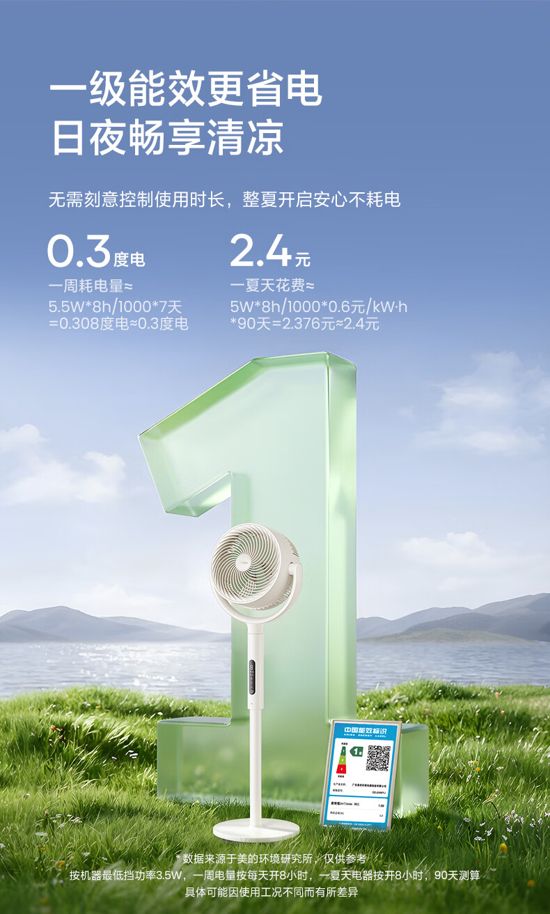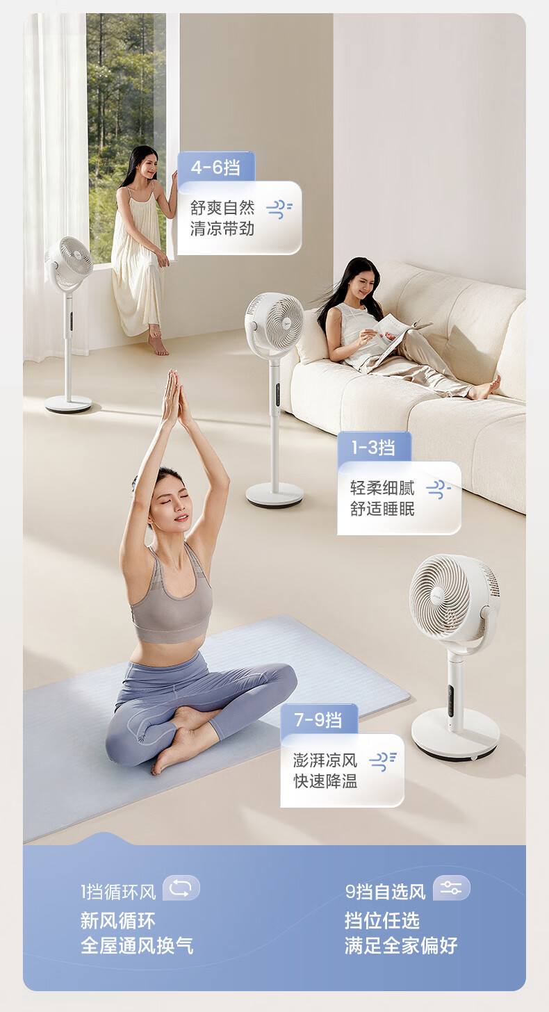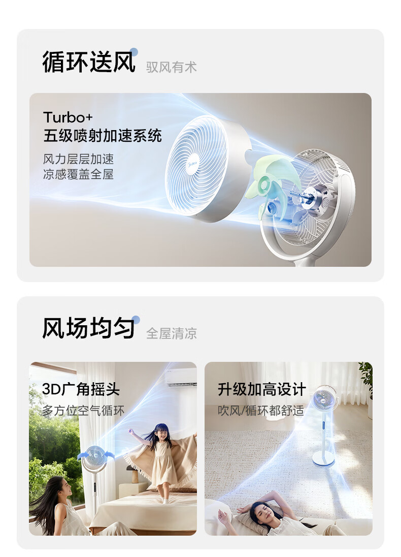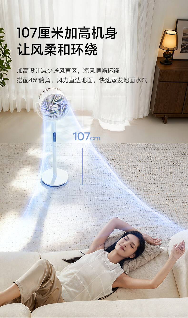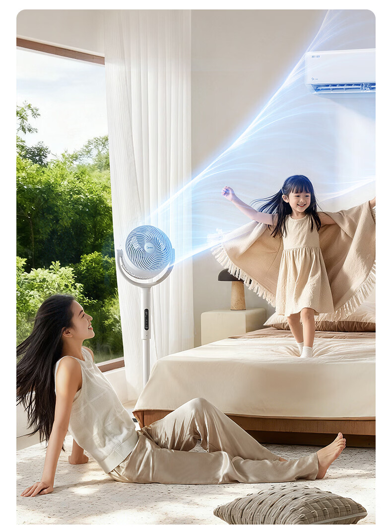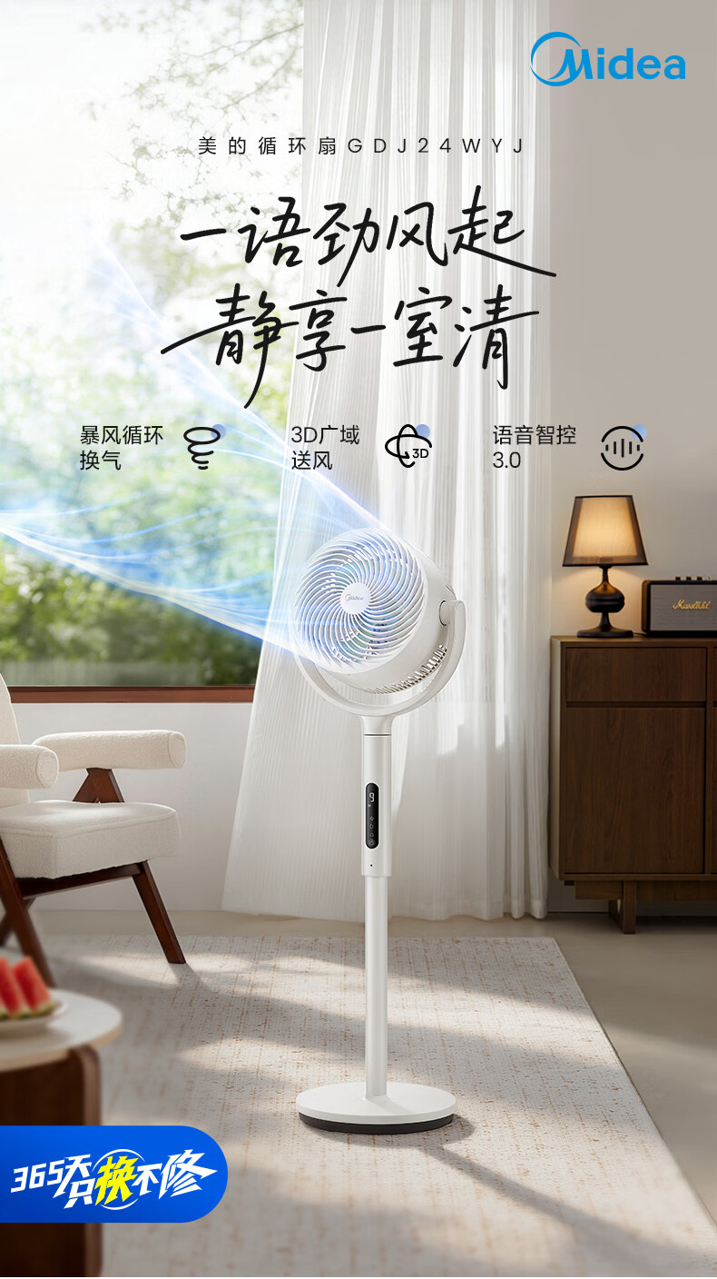 美的(Midea)【3D摇头】直流变频轻音落地空气循环扇家用卧室净化换气扇语音遥控电风扇大风力一级能效GDJ24WYJ