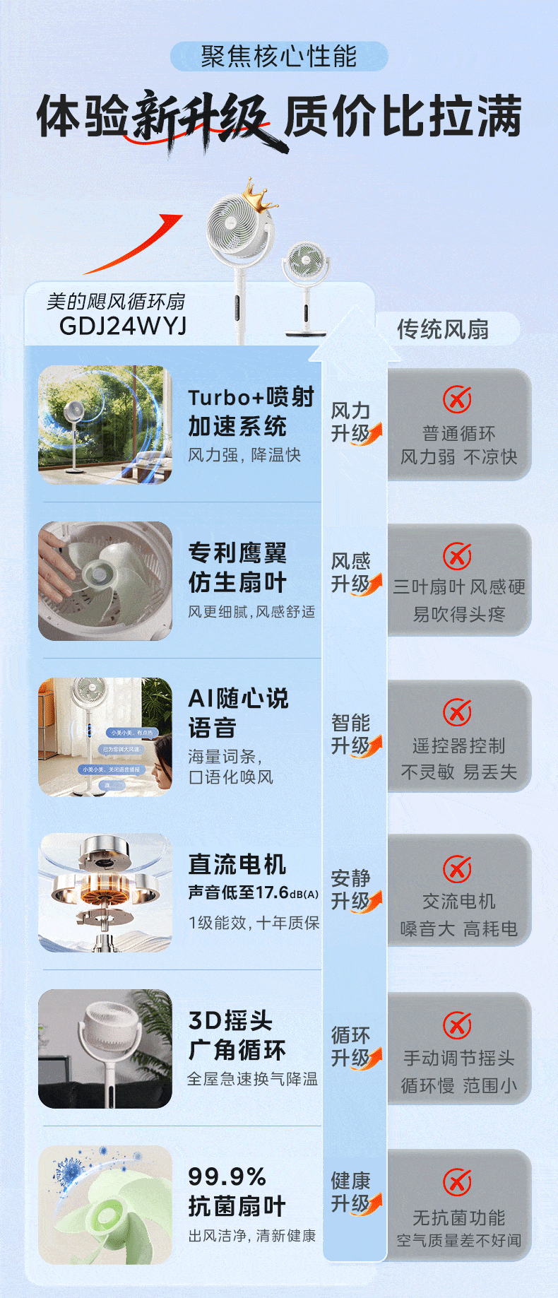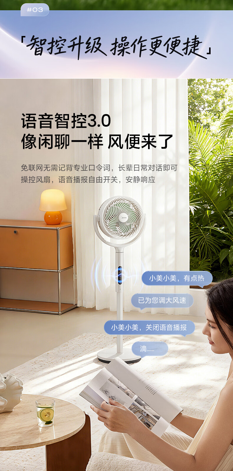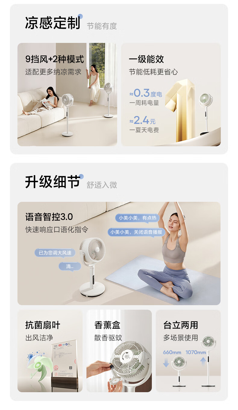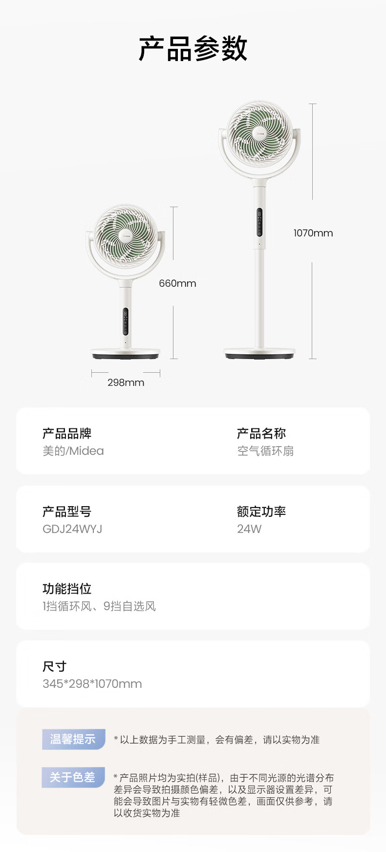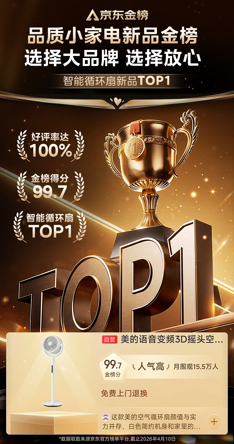 美的(Midea)【3D摇头】直流变频轻音落地空气循环扇家用卧室净化换气扇语音遥控电风扇大风力一级能效GDJ24WYJ