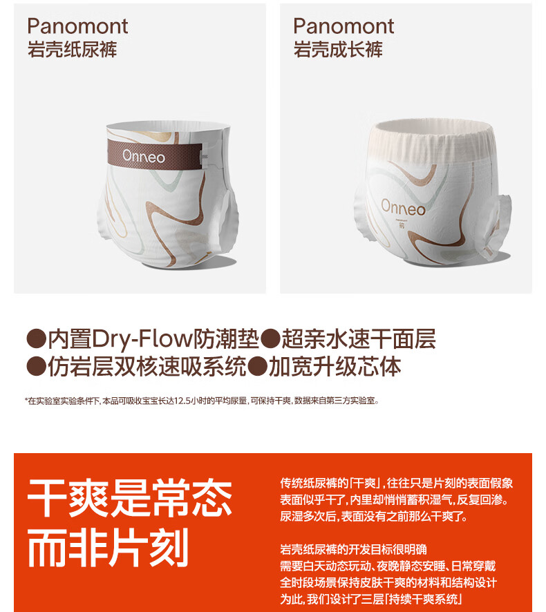 onneo昂乐岩壳透气婴儿尿不湿秋冬干爽大吸量拉拉裤XL码4片
