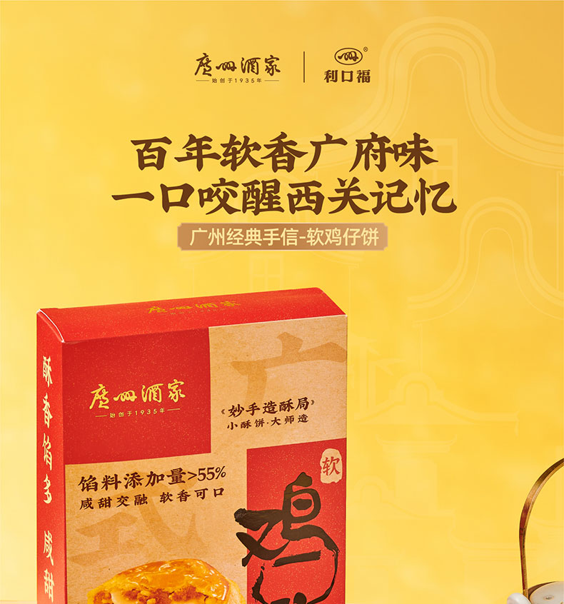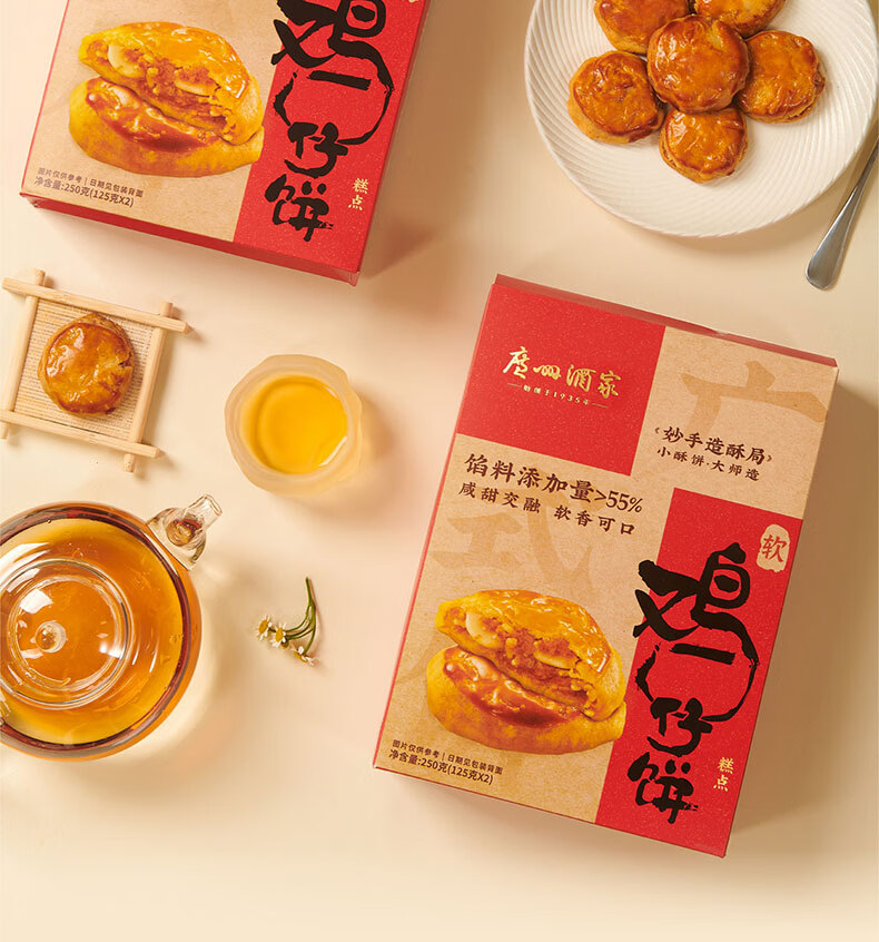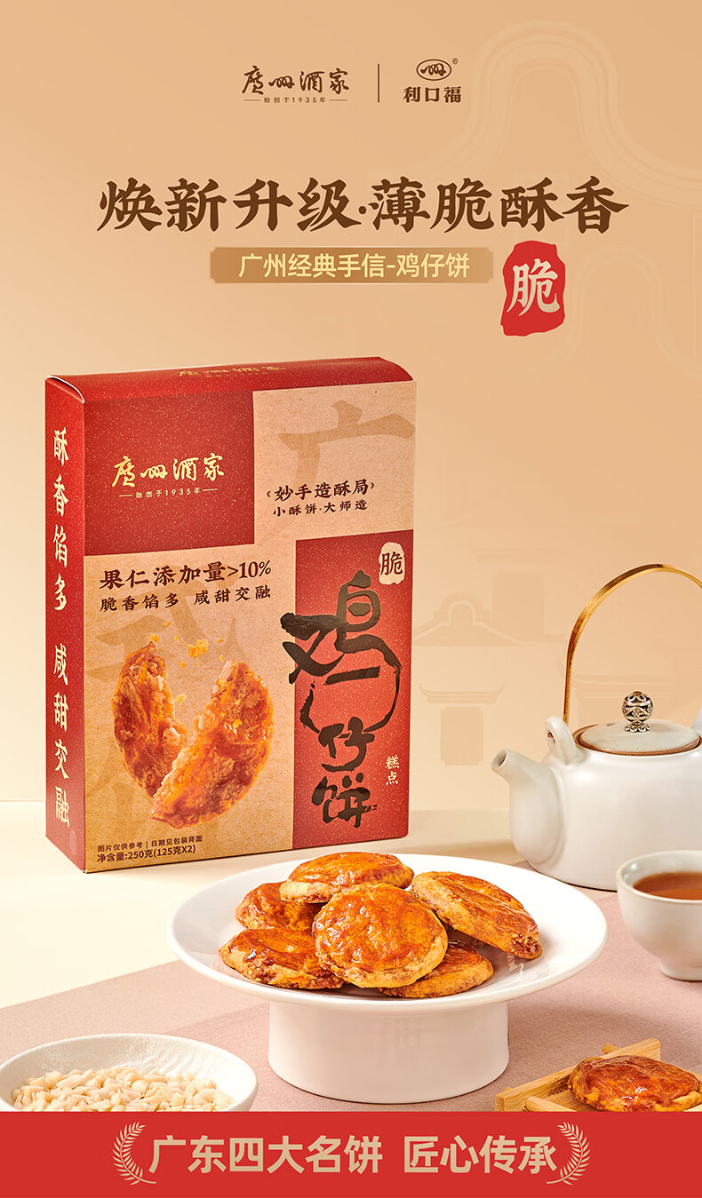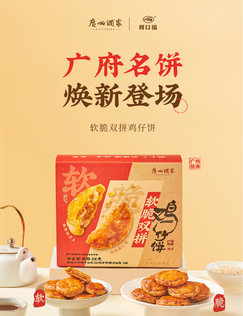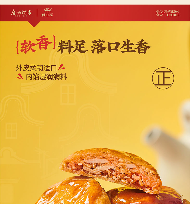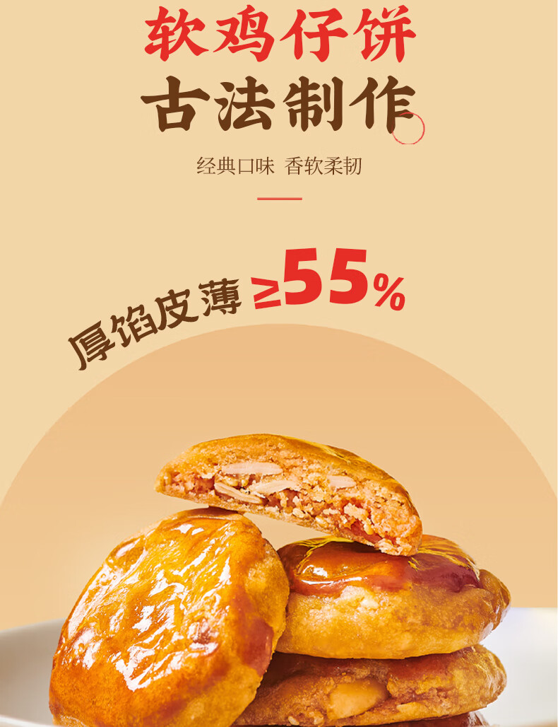 广州酒家广式饼酥糕点休闲零食饼干下午茶解馋小零食广东特产送礼广州手信 【湿润满料】软鸡仔饼250g