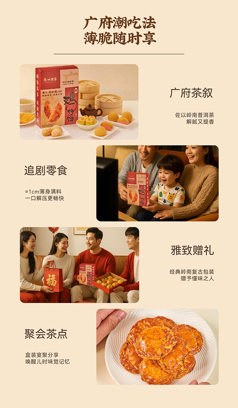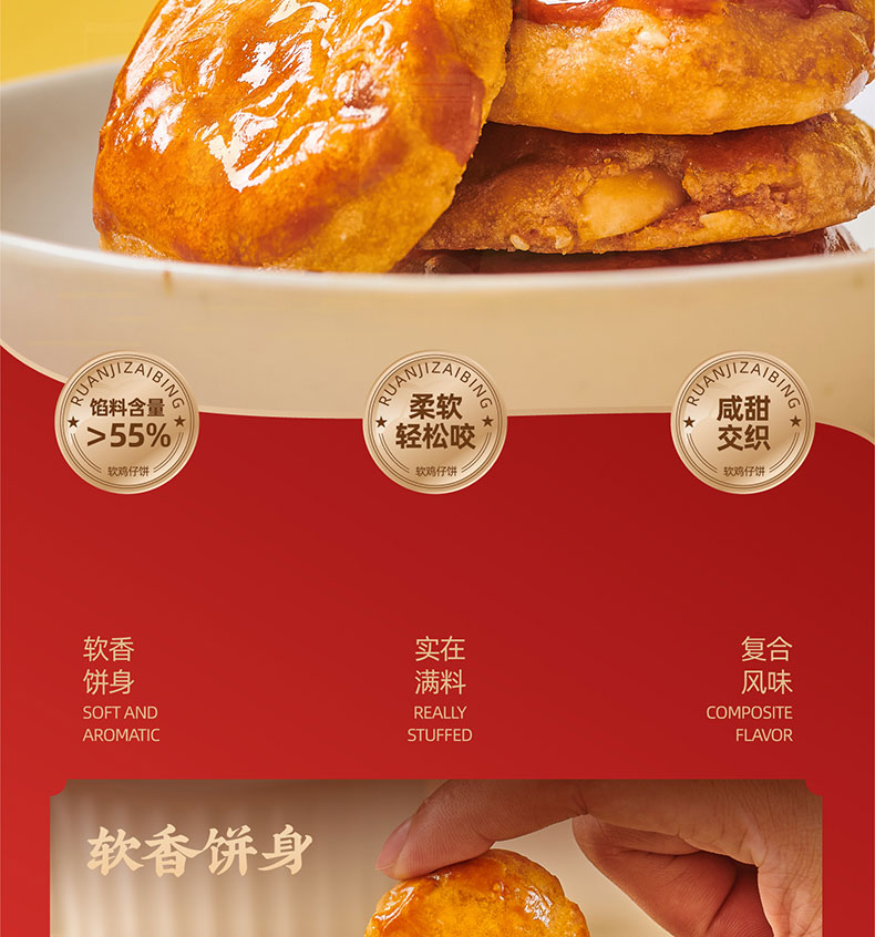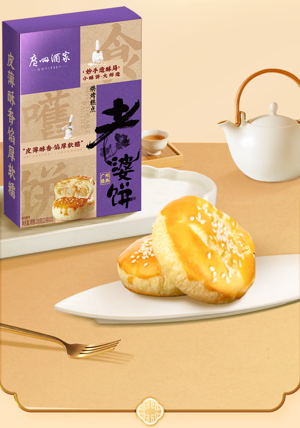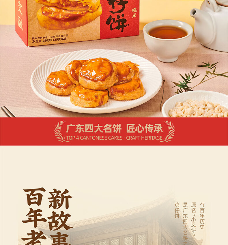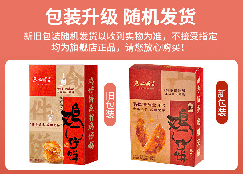 广州酒家广式饼酥糕点休闲零食饼干下午茶解馋小零食广东特产送礼广州手信 【湿润满料】软鸡仔饼250g