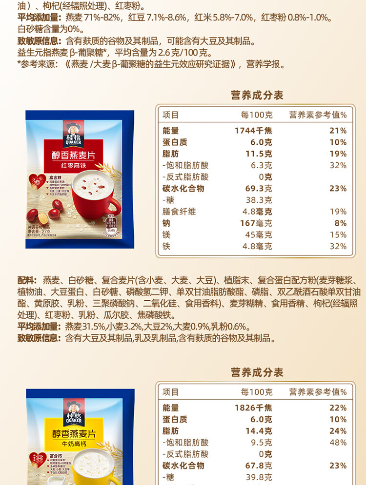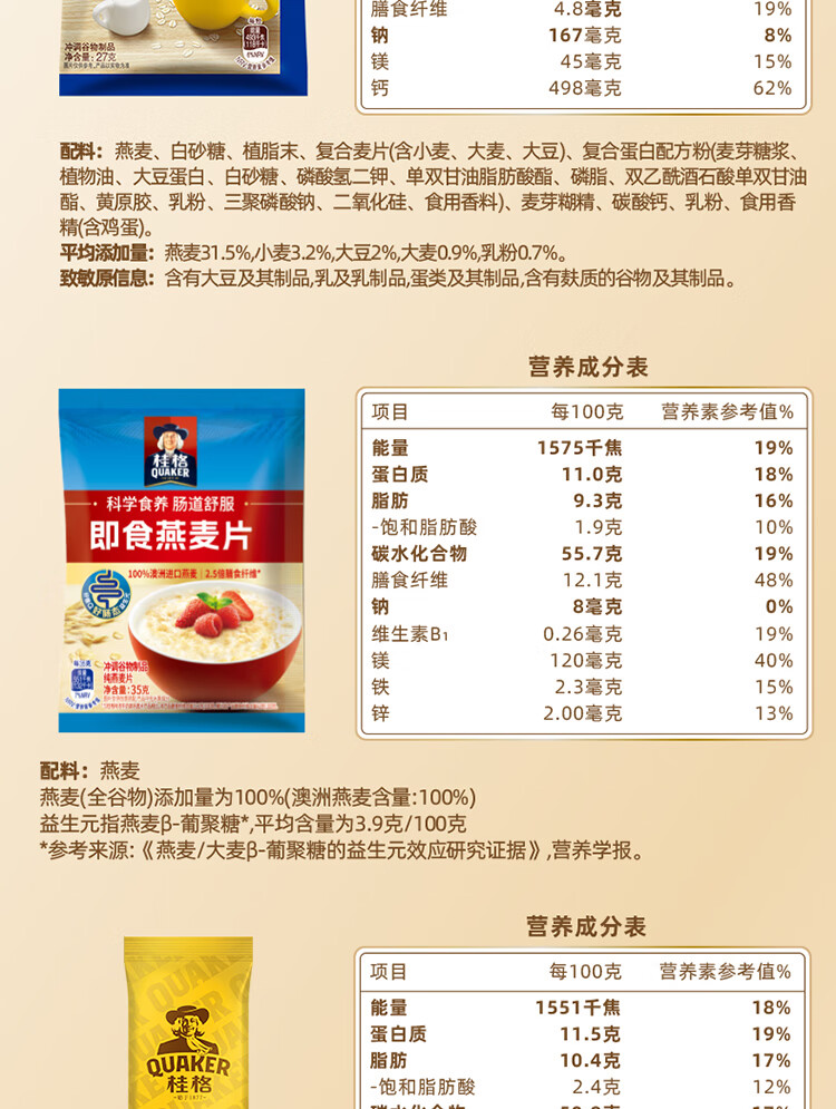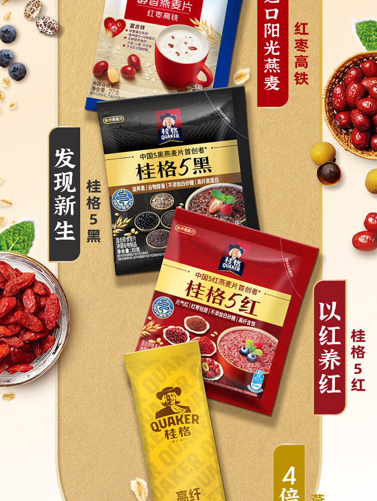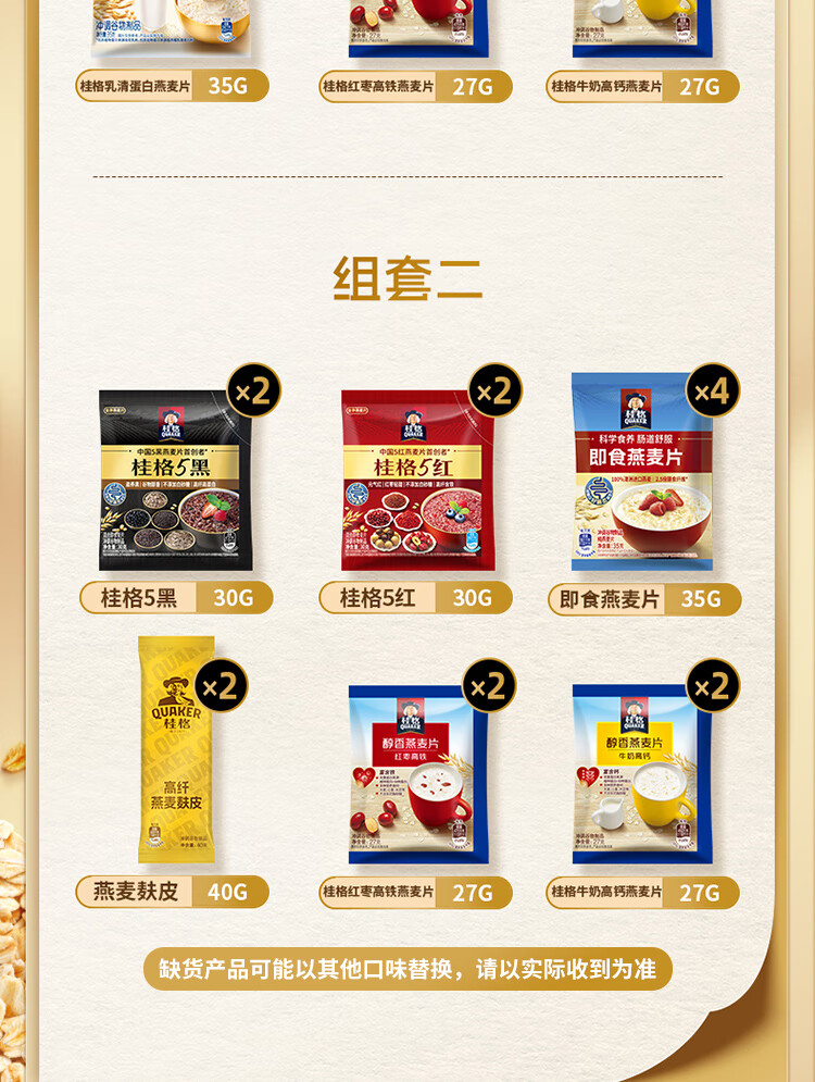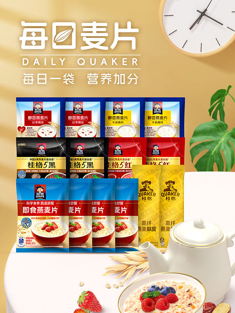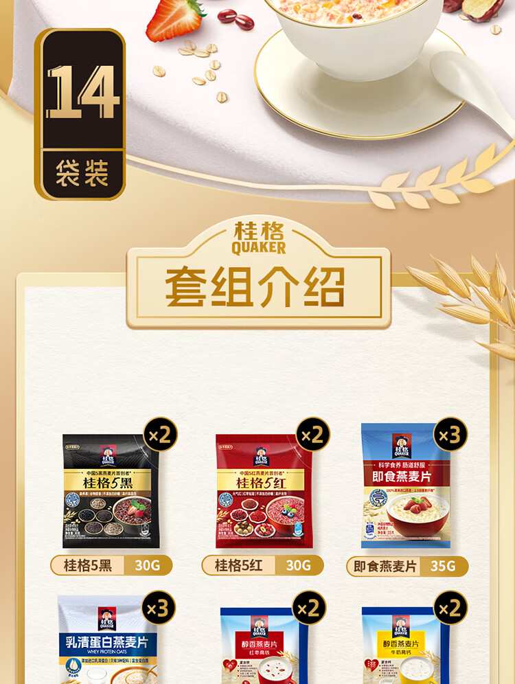 桂格14天多口味麦片组合 营养早餐 膳食纤维 独立小包