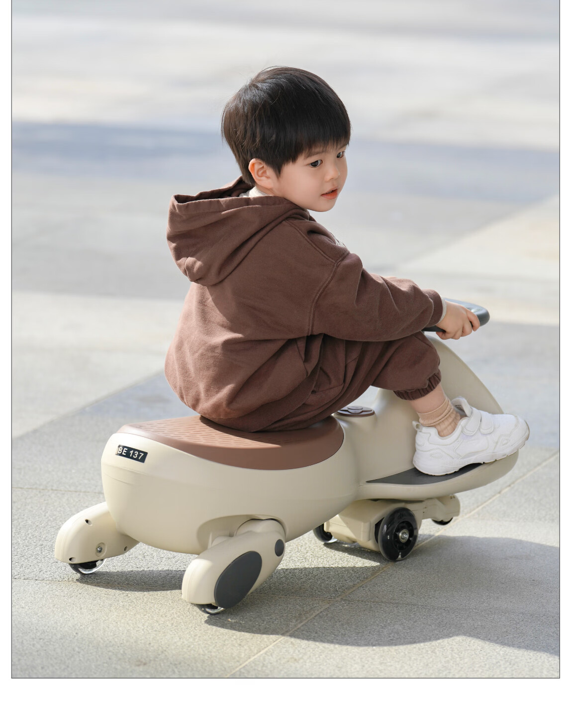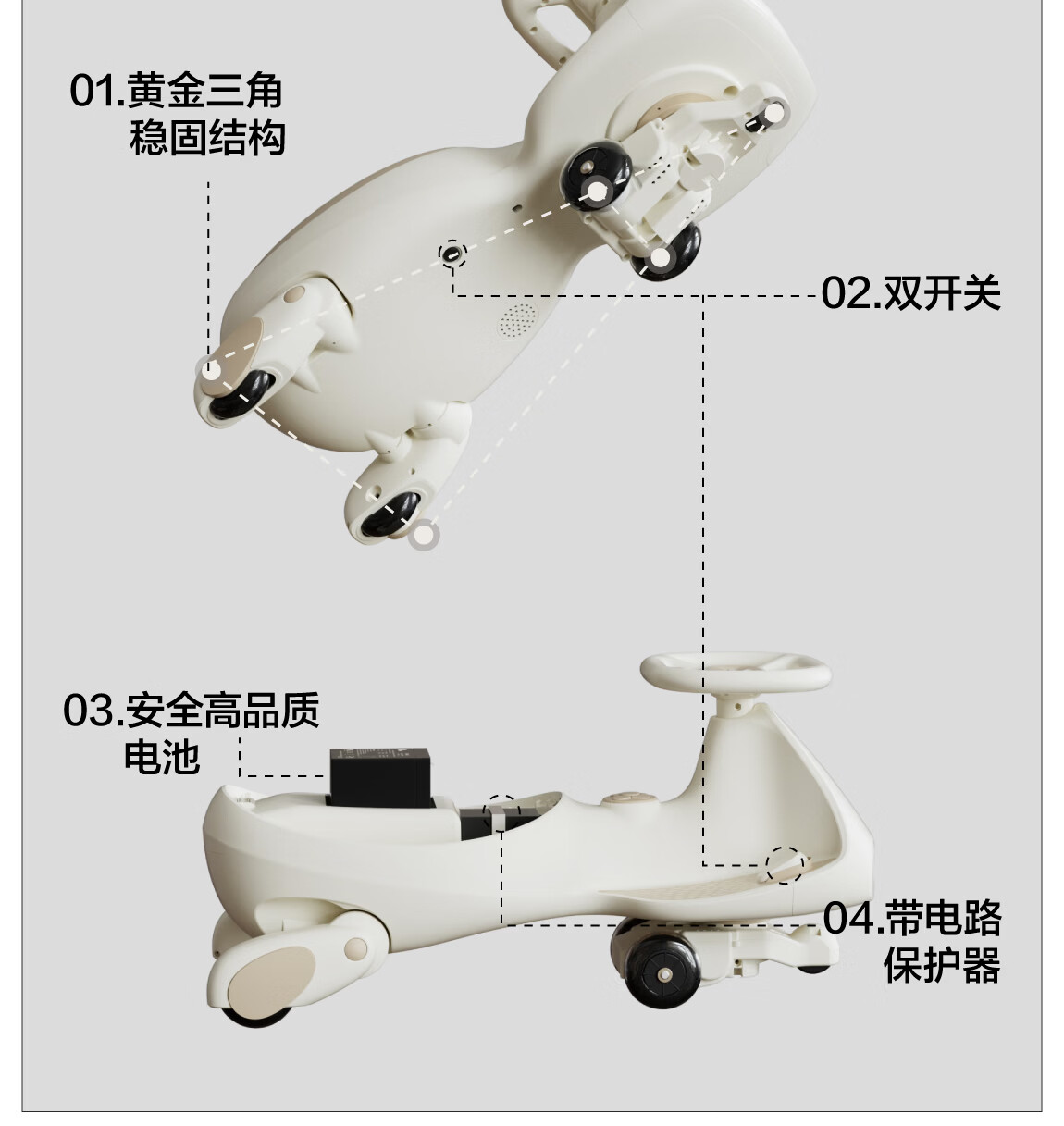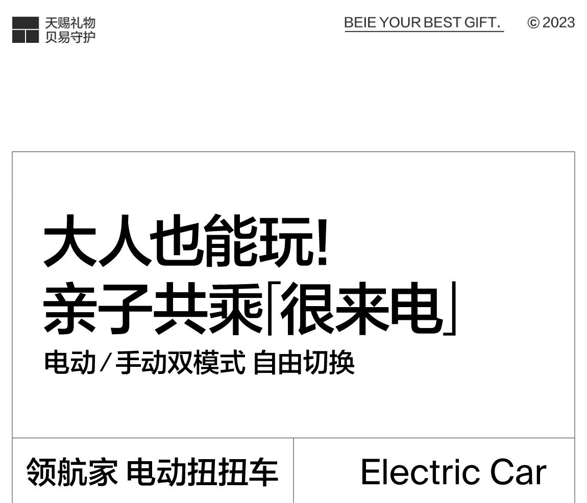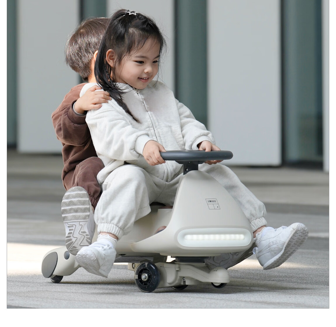 贝易BEIESTATE领航家儿童电动扭扭车 可坐大人遛遛车防侧翻宝宝礼物 云母灰