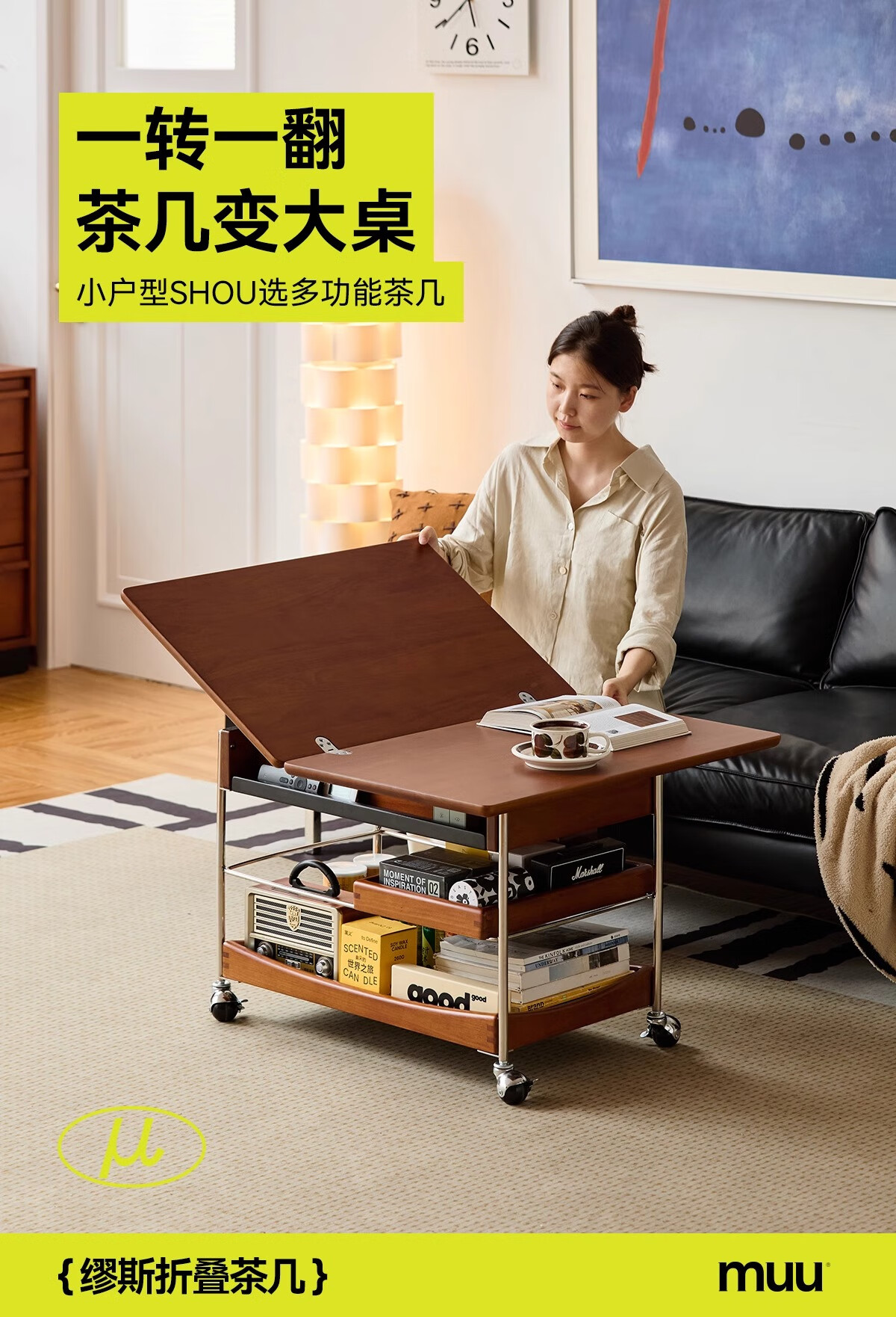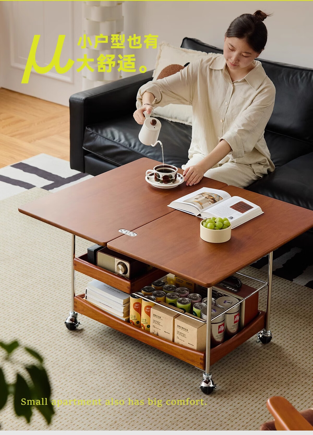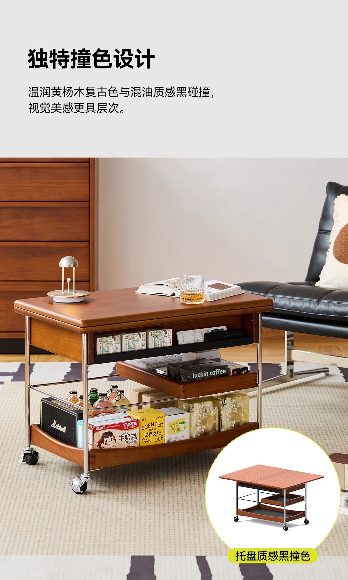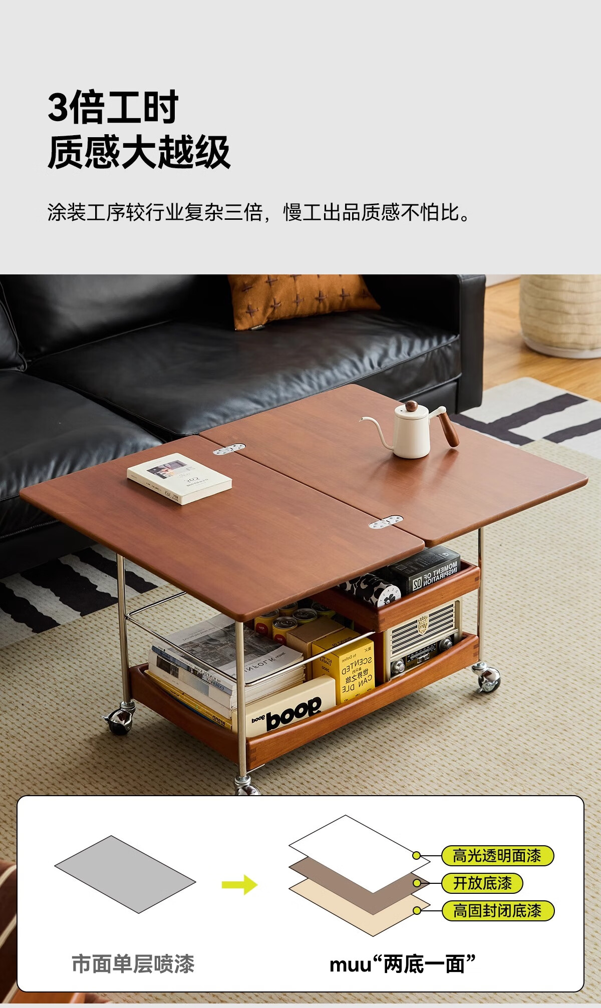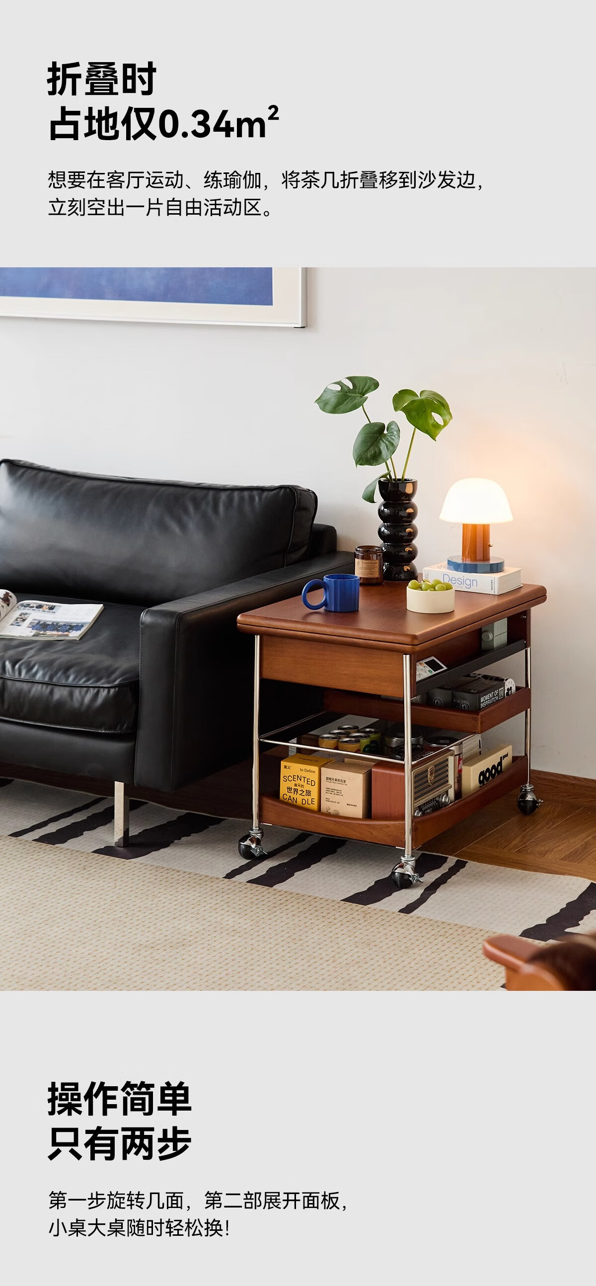MUU中古风黄杨木实木茶几可移动折叠家用客厅小户型中古风边几