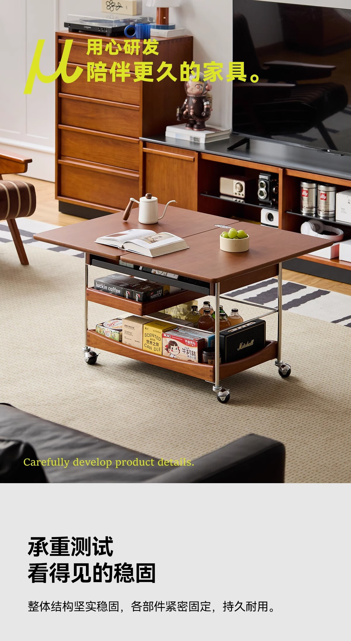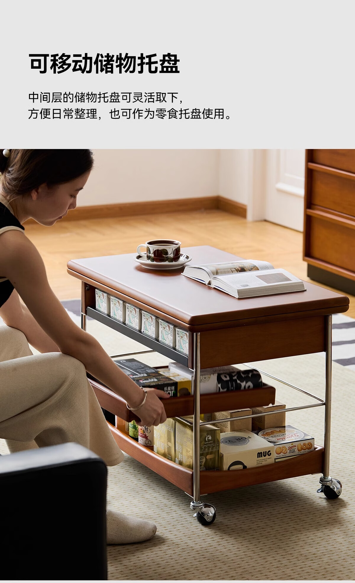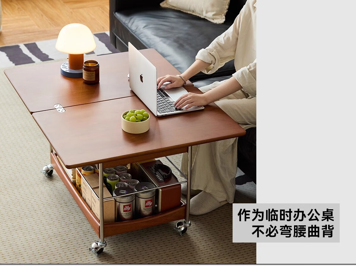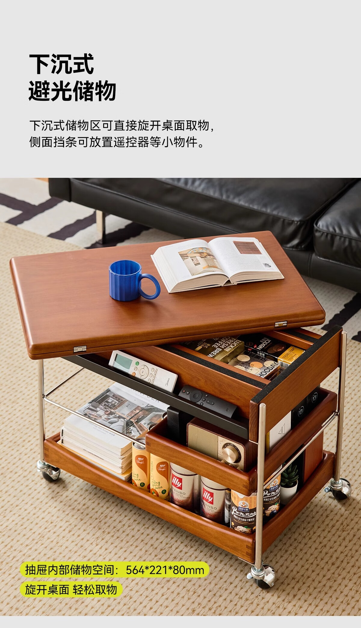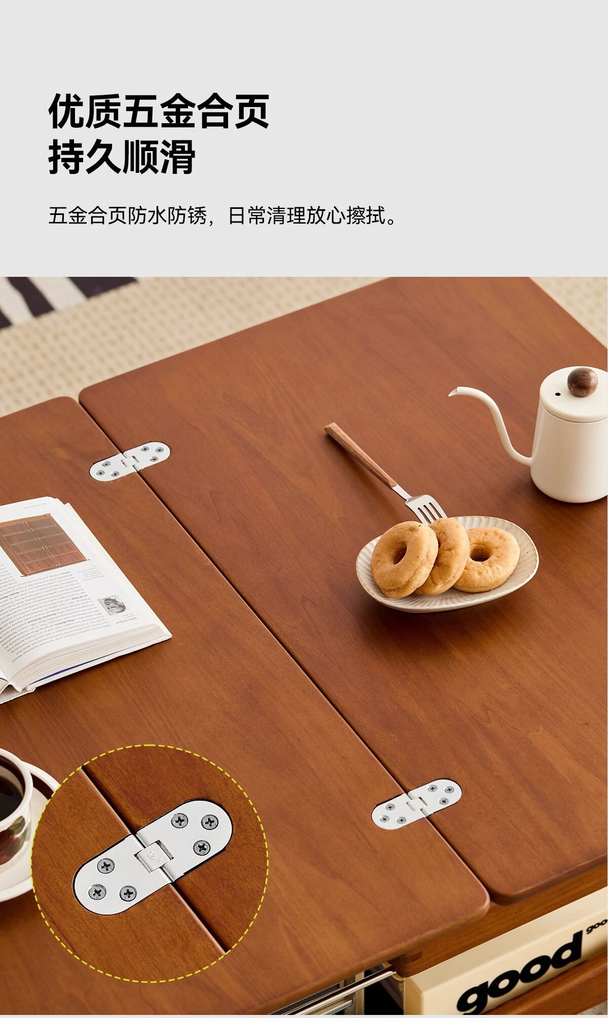 MUU中古风黄杨木实木茶几可移动折叠家用客厅小户型中古风边几