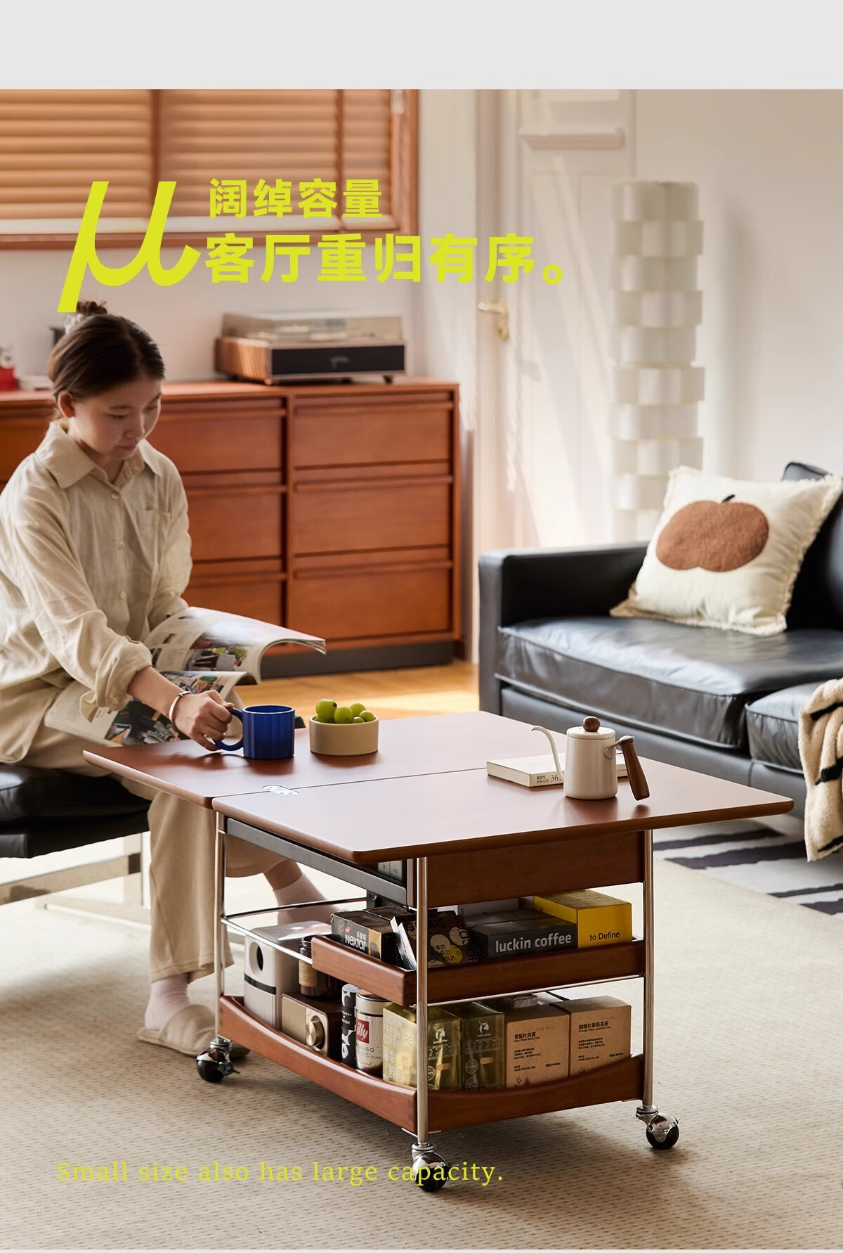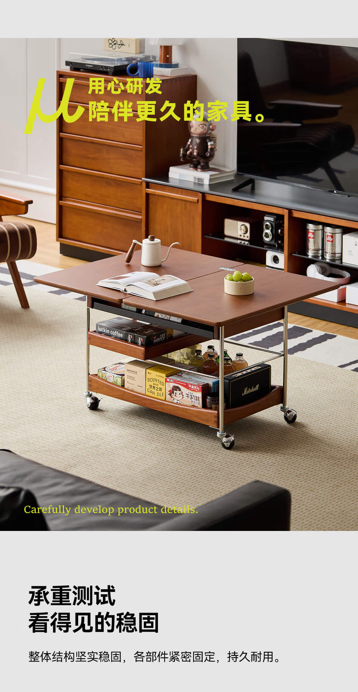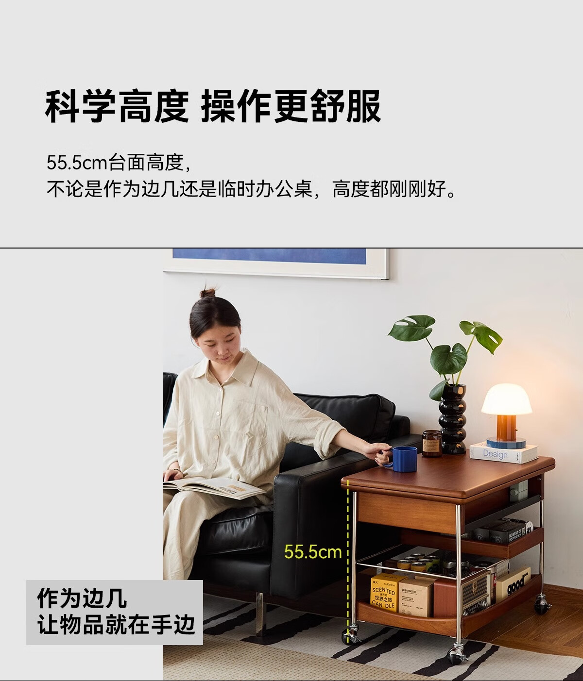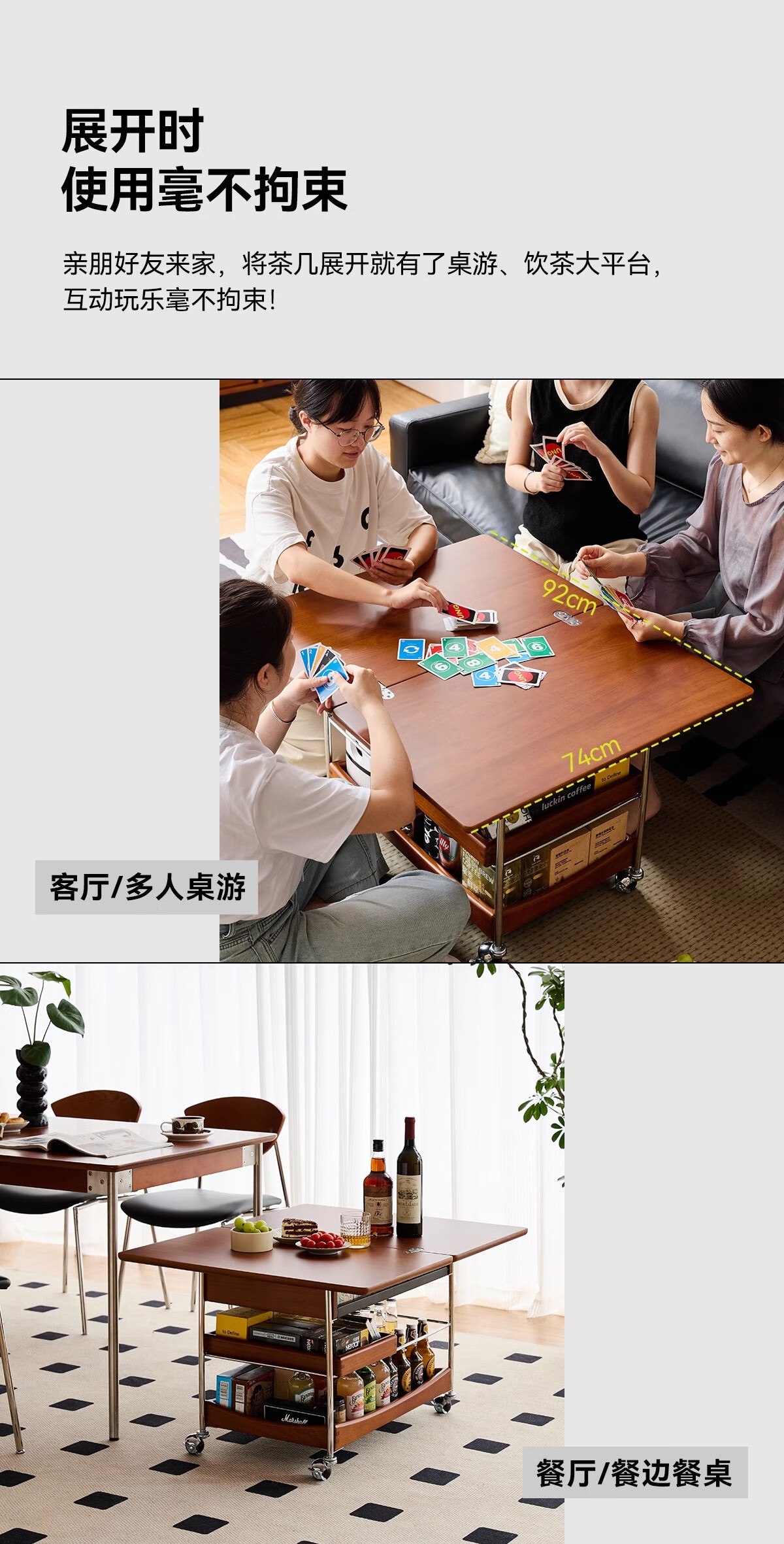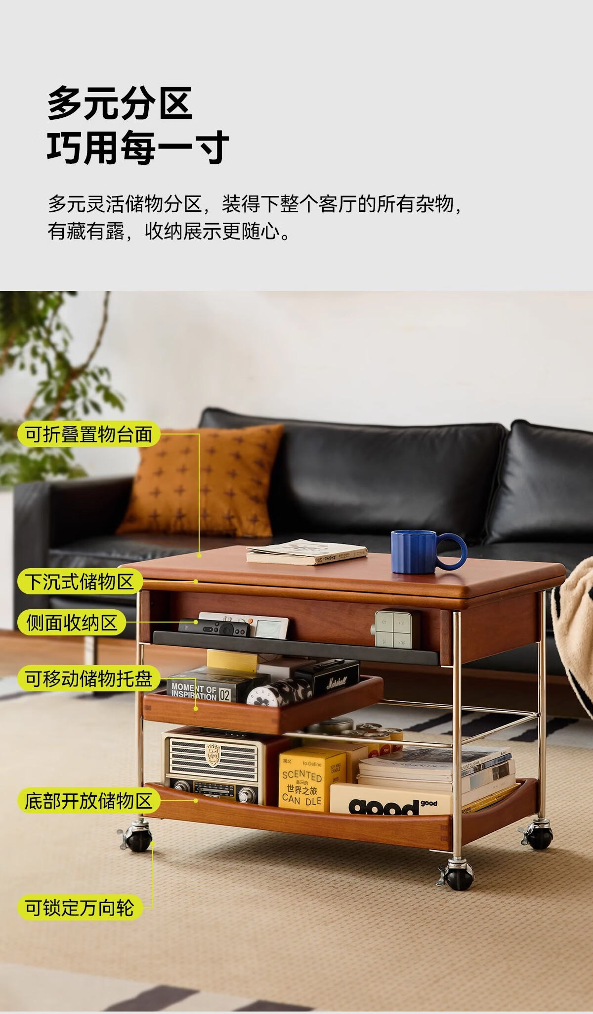 MUU中古风黄杨木实木茶几可移动折叠家用客厅小户型中古风边几