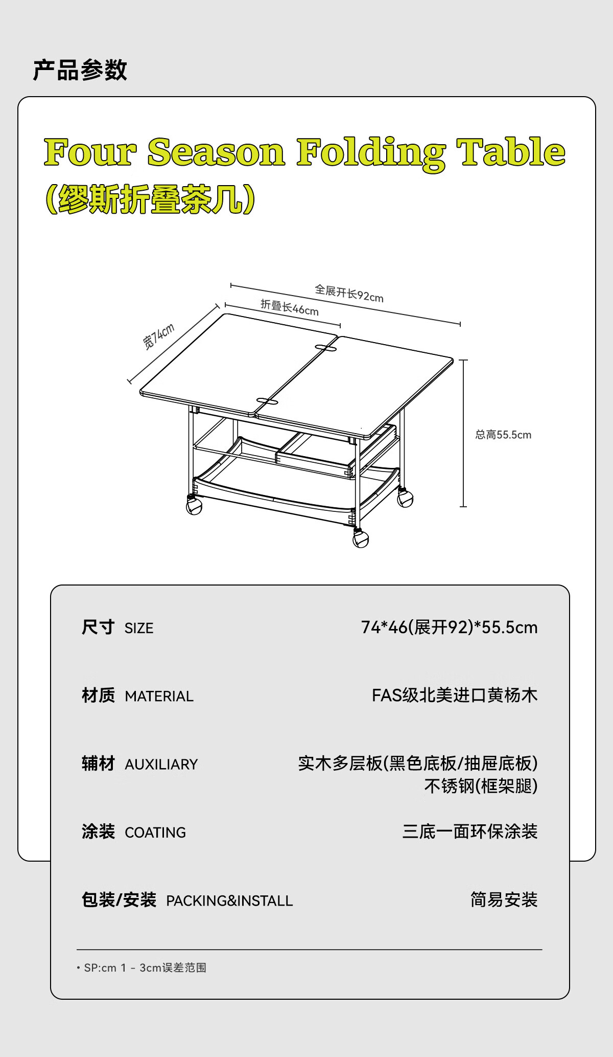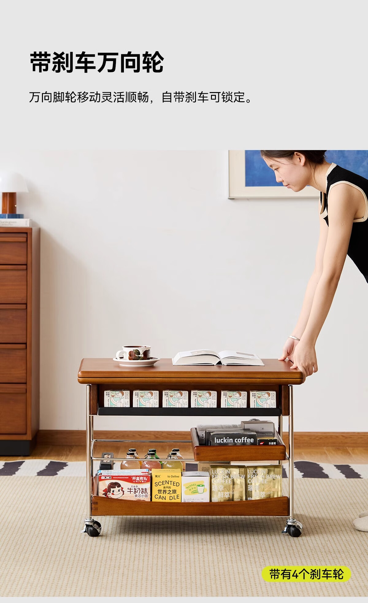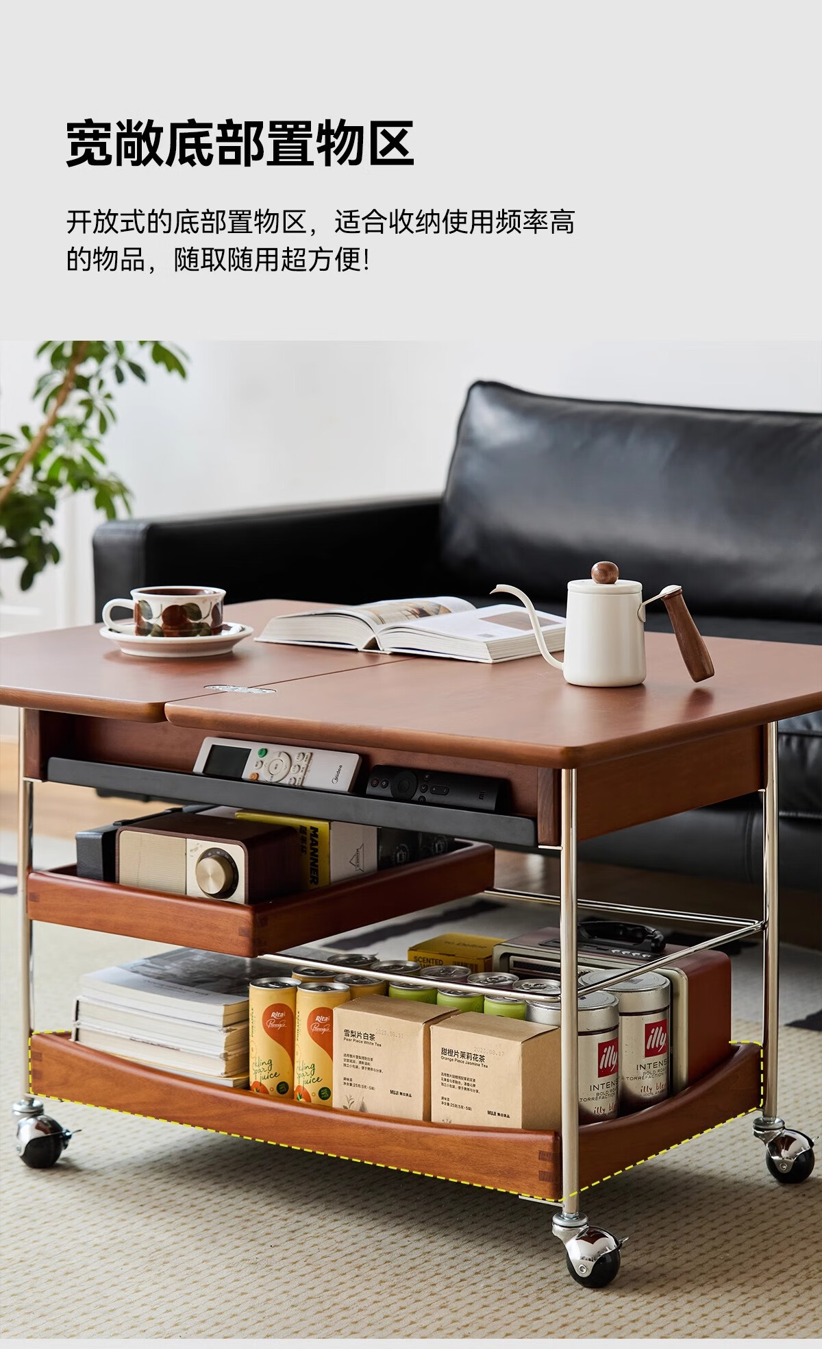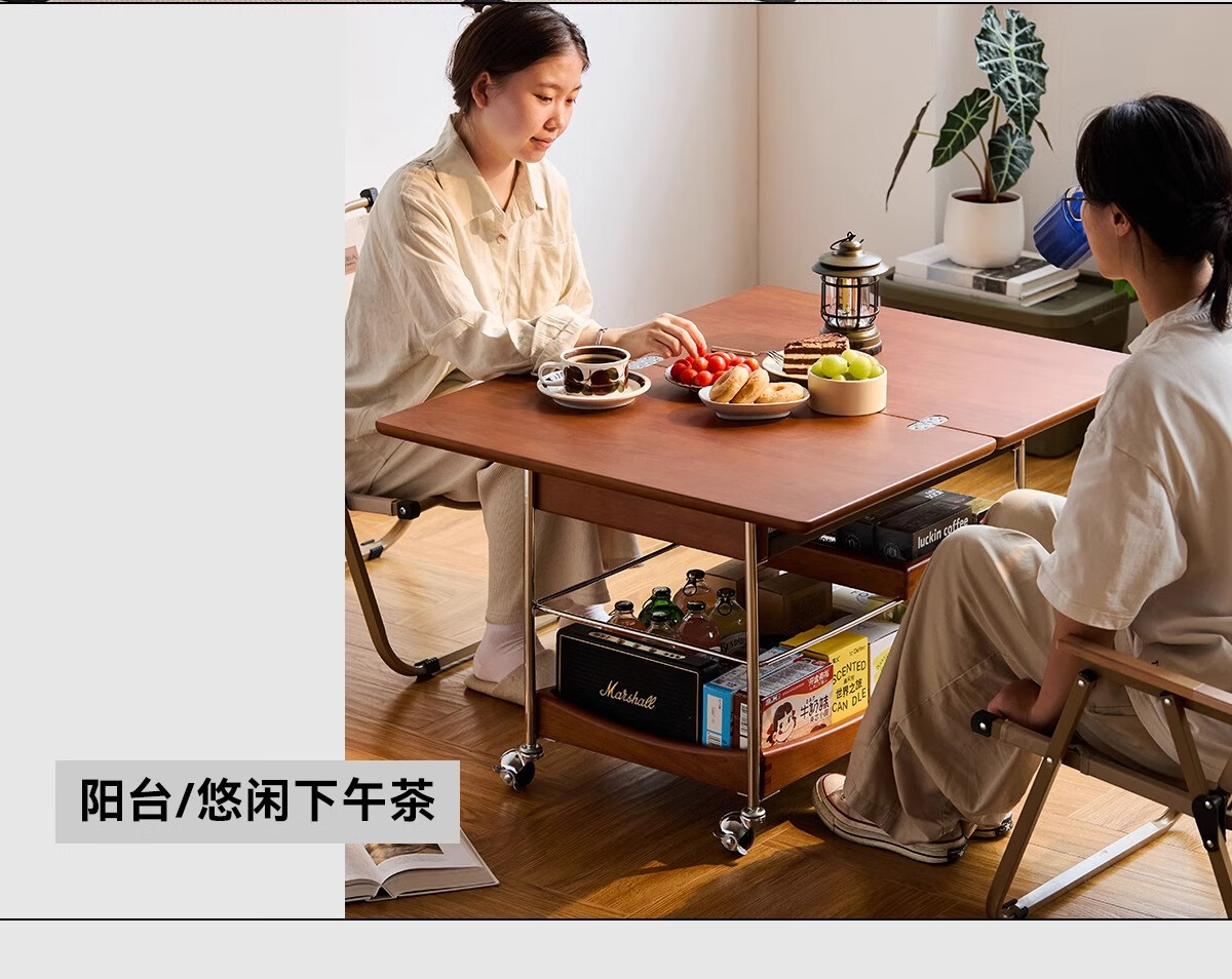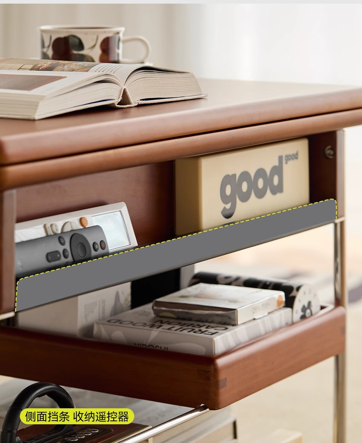 MUU中古风黄杨木实木茶几可移动折叠家用客厅小户型中古风边几