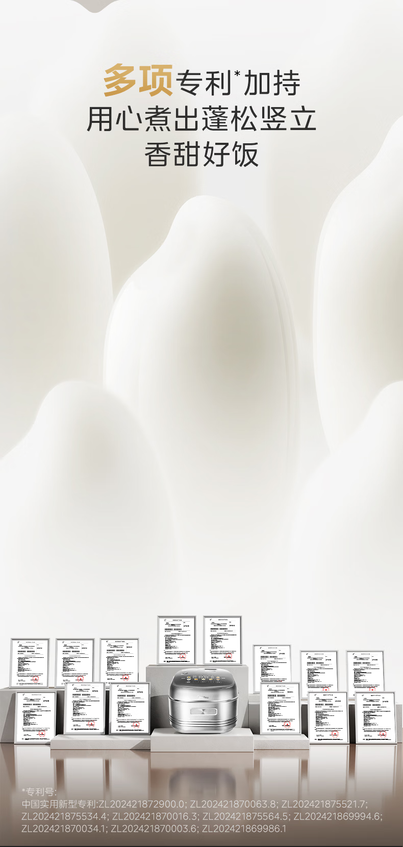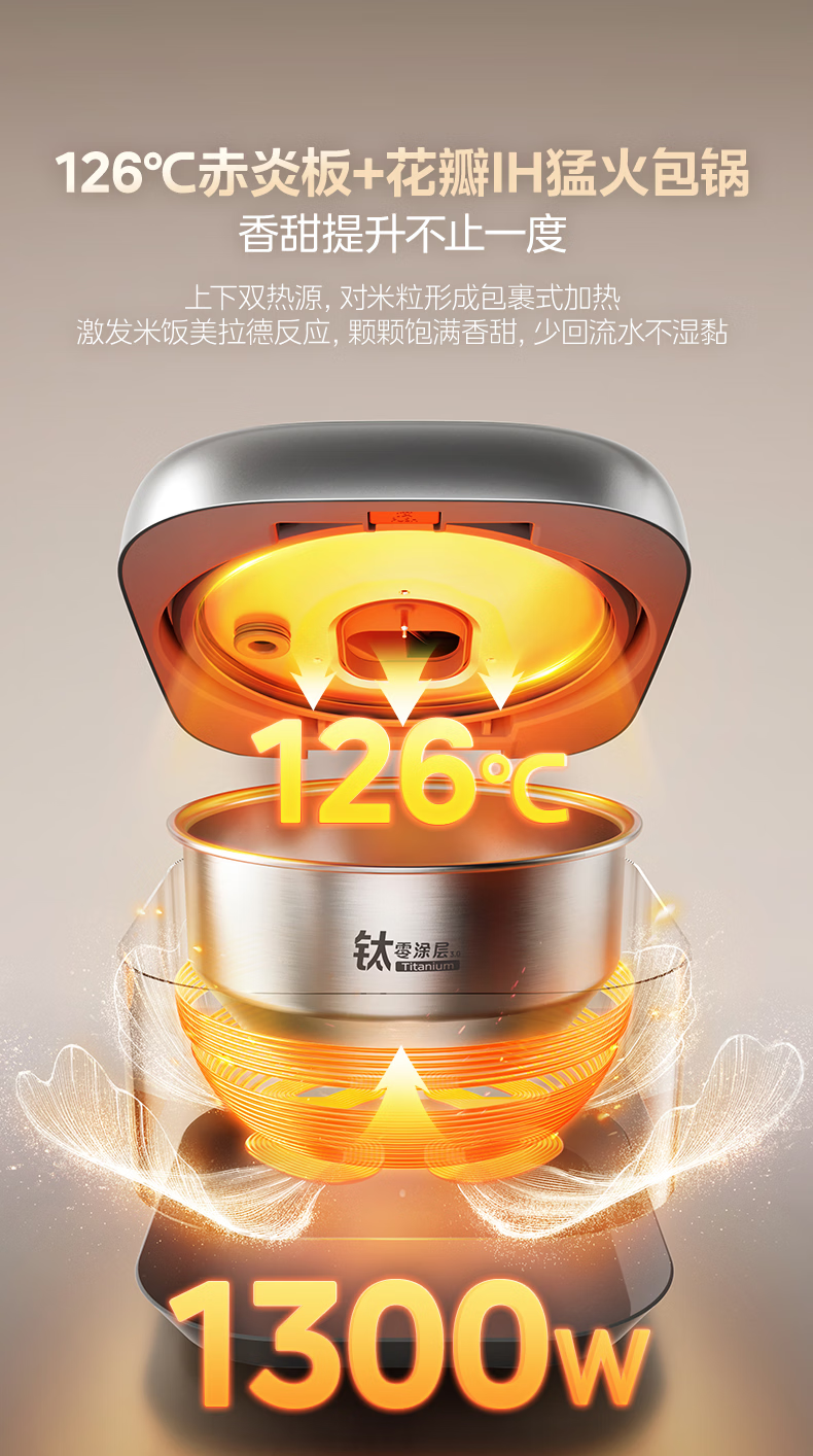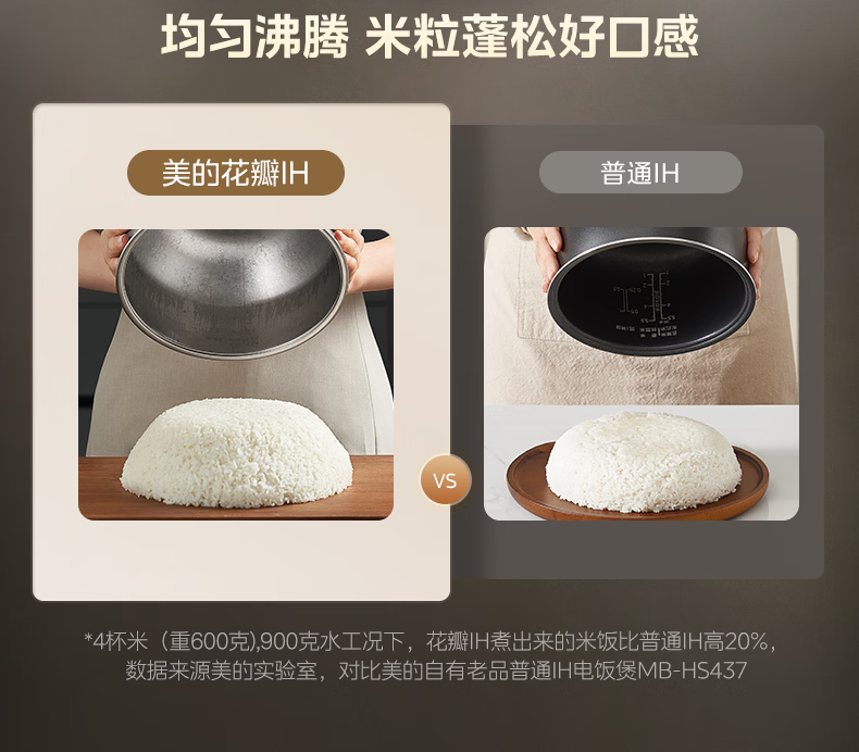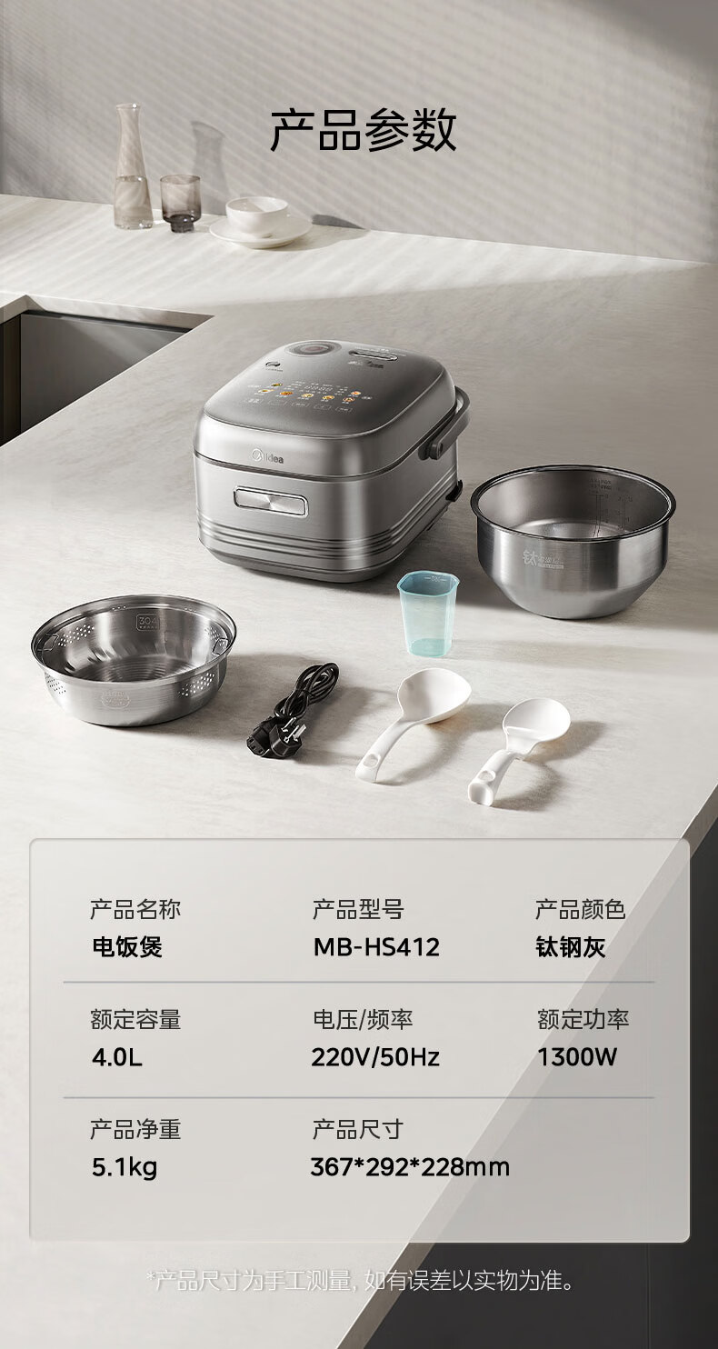 美的(Midea)【政府补贴】纯钛0涂层电饭锅防粘4L无涂层花瓣IH1.0电饭煲4-5人家用智能多功能MB-HS412