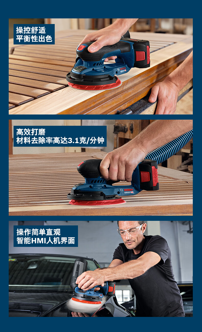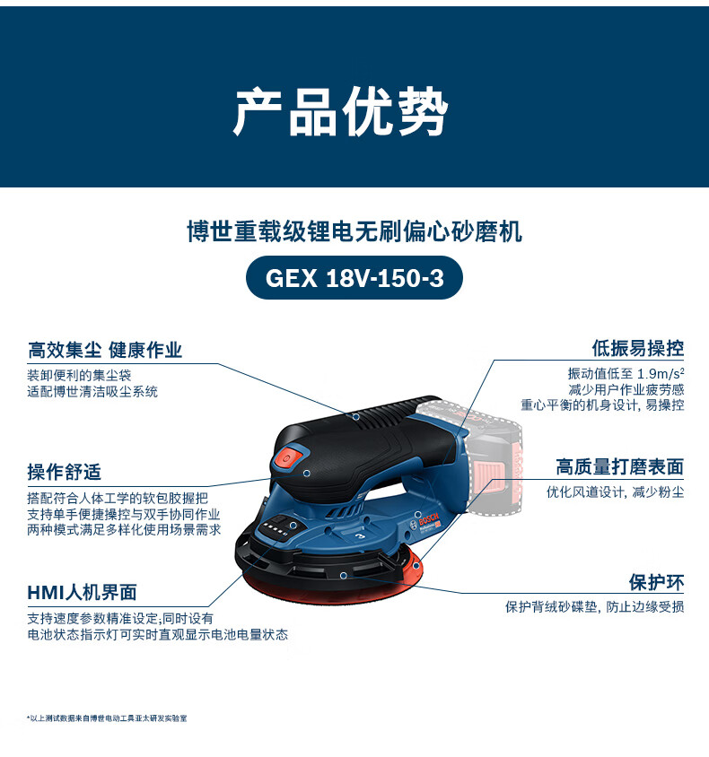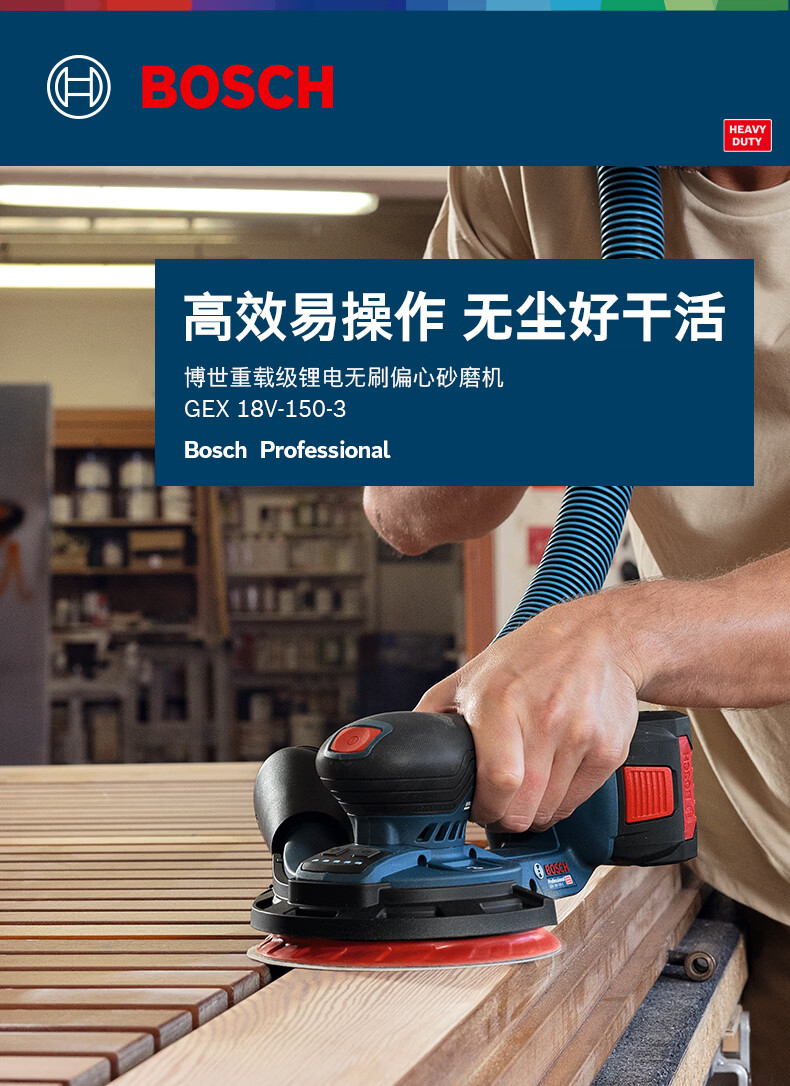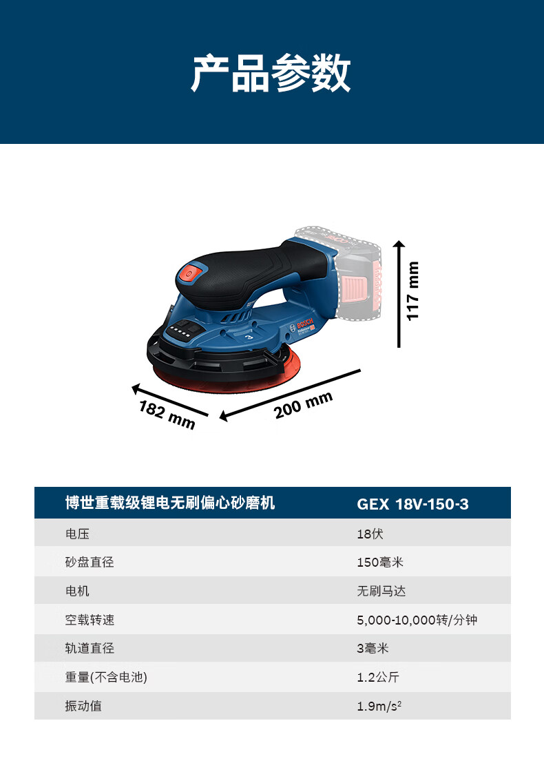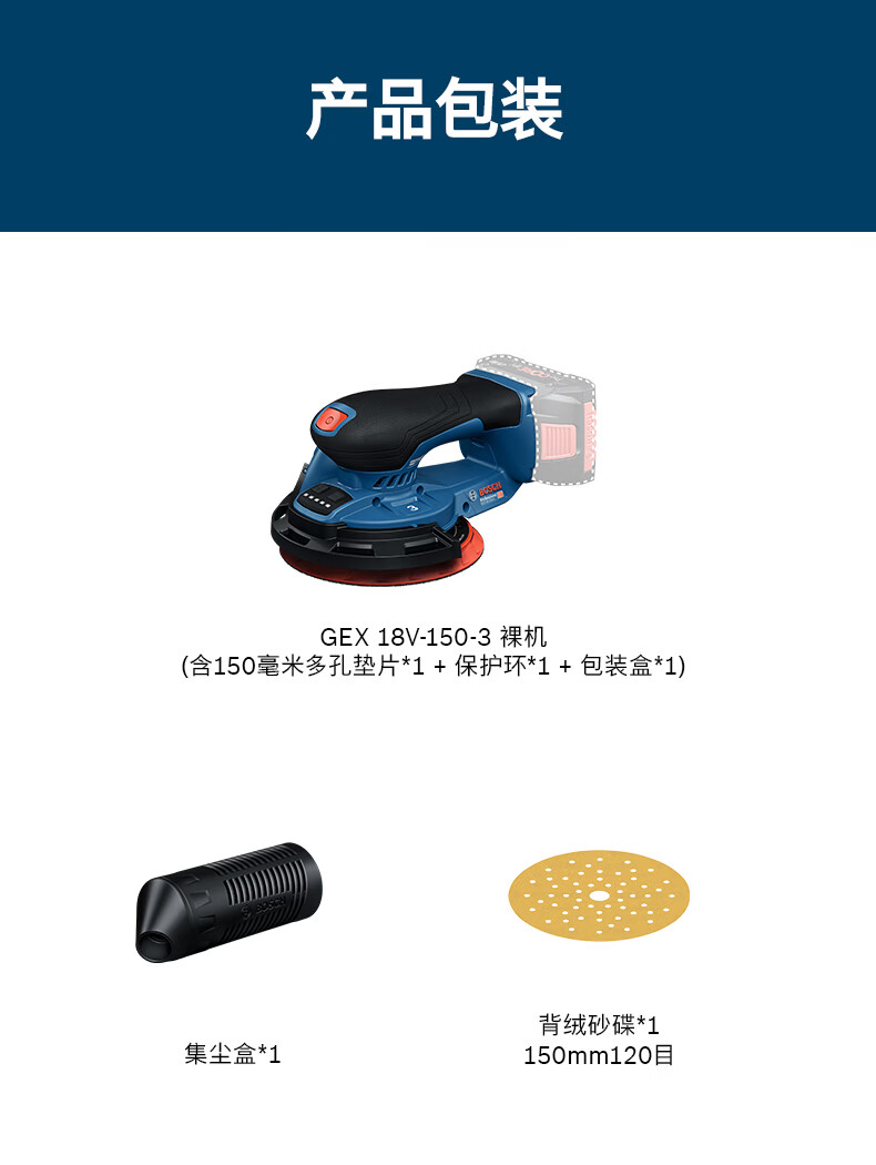 博世(BOSCH)GEX 18V-150-3重载级锂电无刷偏心砂磨机抛光打磨机木材砂光机 裸机(不含电池)