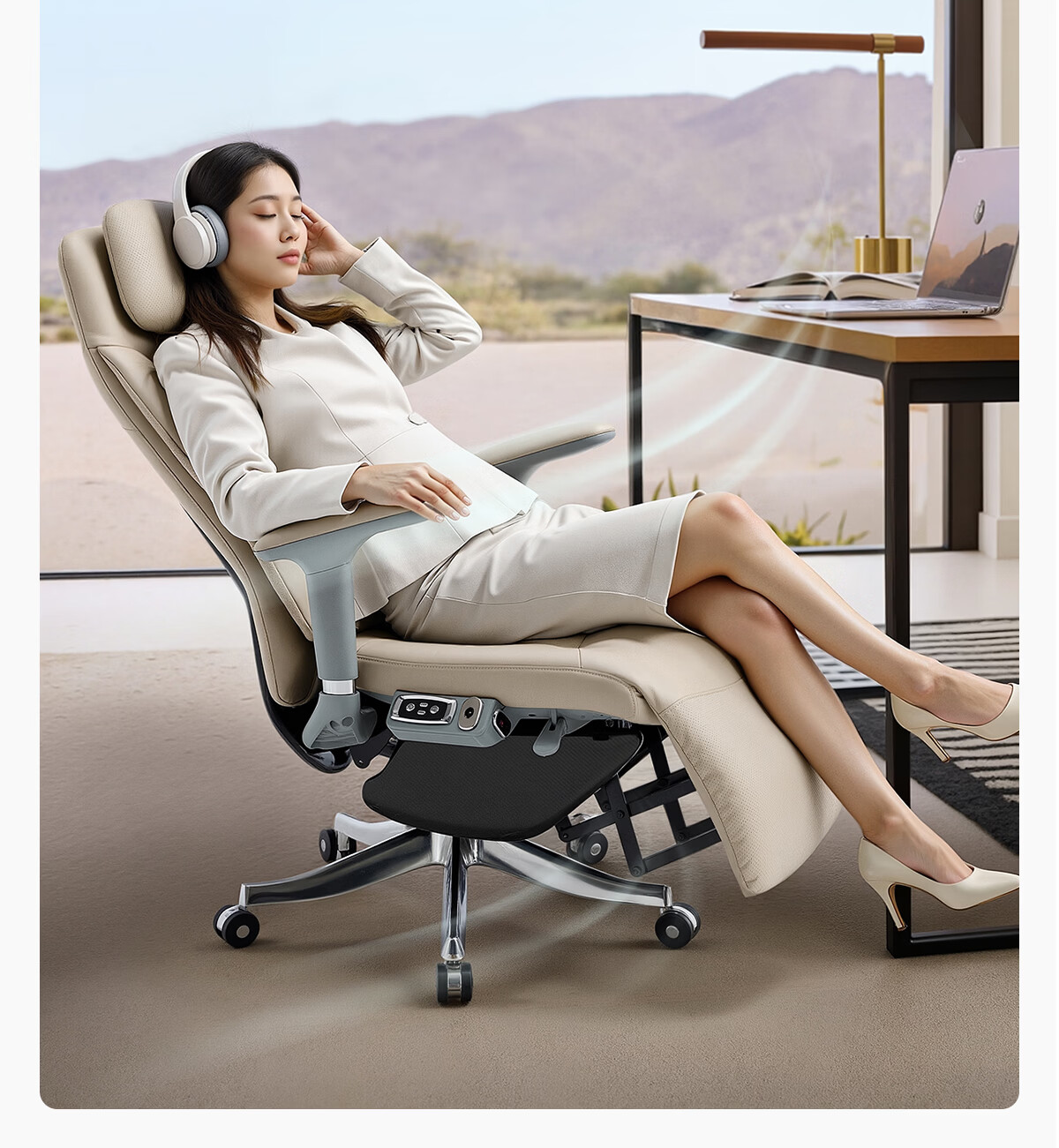 慧动(canmov)电动办公椅轻薄款零重力真皮老板椅通风按摩电脑椅高端简约总裁椅 紫罗兰-细纹黄牛真皮 电动款