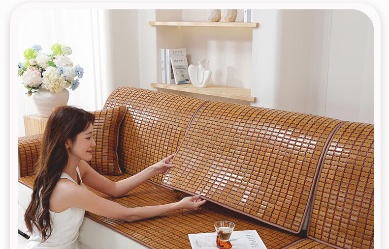 DONOYA 多罗亚沙发垫四季通用防滑2026年新款麻将凉席竹席凉垫客厅实木座垫竹垫 双牛筋/小边/咖啡色【防滑透气】 45cm*45cm