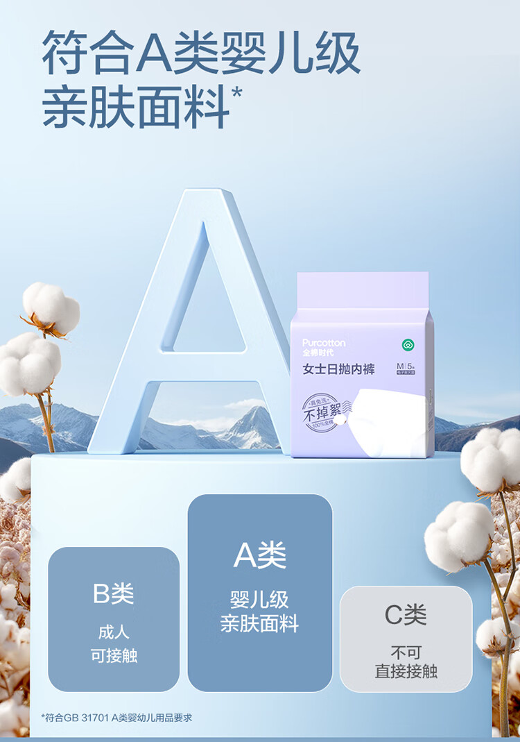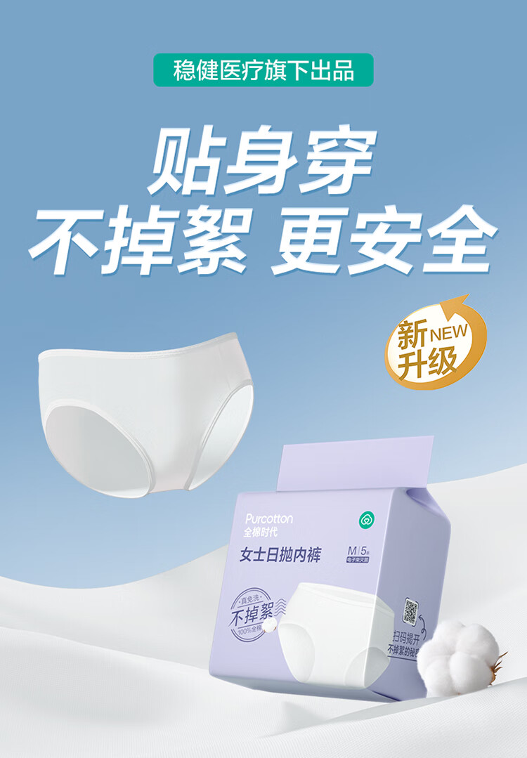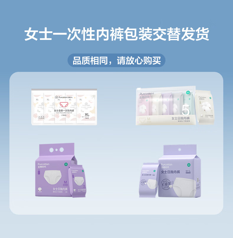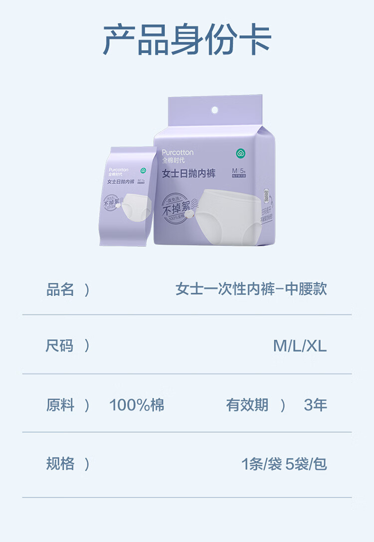 全棉时代一次性内裤女士纯棉孕妇月子出差旅行日抛不掉絮 5条 L