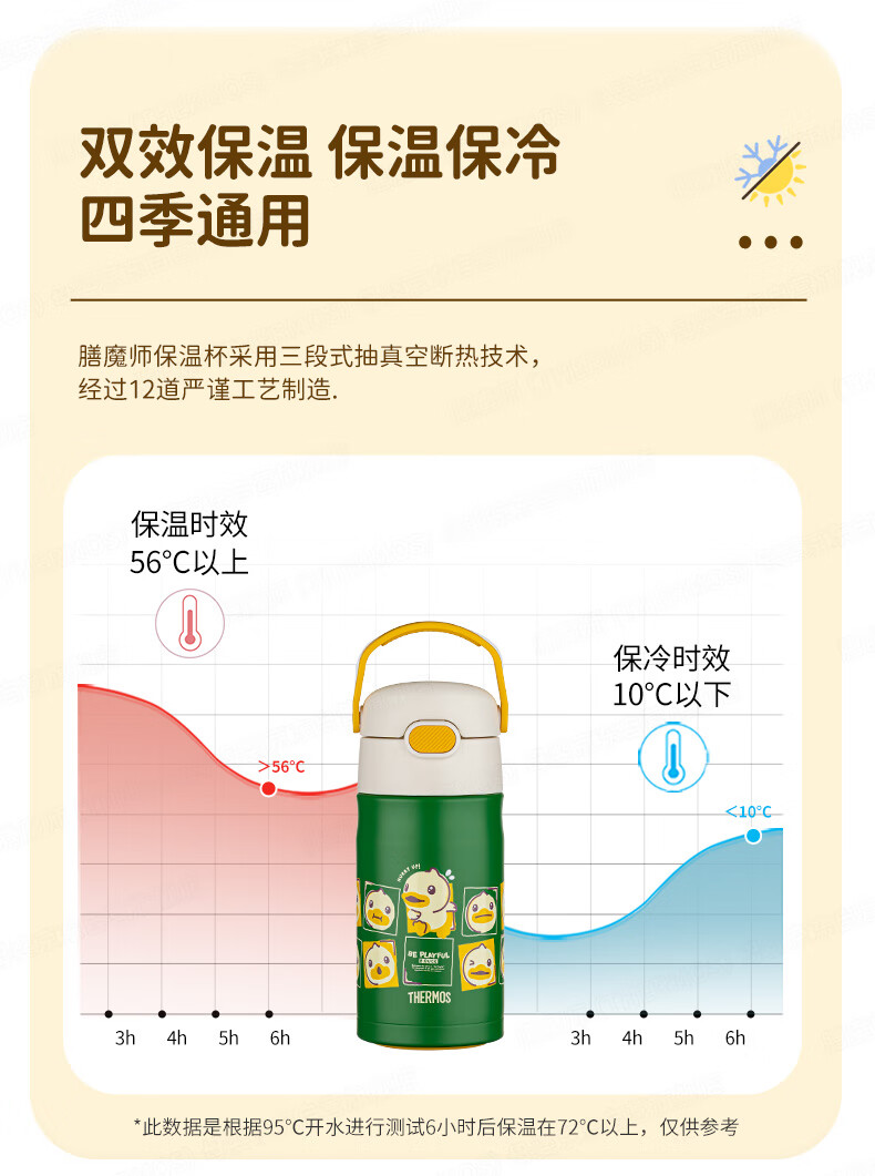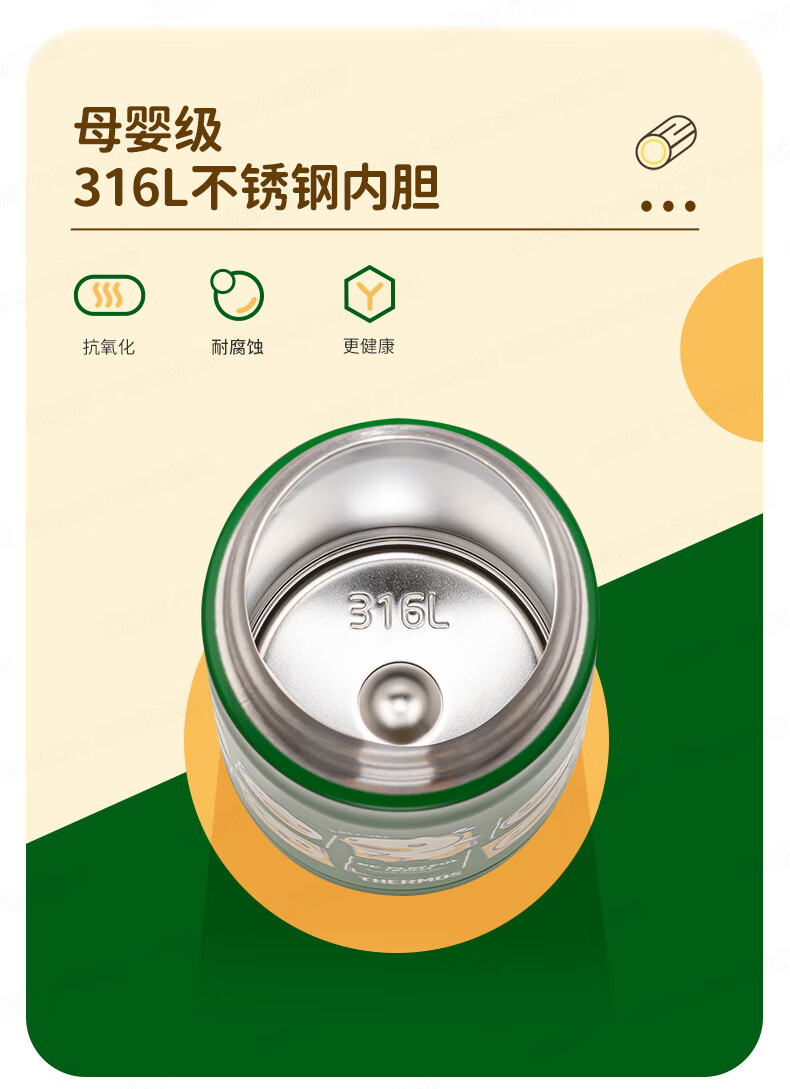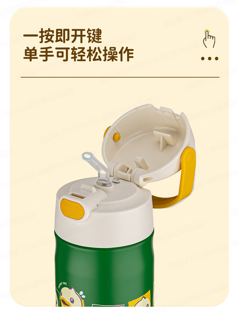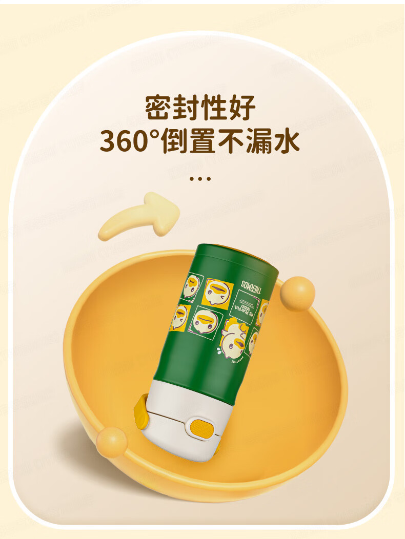 膳魔师小学生316L保温杯儿童开学必备吸管杯宝宝小黄鸭水壶350ml绿
