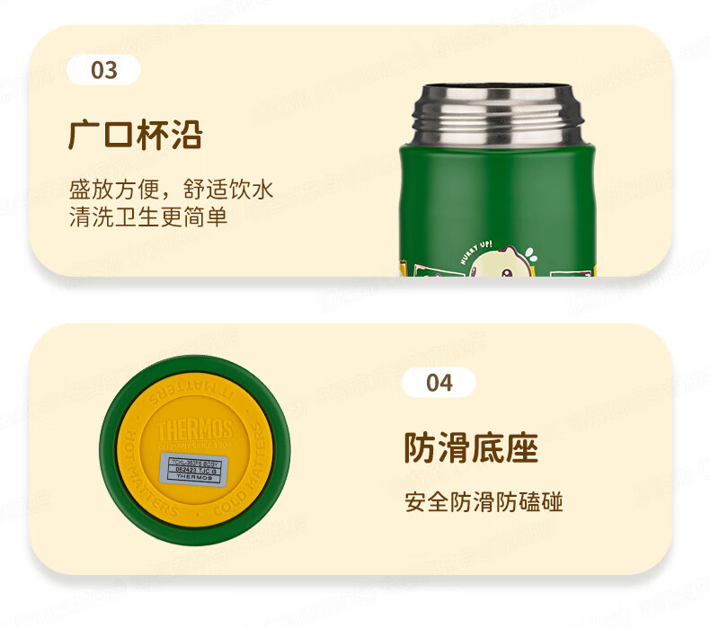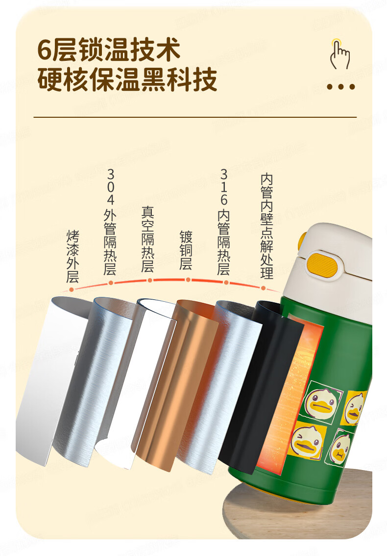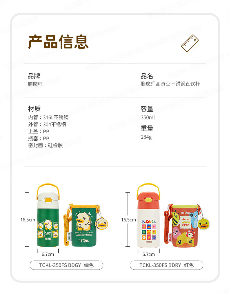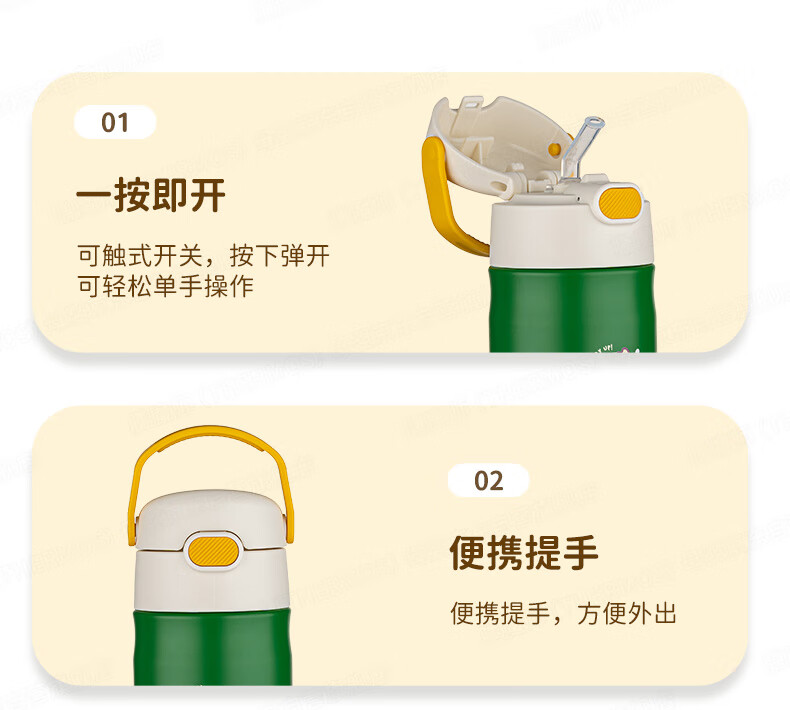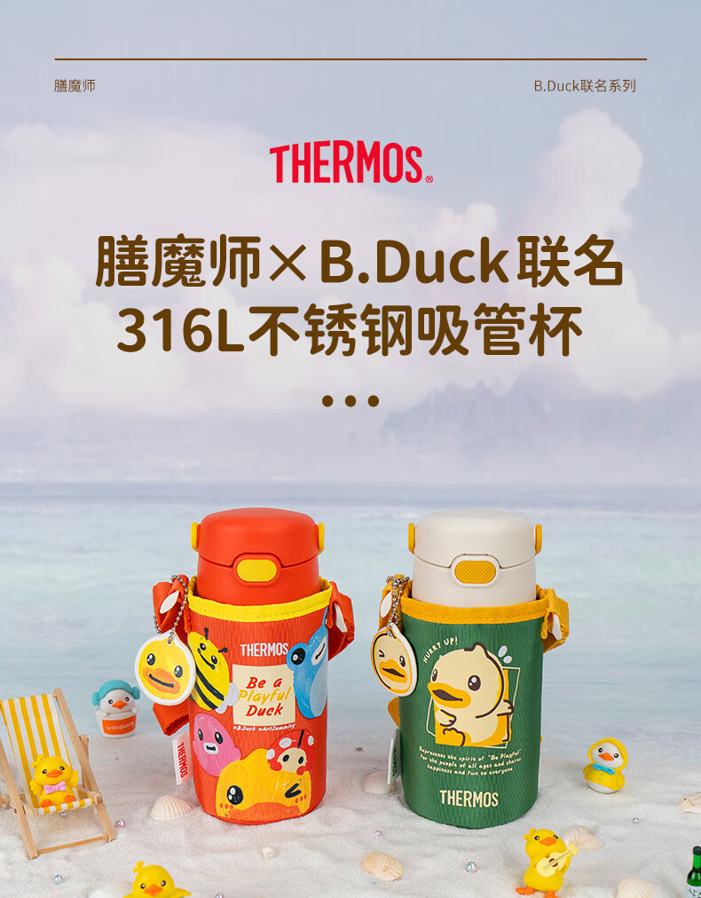 膳魔师小学生316L保温杯儿童开学必备吸管杯宝宝小黄鸭水壶350ml绿
