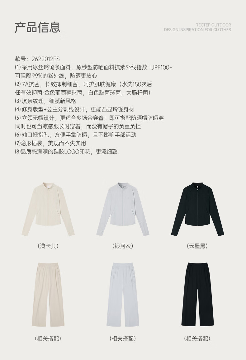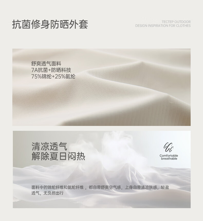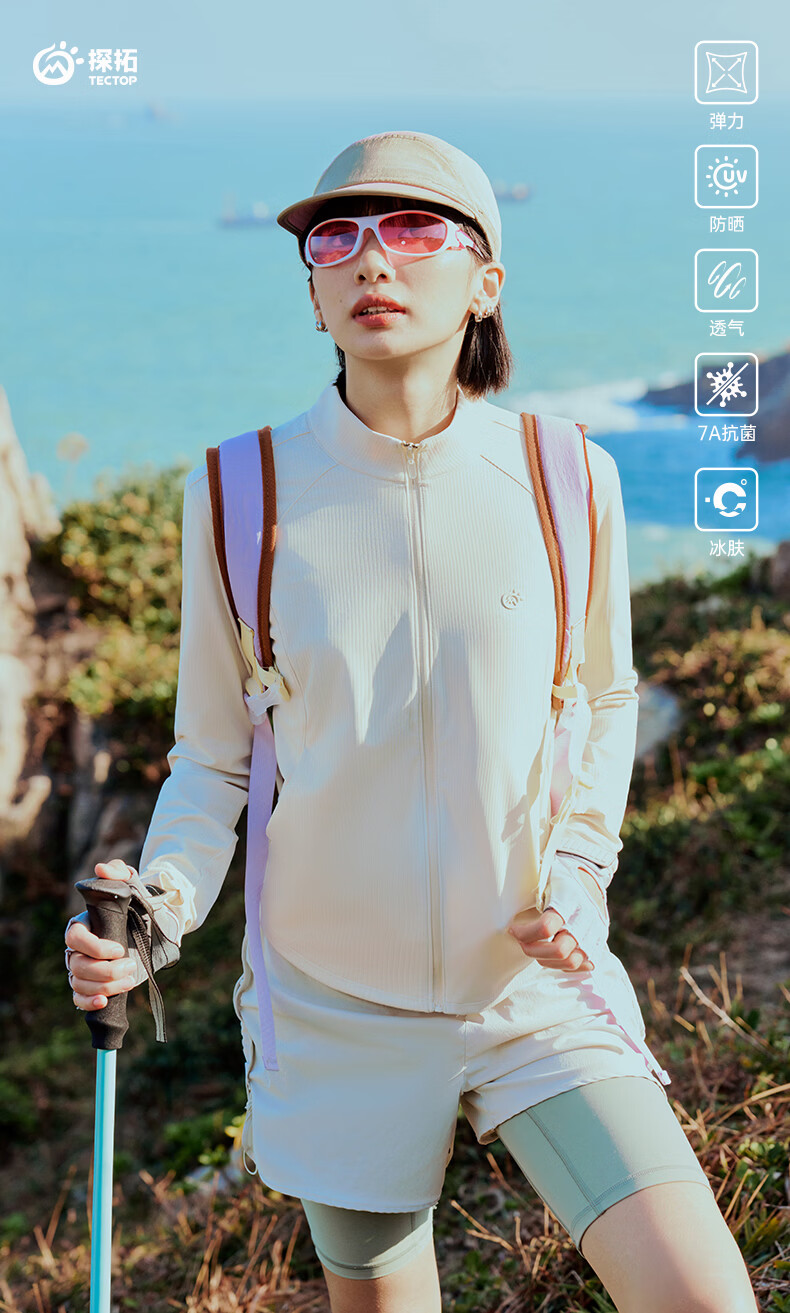 探拓(TECTOP)26新款抗菌防晒衣女UPF100+夏季冰肤轻薄透气外套 浅卡其 S
