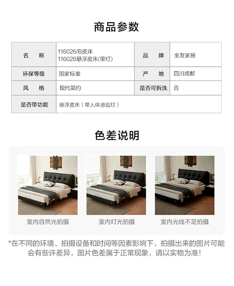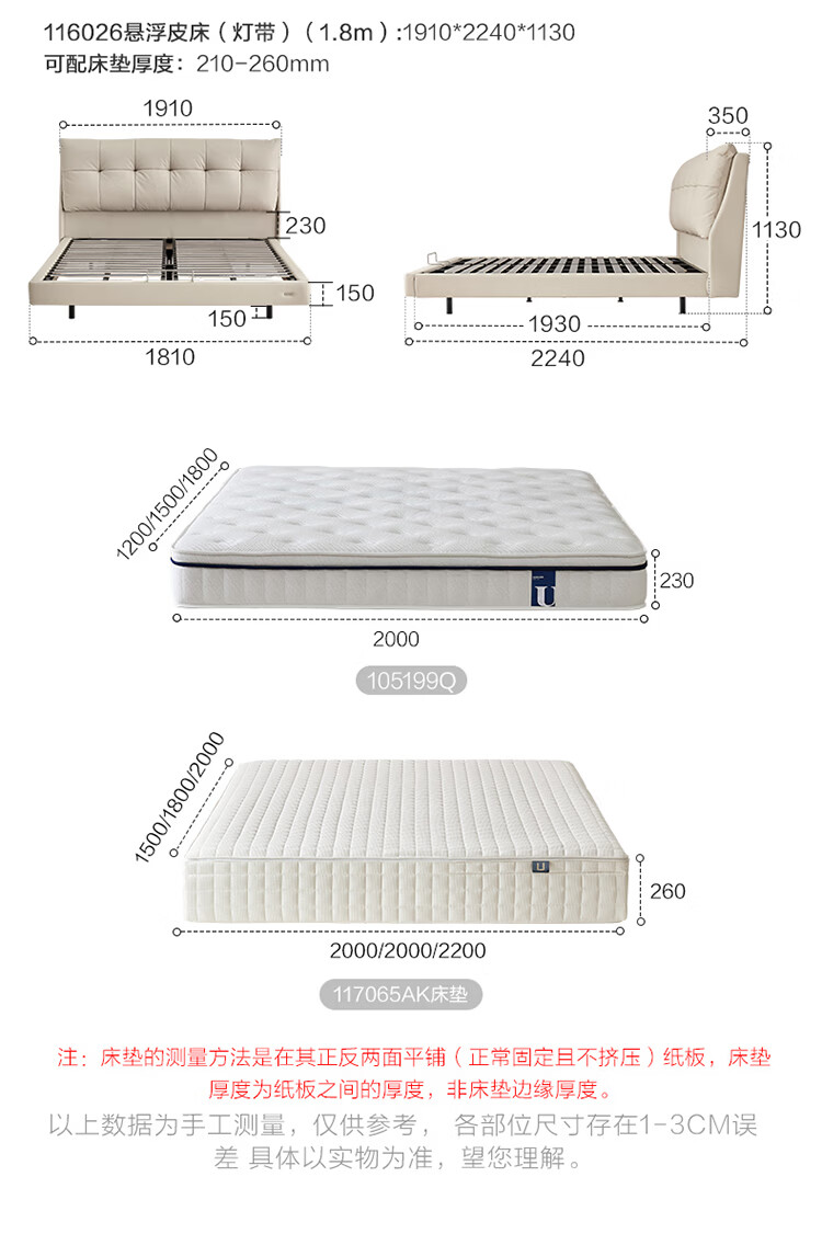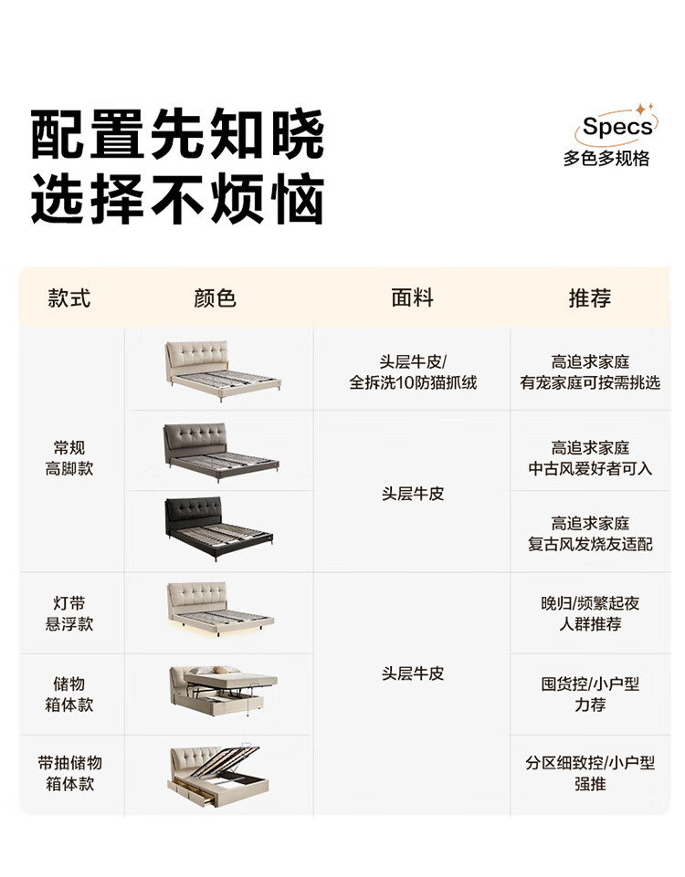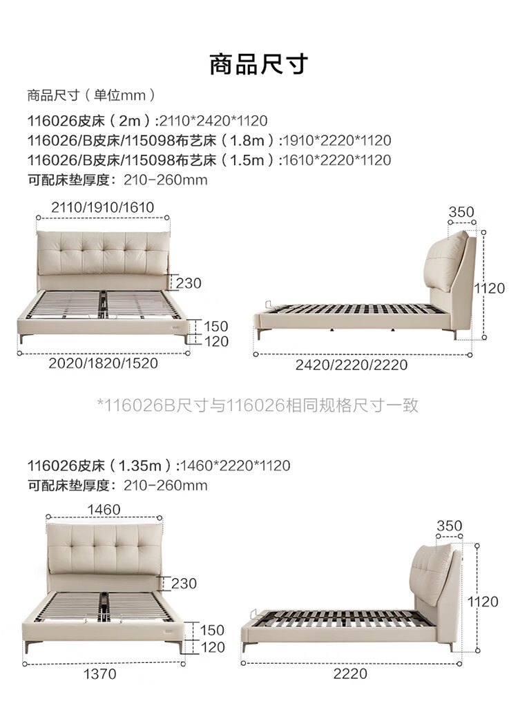 全友(QUANU)家居奶油风真皮软包繁星储物床主卧室高脚储物双人大床含床垫组合 【米色 | 高脚款】单床+乳胶紫罗兰护背系统 | 床垫 1.8x2米