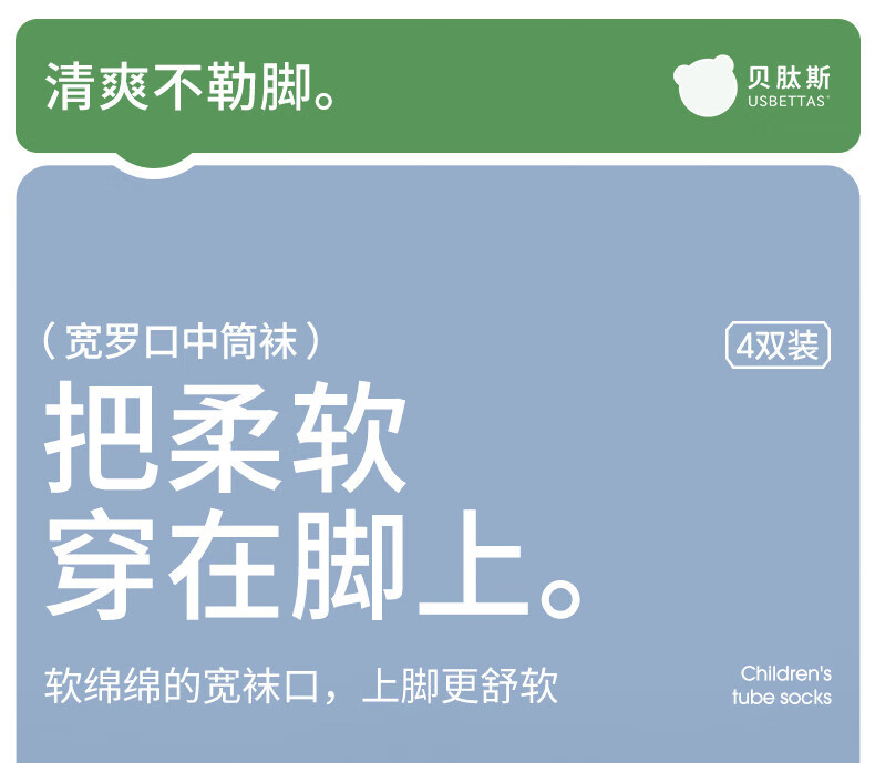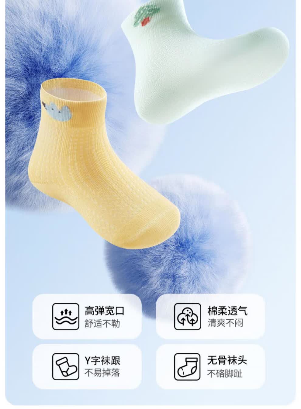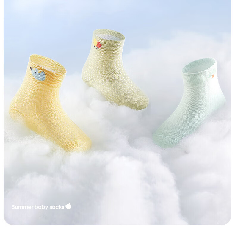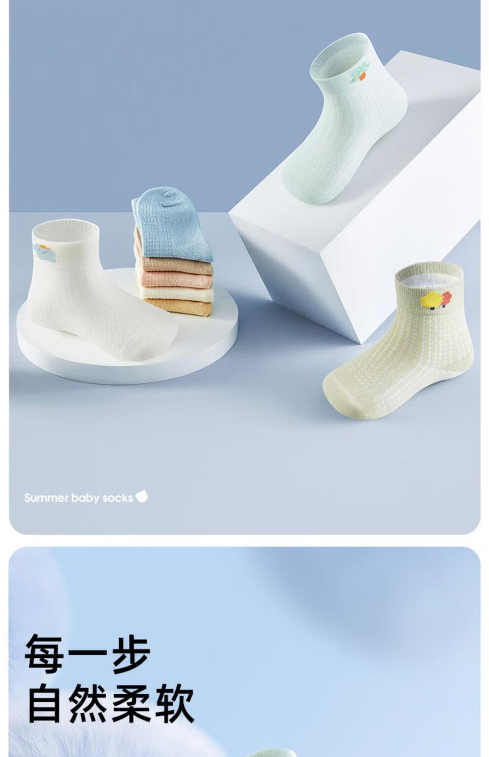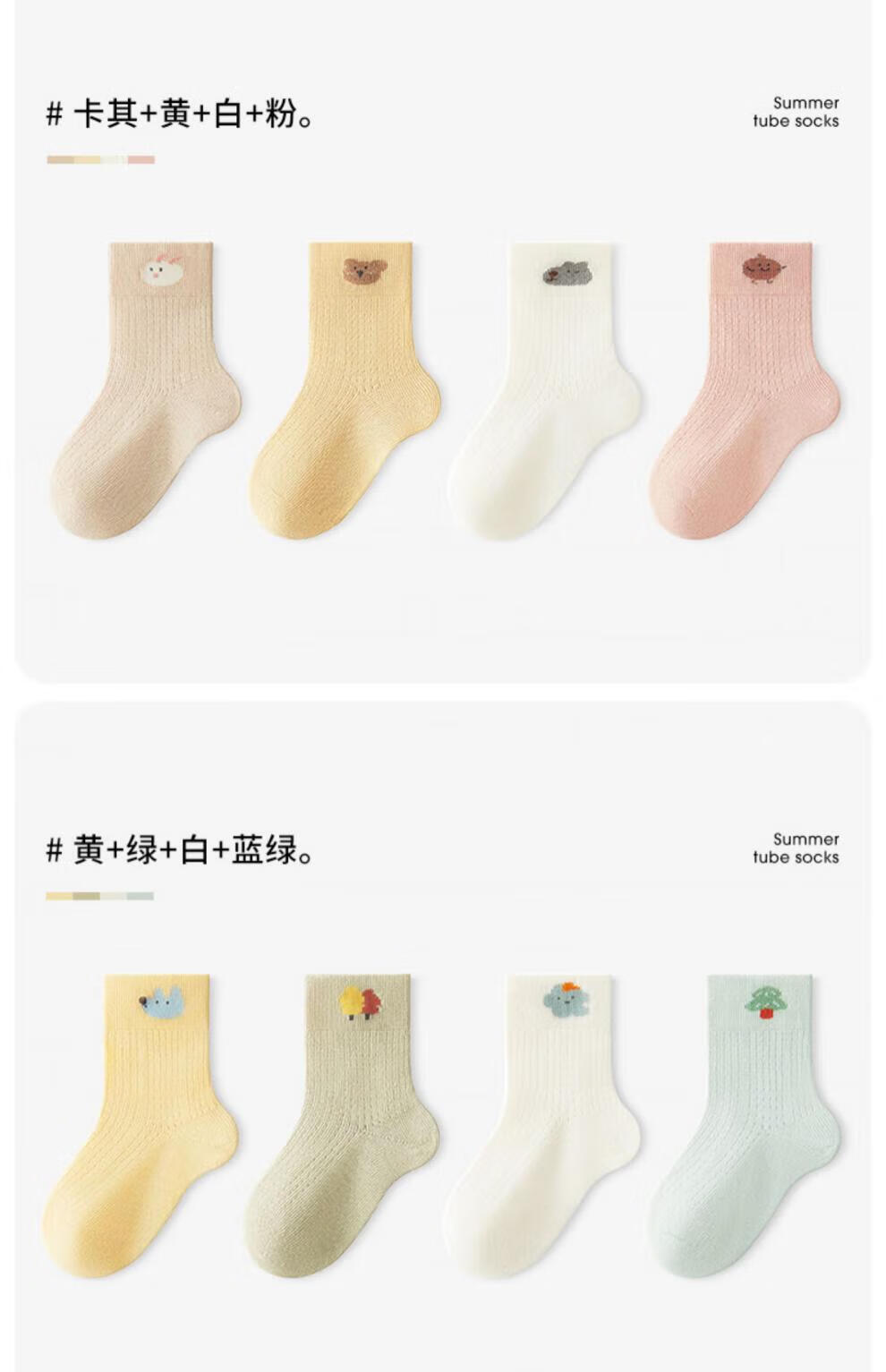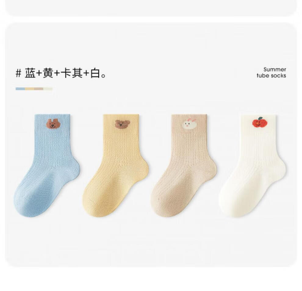 贝肽斯儿童袜子春夏款婴儿宝宝中简袜男童新生儿女童棉袜子 蓝+黄+卡其+白【无骨袜头】 4双 1-3岁 (建议脚长12-14cm)