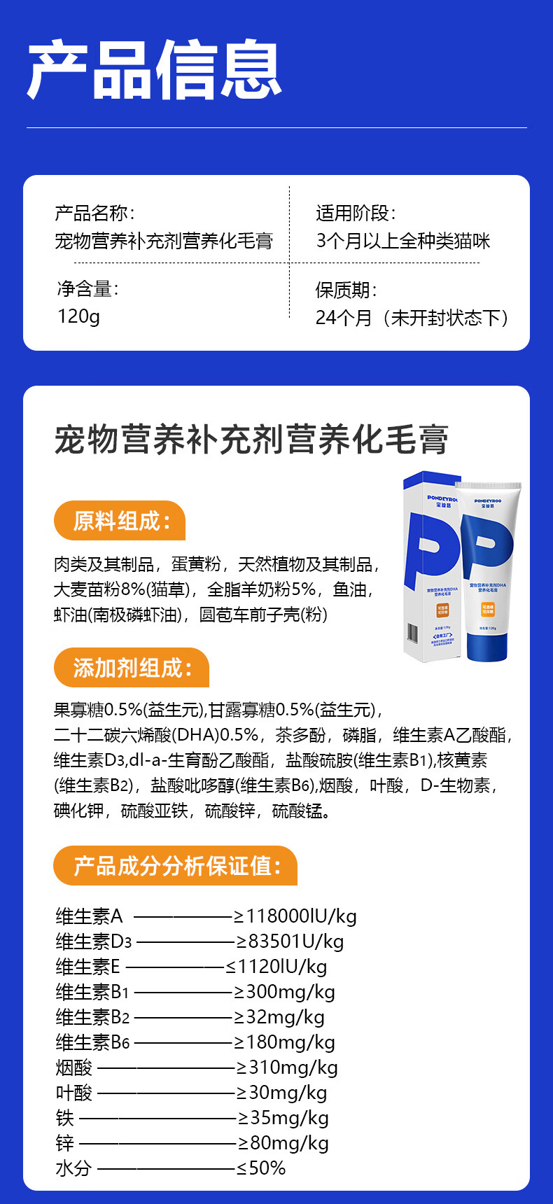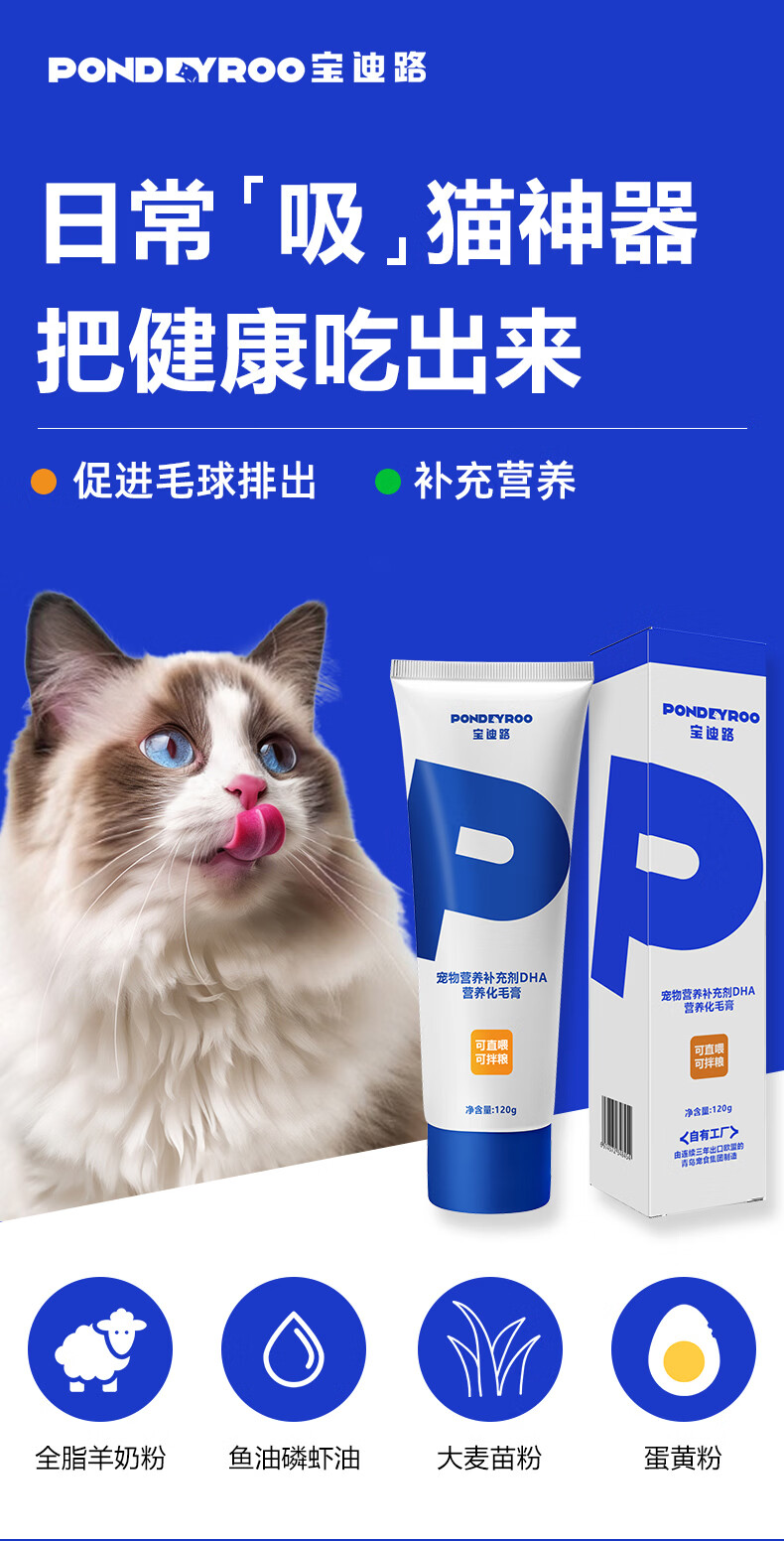 宝迪路猫咪化毛膏营养膏鱼油磷虾油DHA补充营养猫猫排毛化毛 营养化毛膏 120g*1支