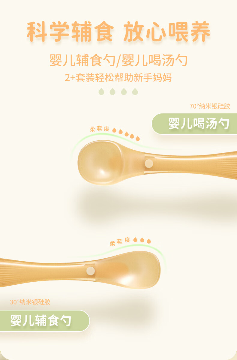 COOKSS硅胶勺子新生婴儿辅食勺宝宝吃饭专用喂奶喂水米粉糊儿童硅胶软勺