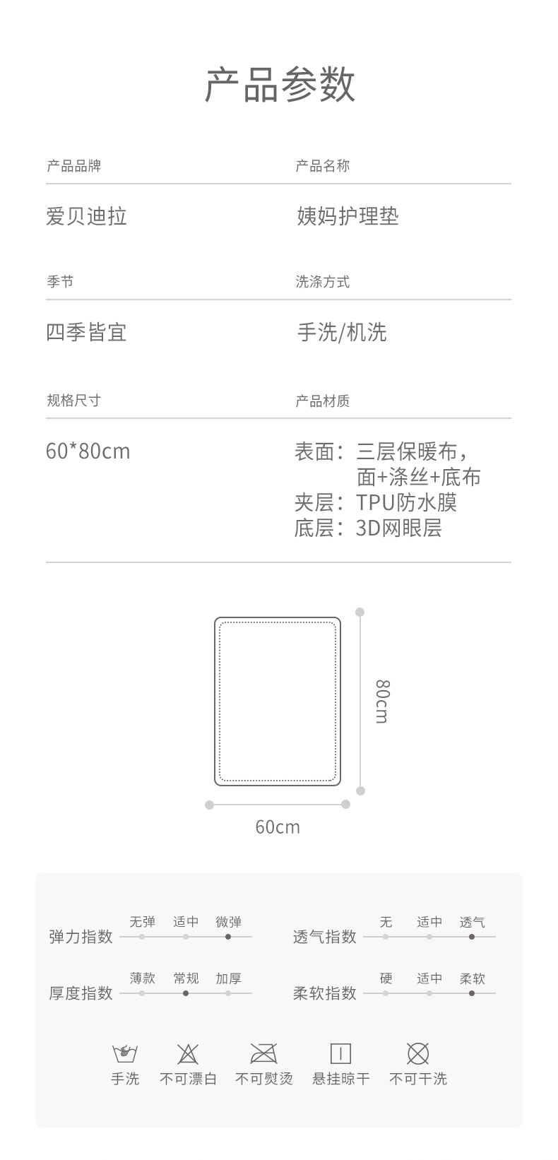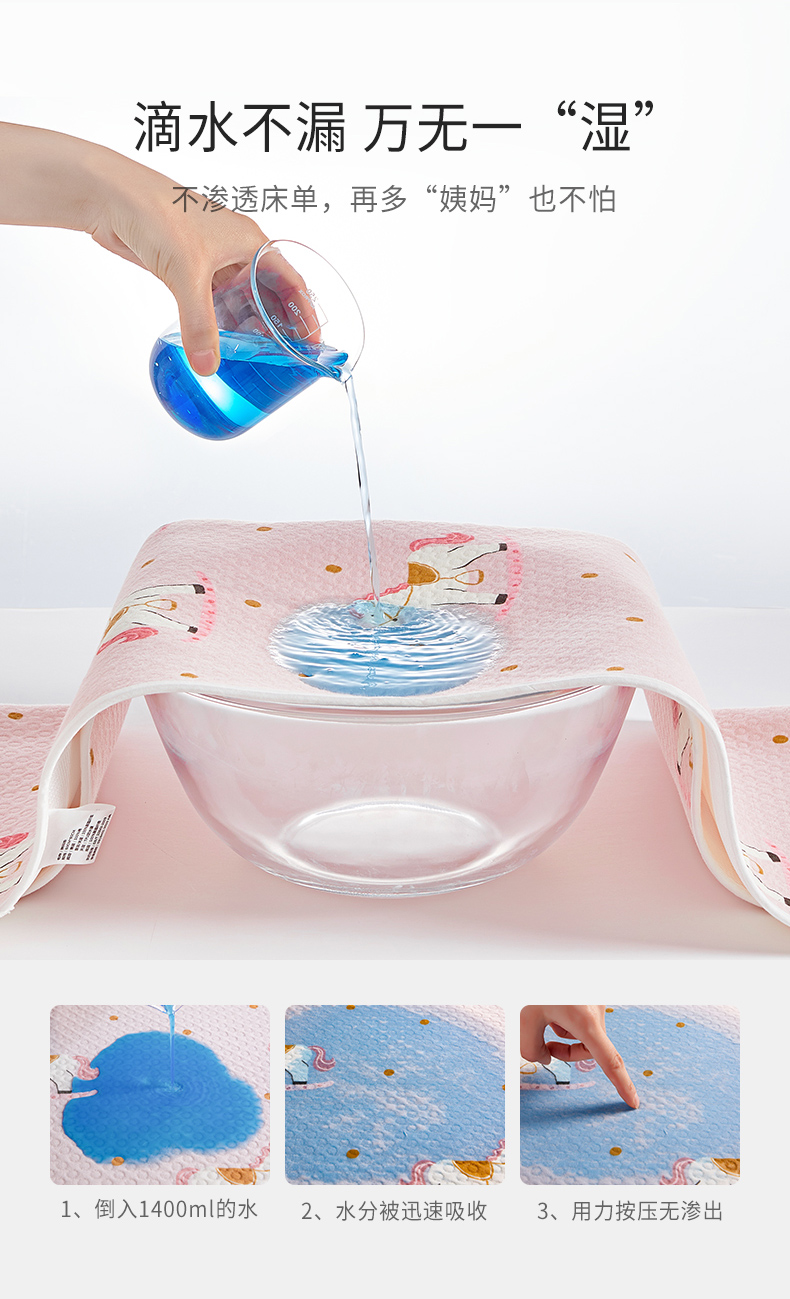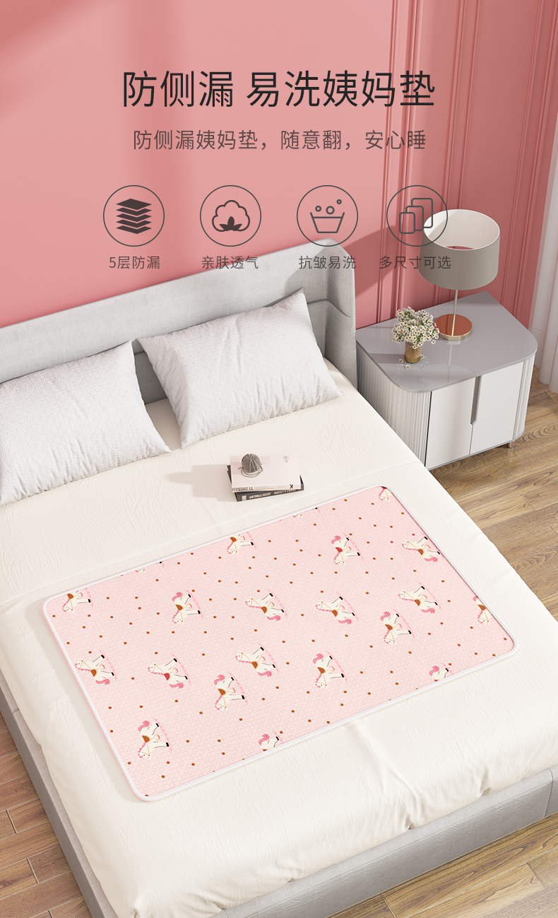 爱贝迪拉(AIBEDILA)姨妈垫学生宿舍生理期月经垫防水隔尿垫可洗防漏例假小垫粉60*80