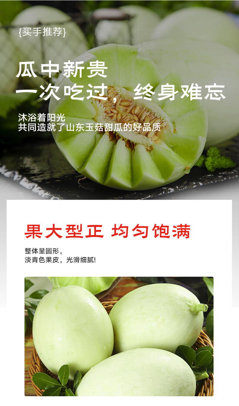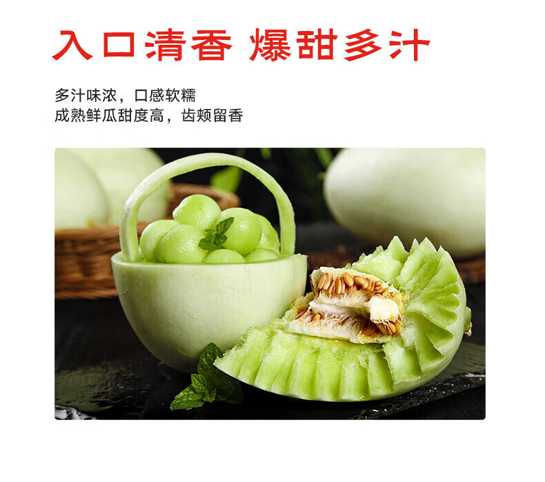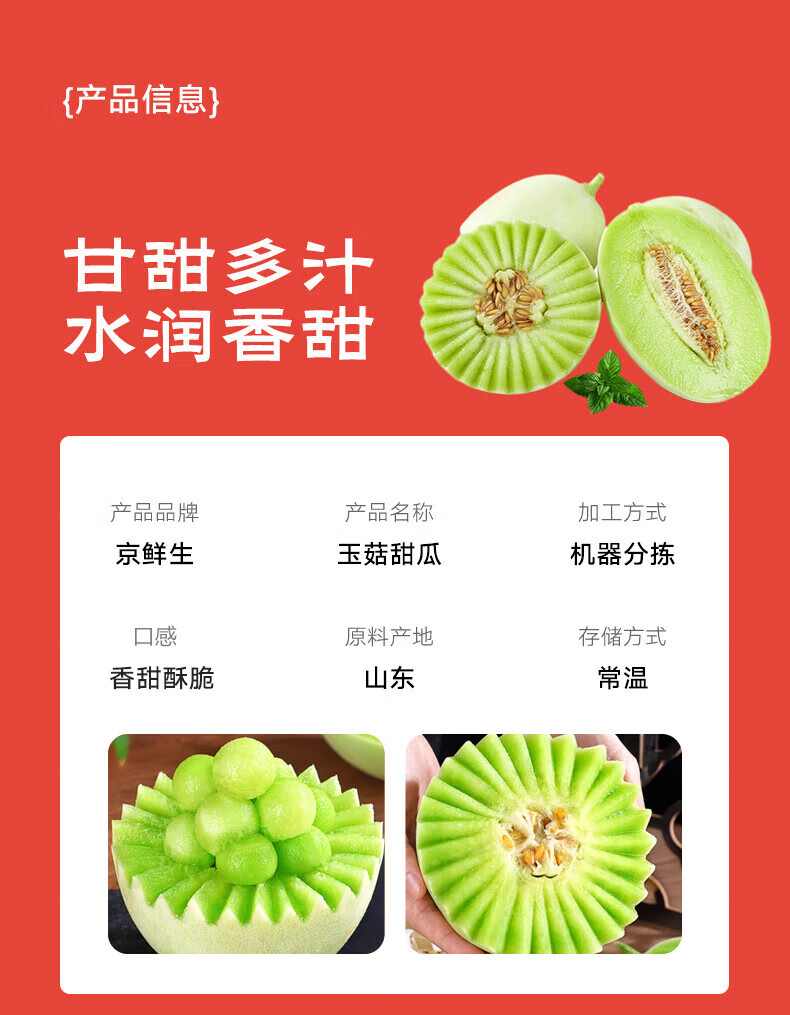 京鲜生 玉菇甜瓜 2粒装 单果重2-2.8斤净重4-5.5斤 水果礼盒