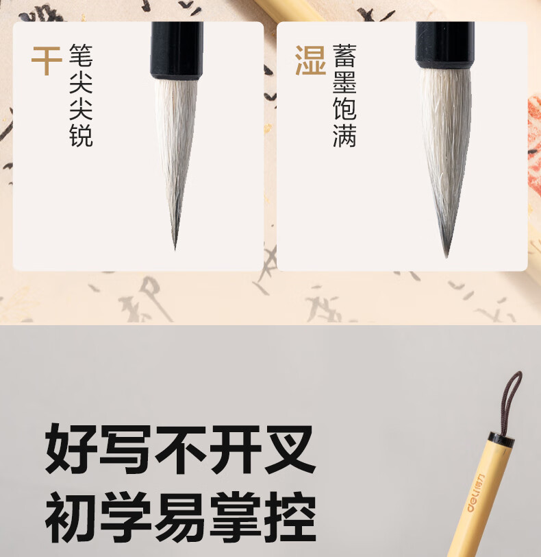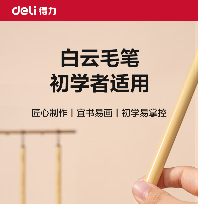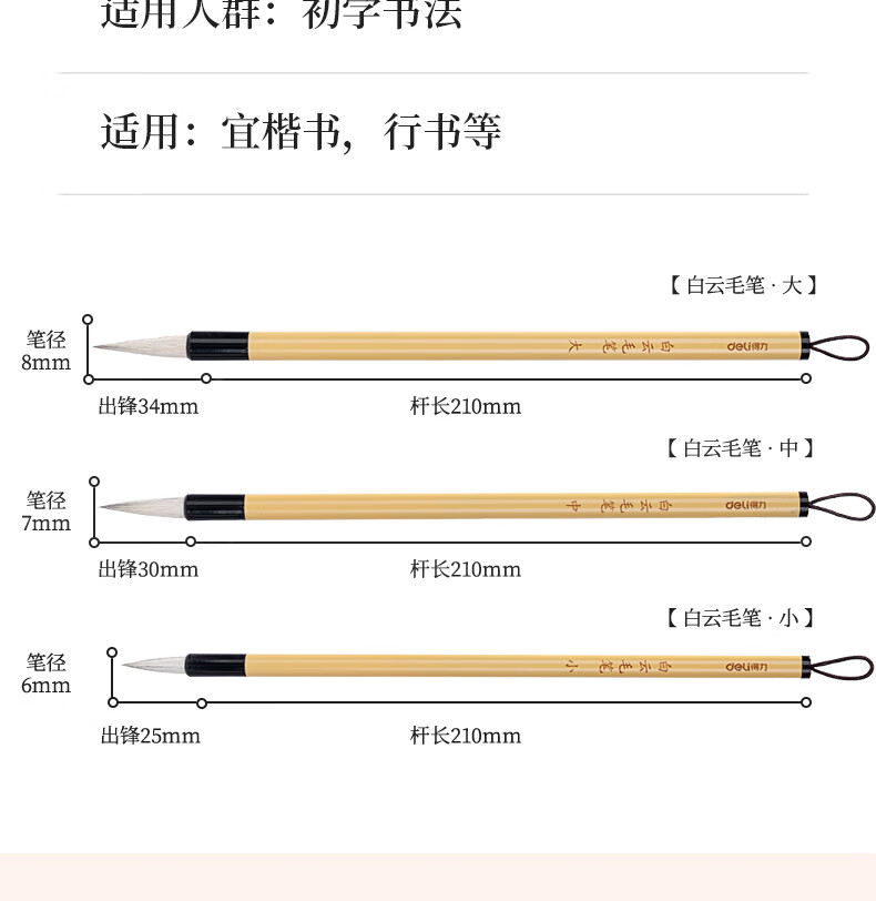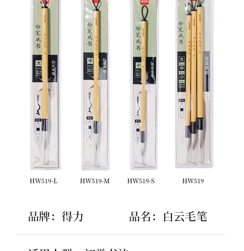 得力(deli)白云毛笔兼毫大白云中楷小楷学生书法国画专用初学者入门毛笔行书中号白云毛笔开学用品