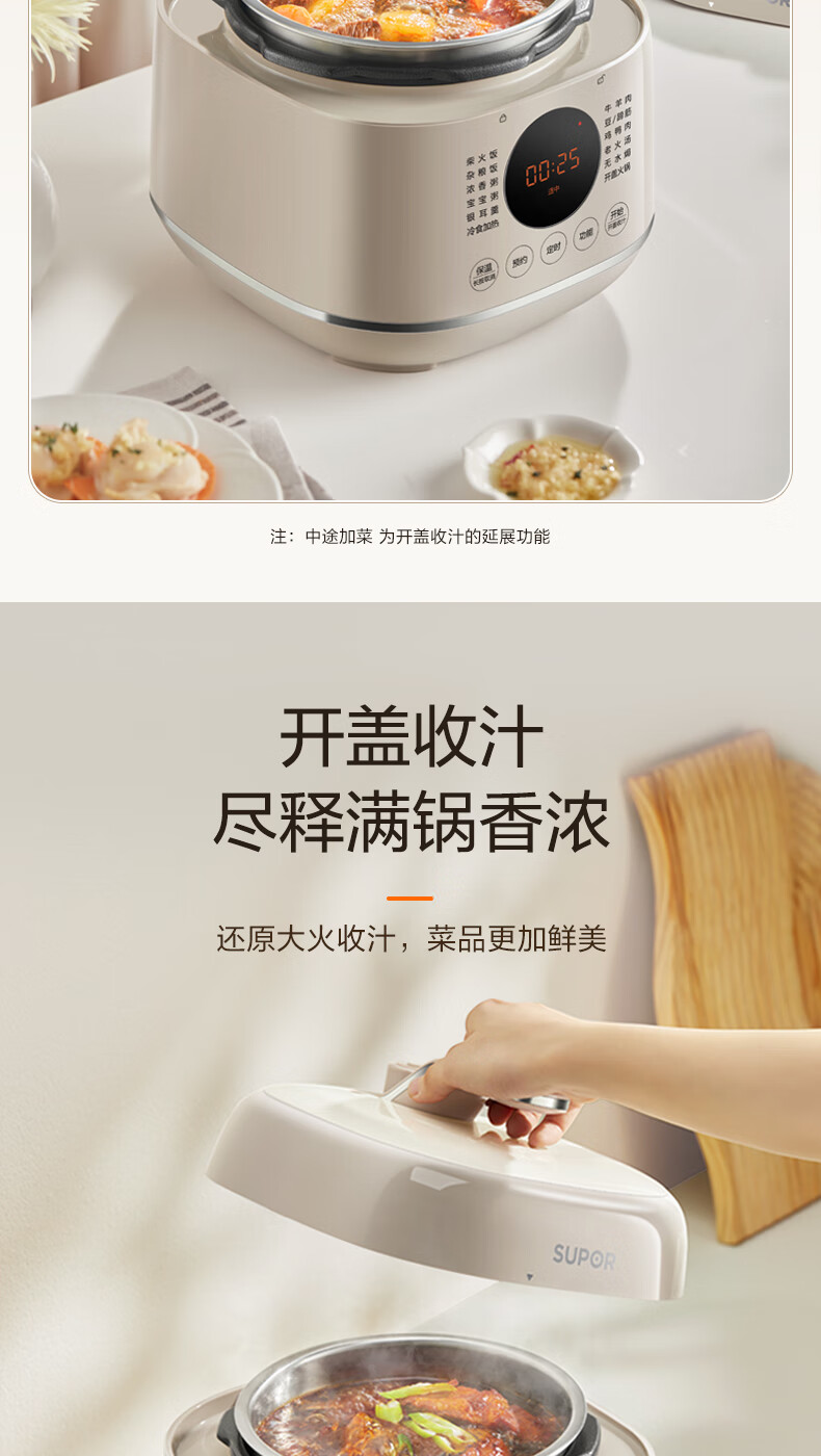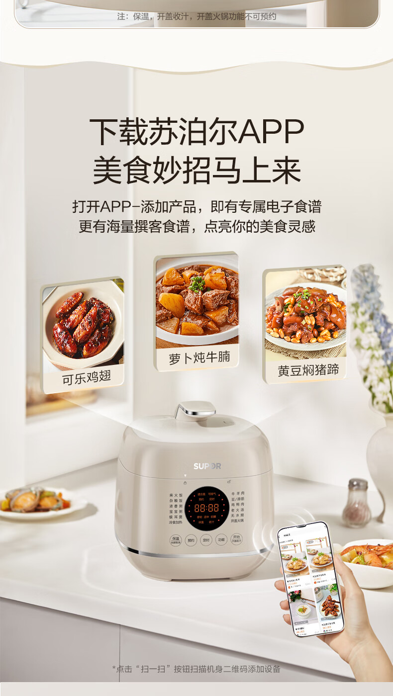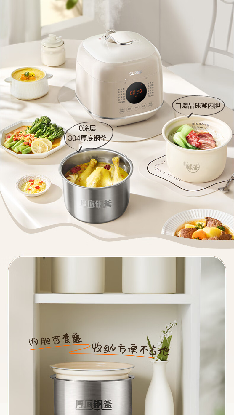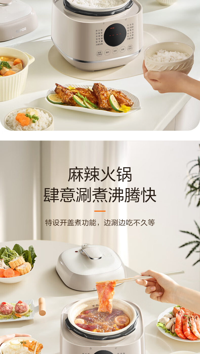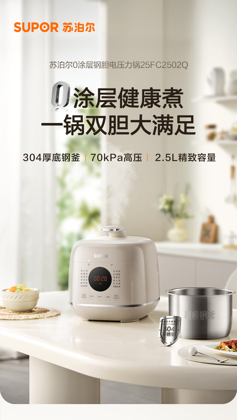苏泊尔(SUPOR)0涂层精钢球釜电压力锅2.5L 开盖火锅家用智能SY-25FC2502Q电饭煲高压锅1-3人