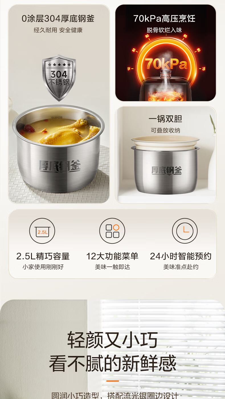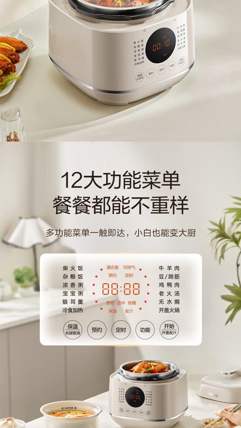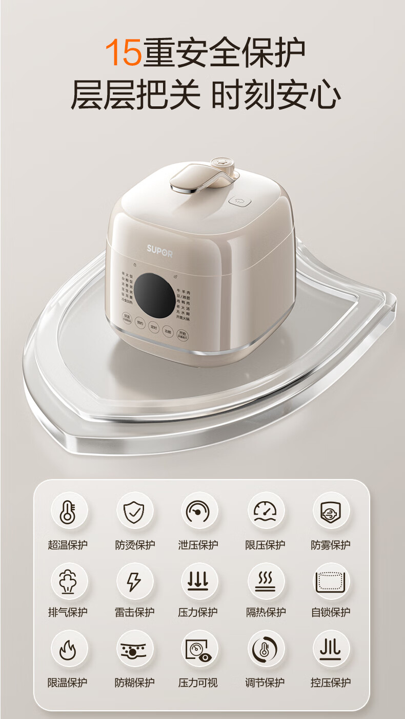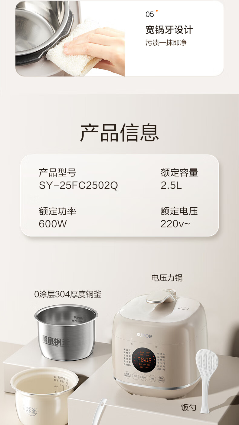 苏泊尔(SUPOR)0涂层精钢球釜电压力锅2.5L 开盖火锅家用智能SY-25FC2502Q电饭煲高压锅1-3人