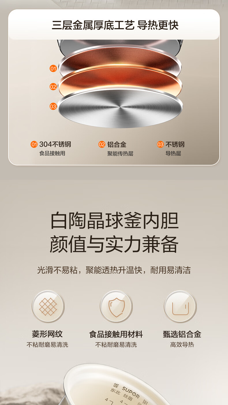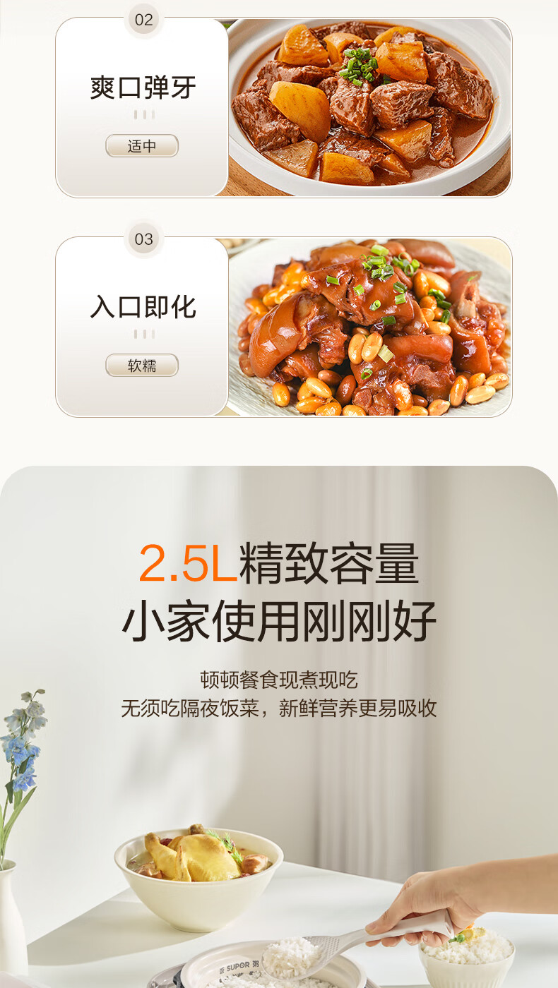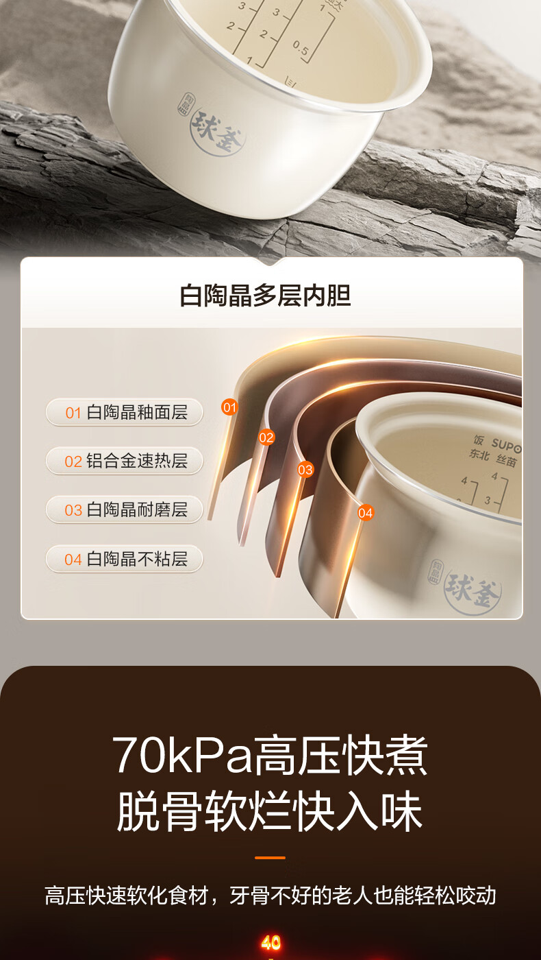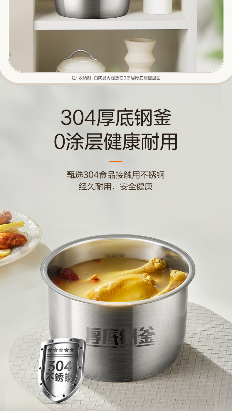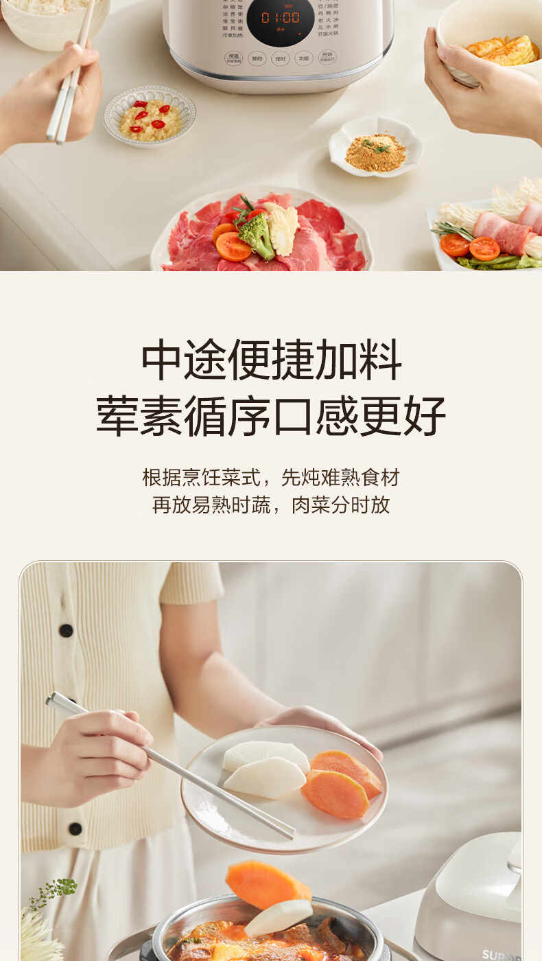 苏泊尔(SUPOR)0涂层精钢球釜电压力锅2.5L 开盖火锅家用智能SY-25FC2502Q电饭煲高压锅1-3人