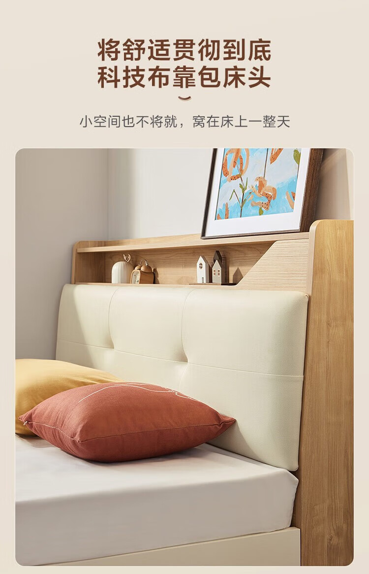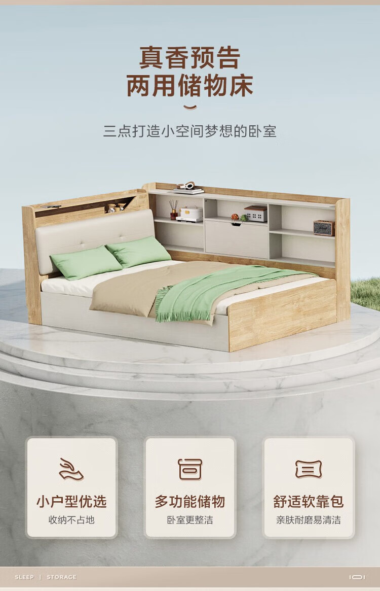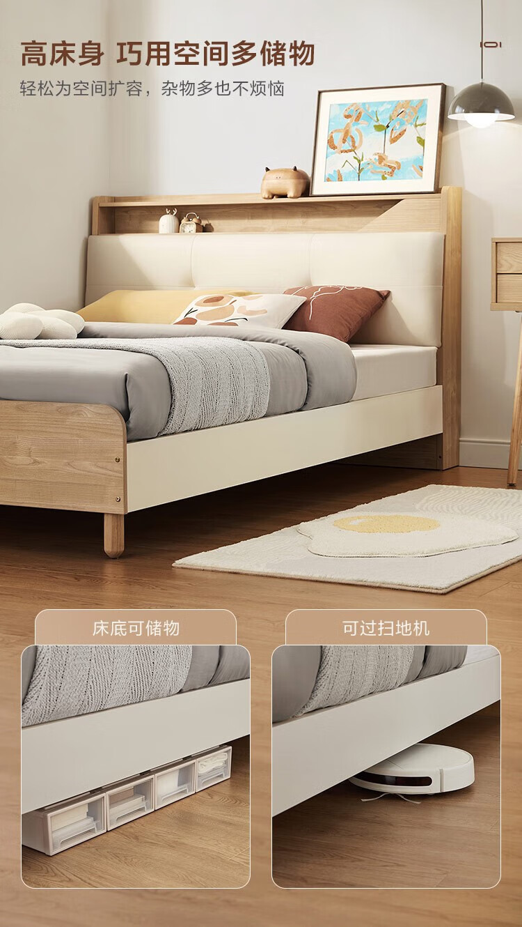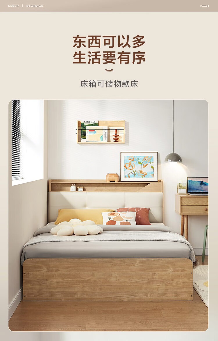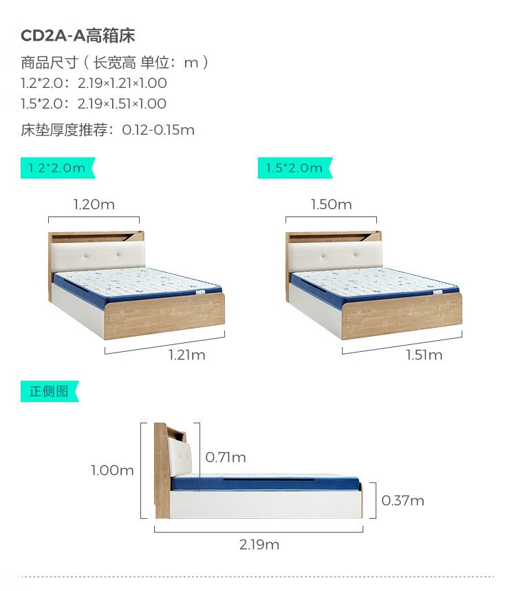 LINSY KIDS床1.5×2米单人床小户型高箱储物床北欧风双人床简约主卧大床CD2A 【床头置物】CD2A高箱储物床 1200*2000