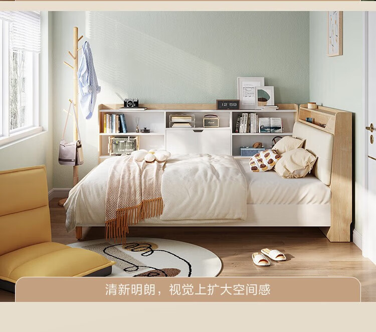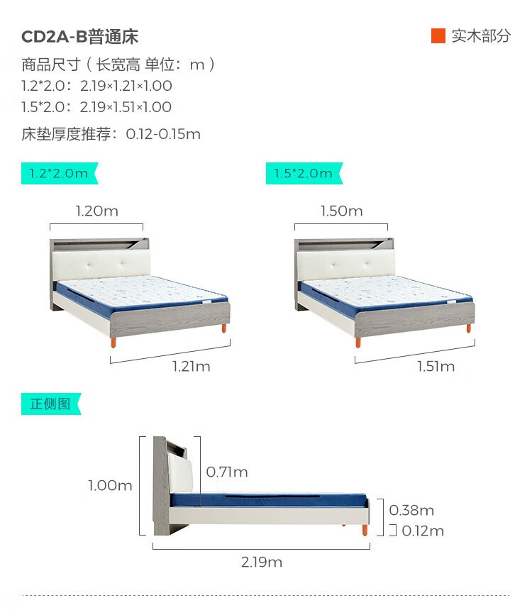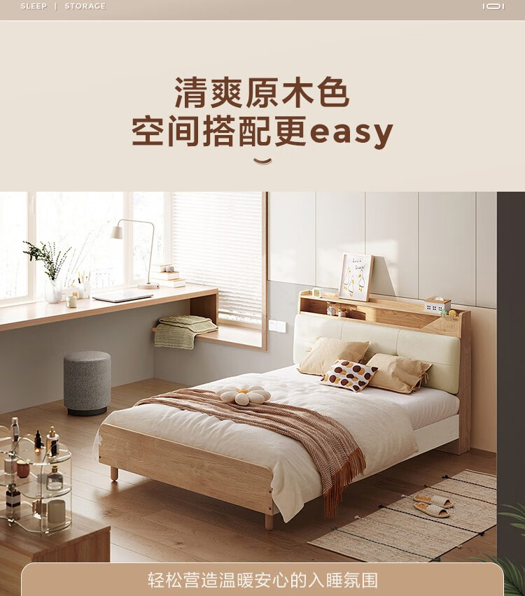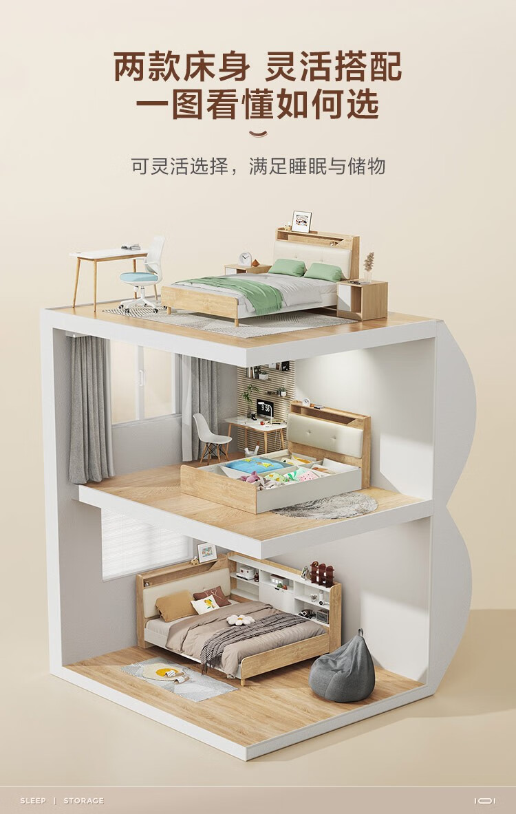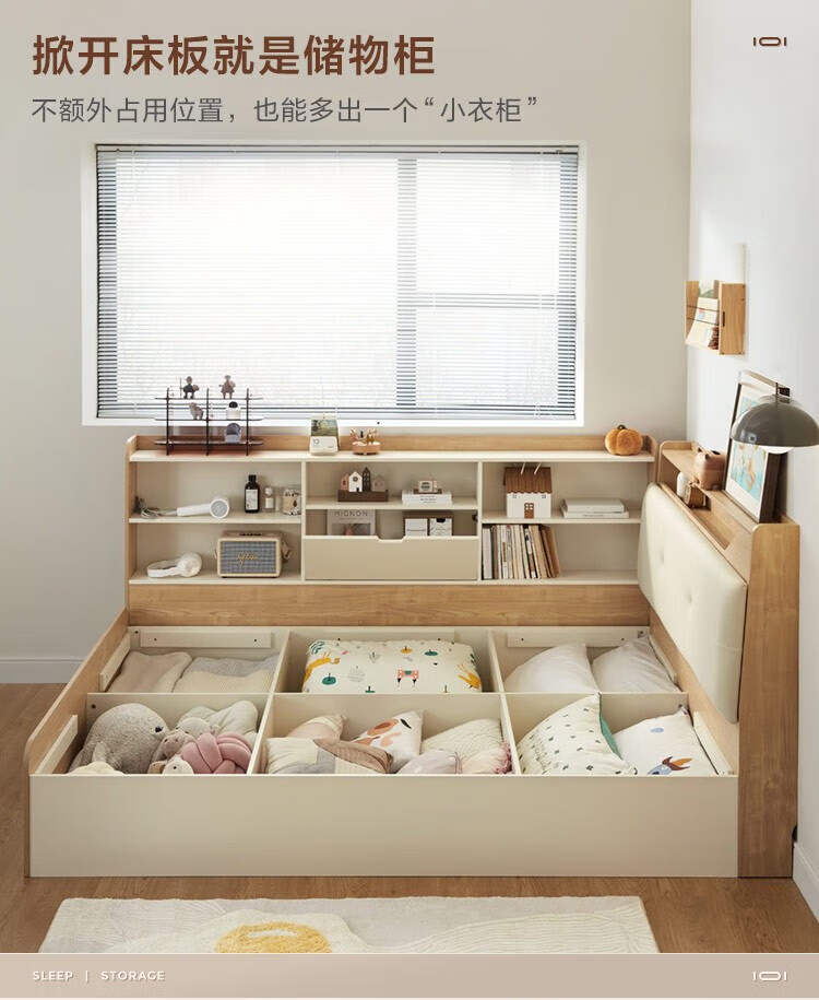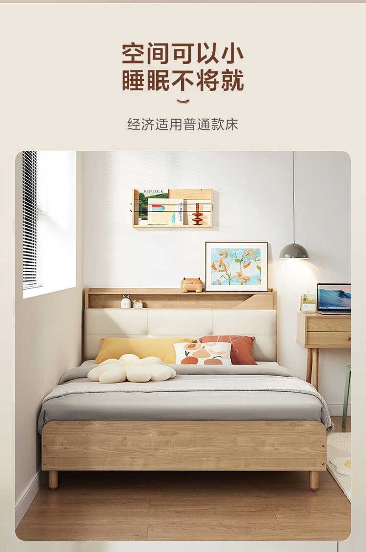 LINSY KIDS床1.5×2米单人床小户型高箱储物床北欧风双人床简约主卧大床CD2A 【床头置物】CD2A高箱储物床 1200*2000
