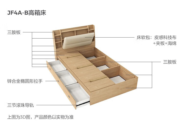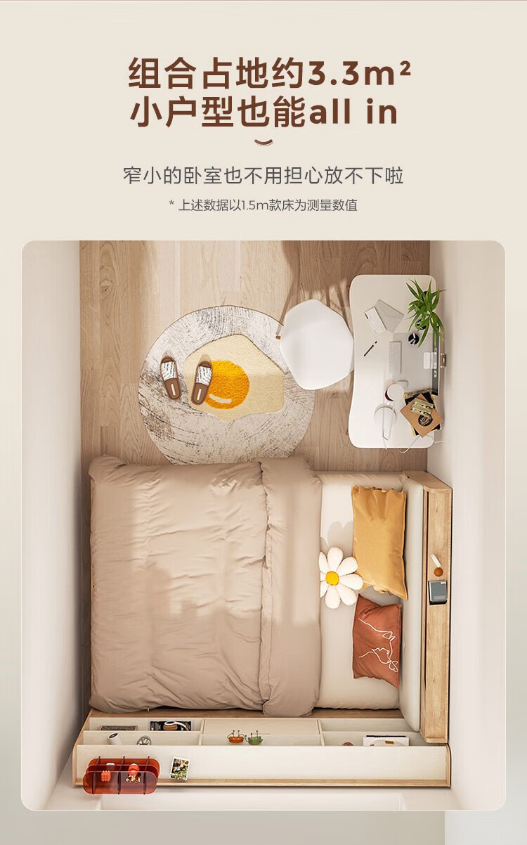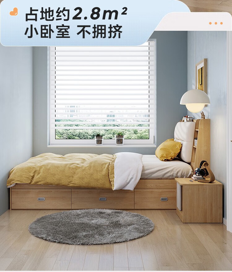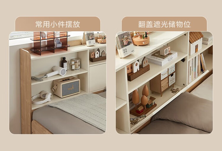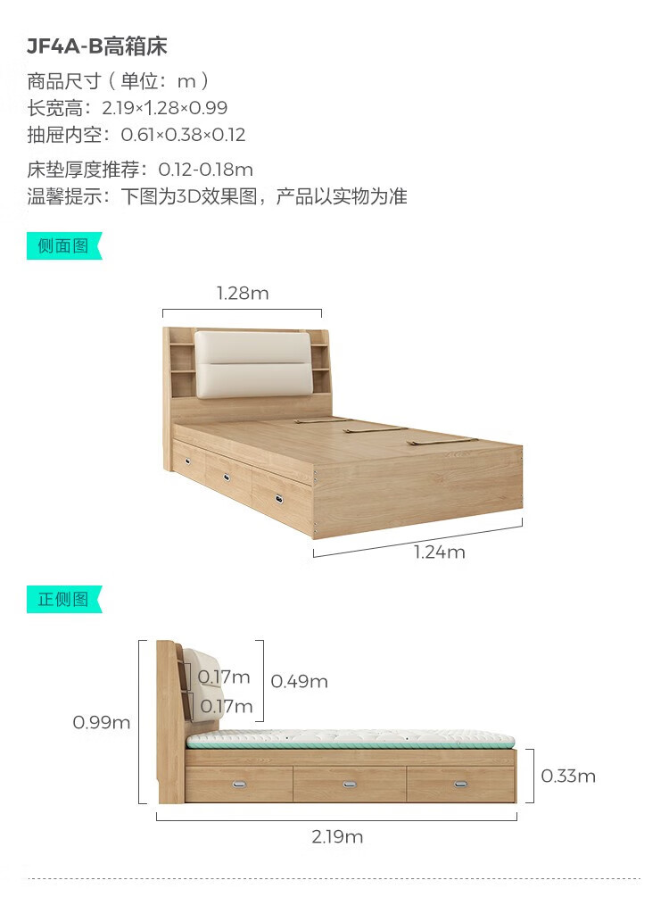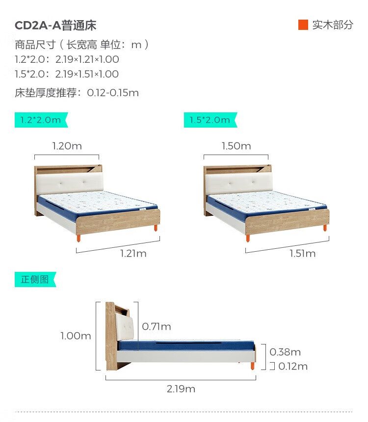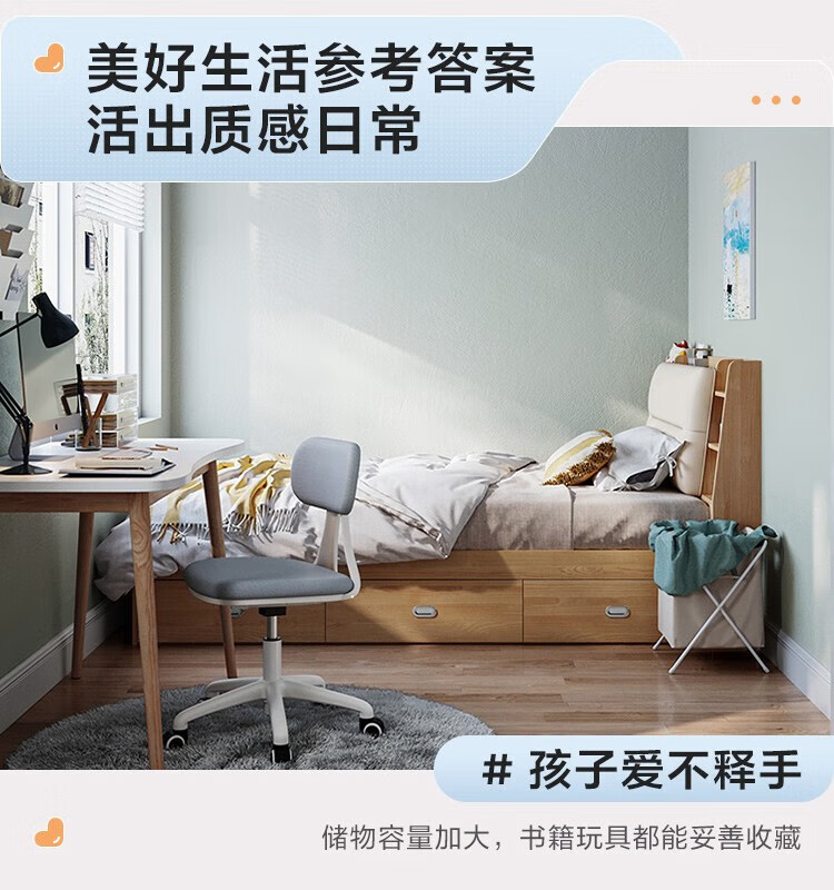 LINSY KIDS床1.5×2米单人床小户型高箱储物床北欧风双人床简约主卧大床CD2A 【床头置物】CD2A高箱储物床 1200*2000