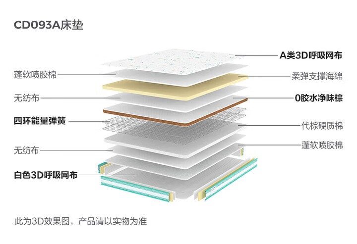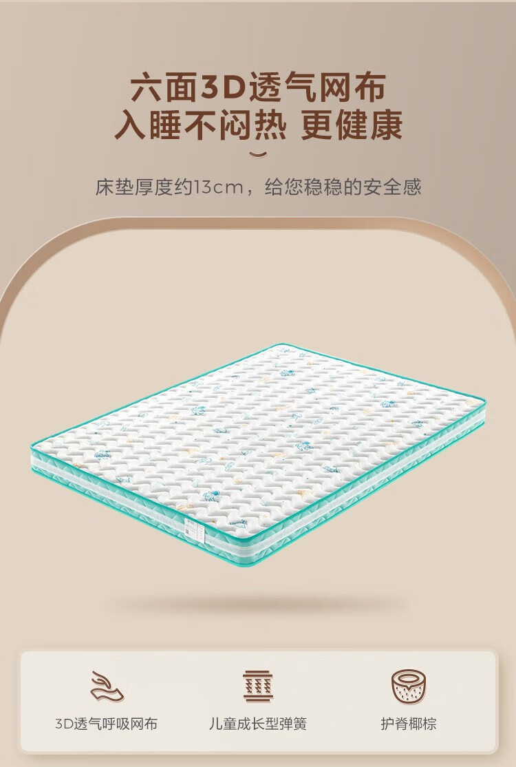 喜临门城市爱情极光白2S 椰棕床垫 邦尼尔弹簧床垫 1.5x2米 偏硬