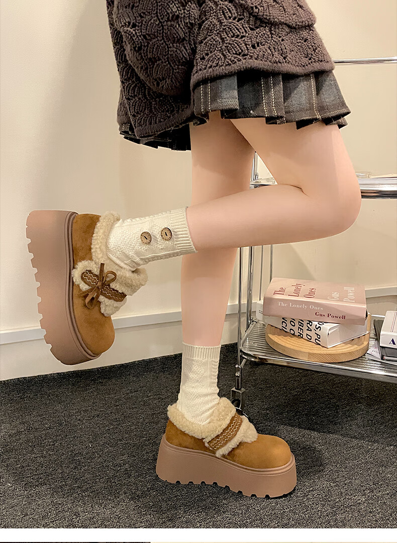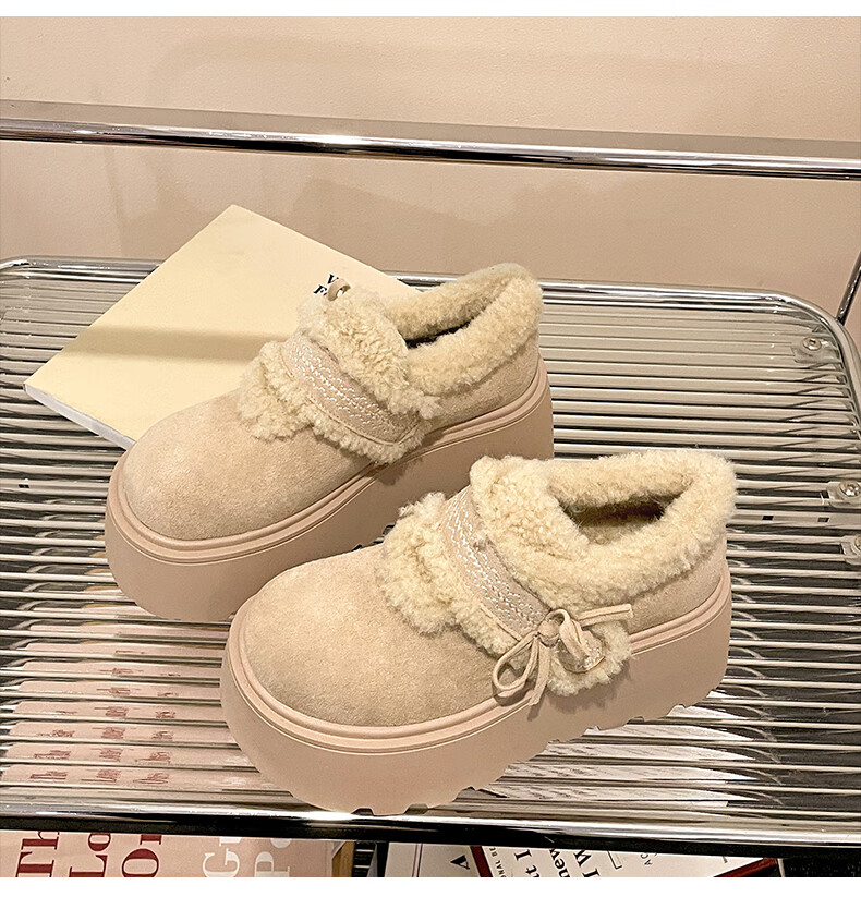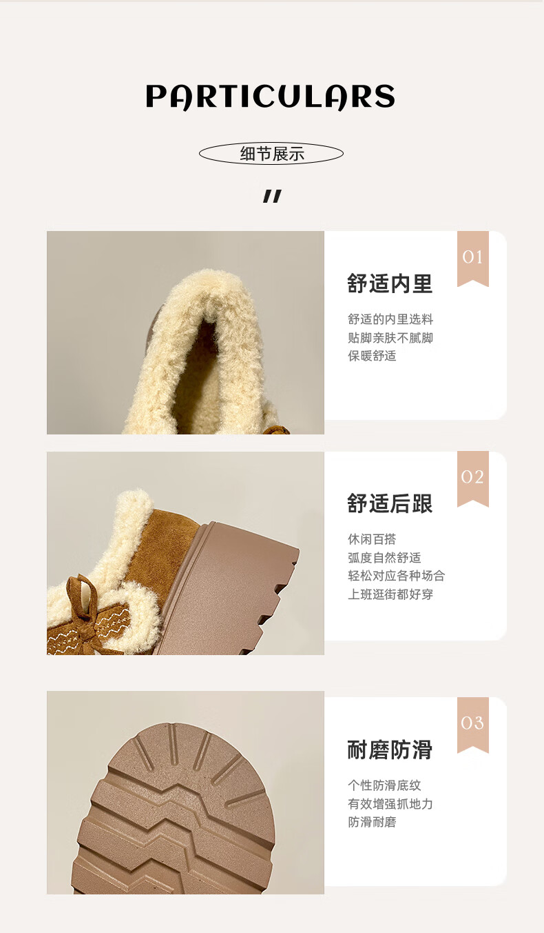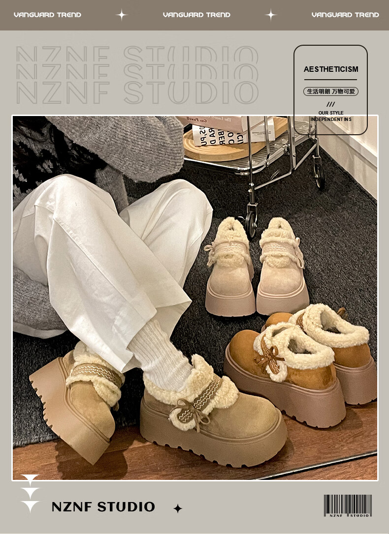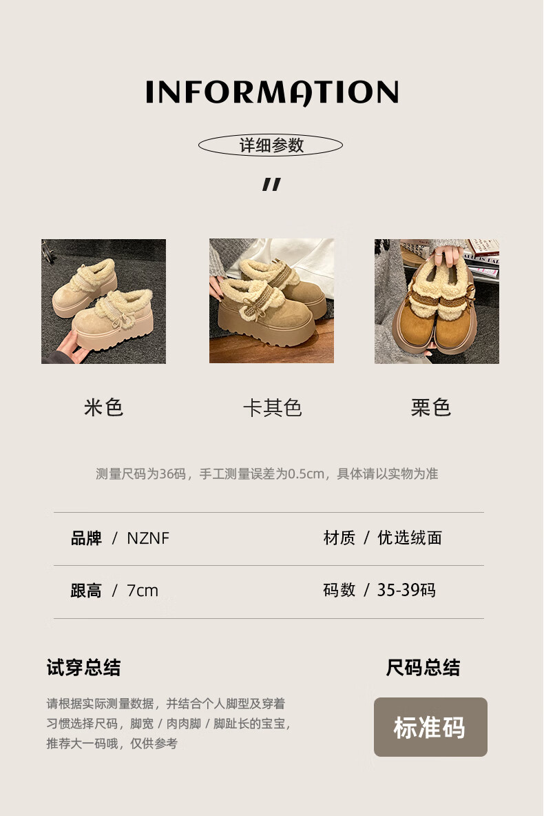 稻草人(MEXICAN)棕色加绒加厚厚底雪地棉鞋女冬2026新款外穿保暖增高毛毛勃肯鞋子 栗色升级版 35
