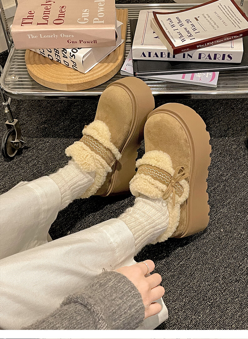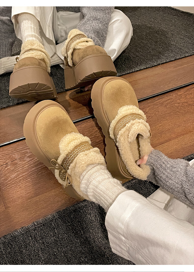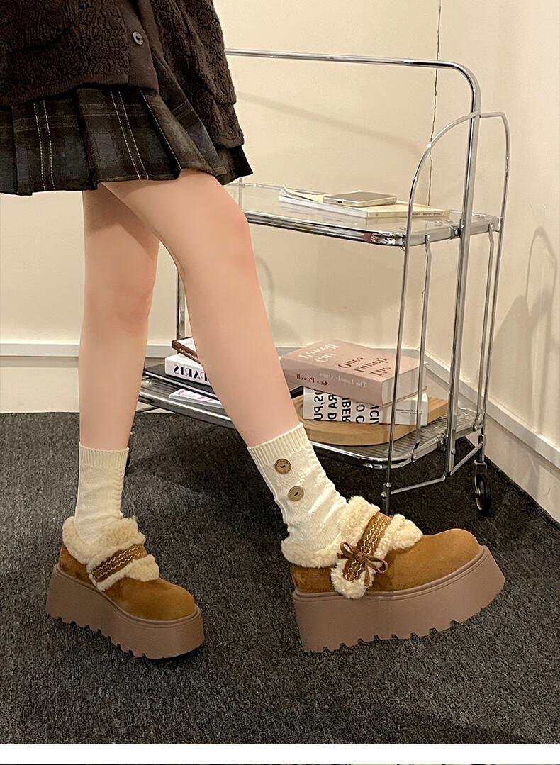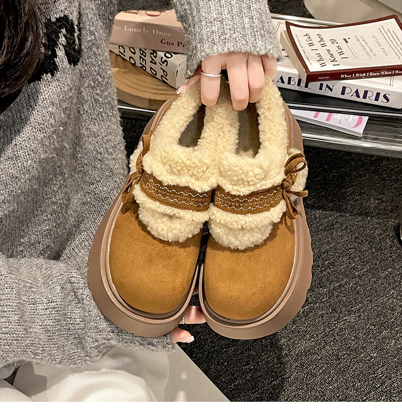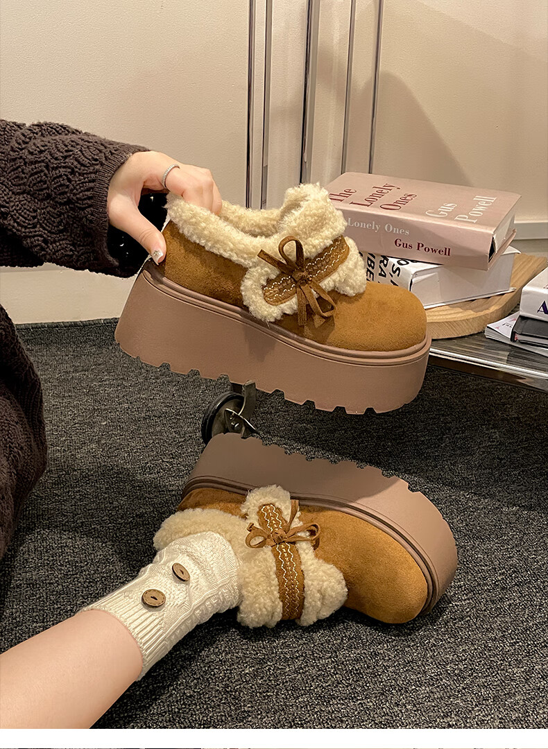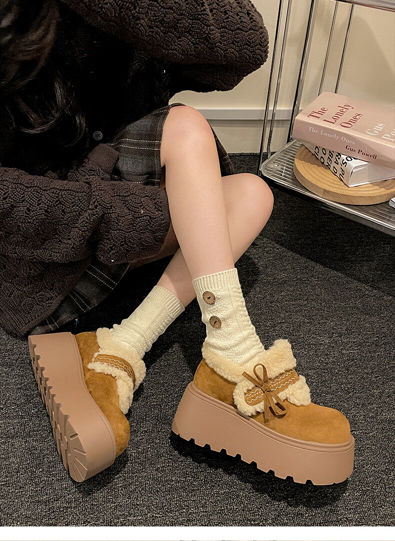 稻草人(MEXICAN)棕色加绒加厚厚底雪地棉鞋女冬2026新款外穿保暖增高毛毛勃肯鞋子 栗色升级版 35