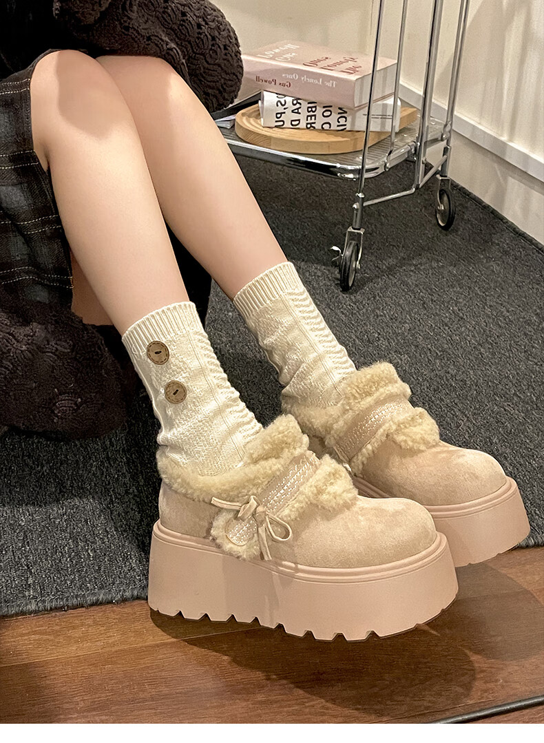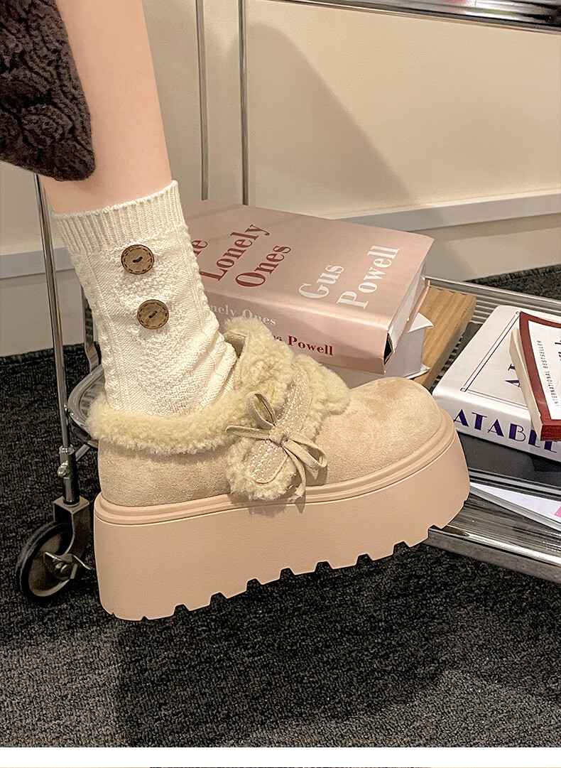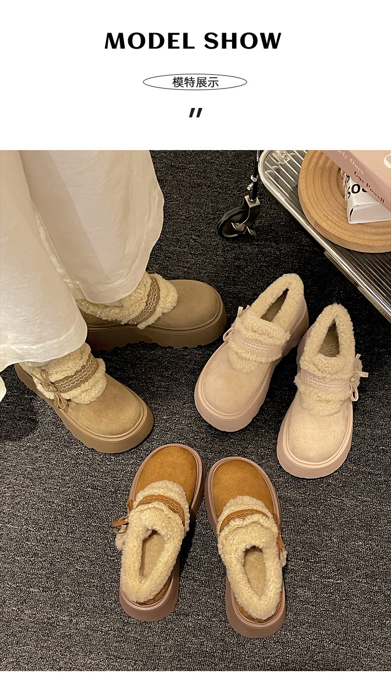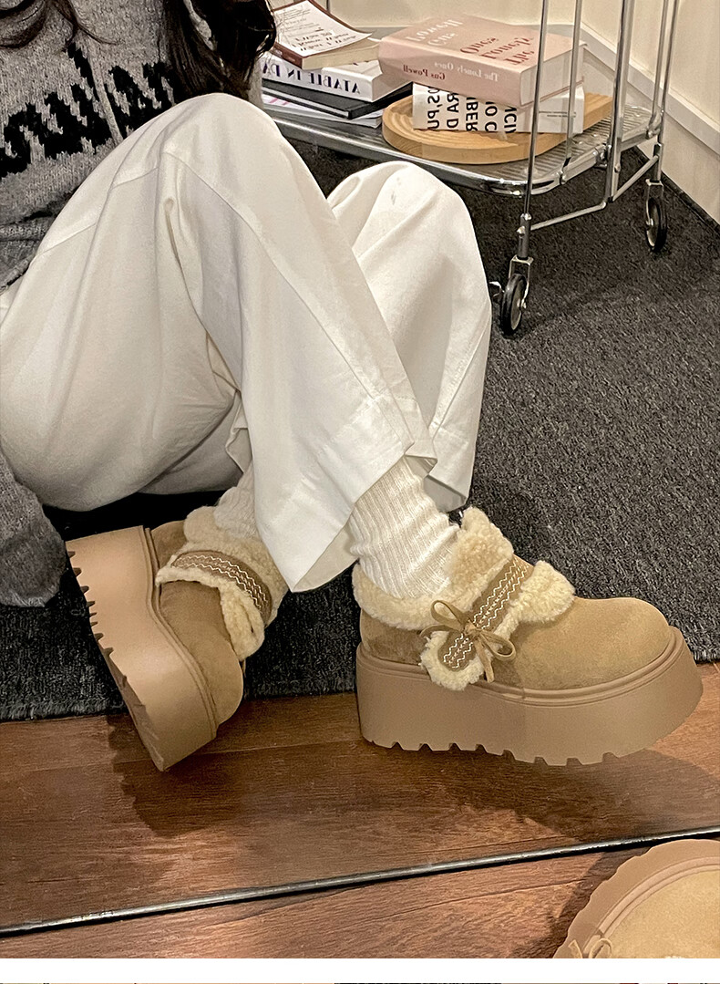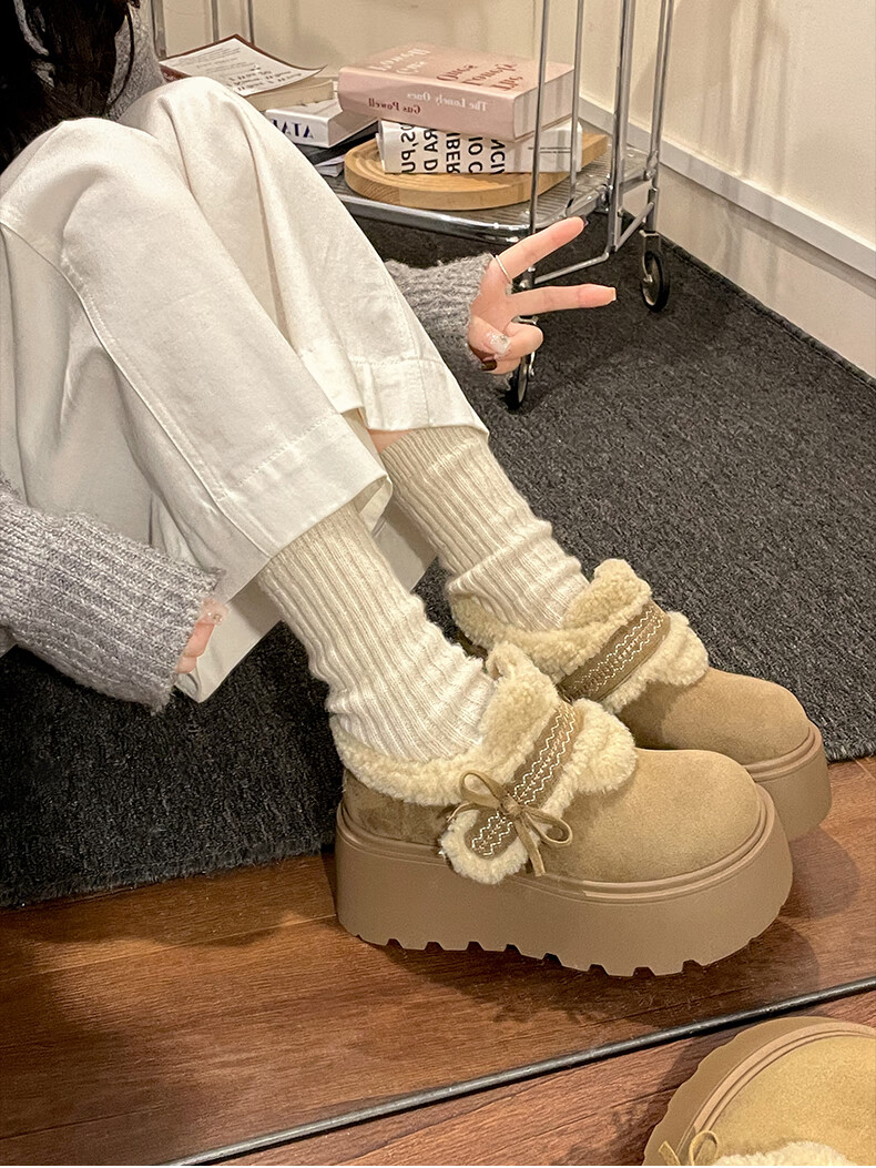 稻草人(MEXICAN)棕色加绒加厚厚底雪地棉鞋女冬2026新款外穿保暖增高毛毛勃肯鞋子 栗色升级版 35
