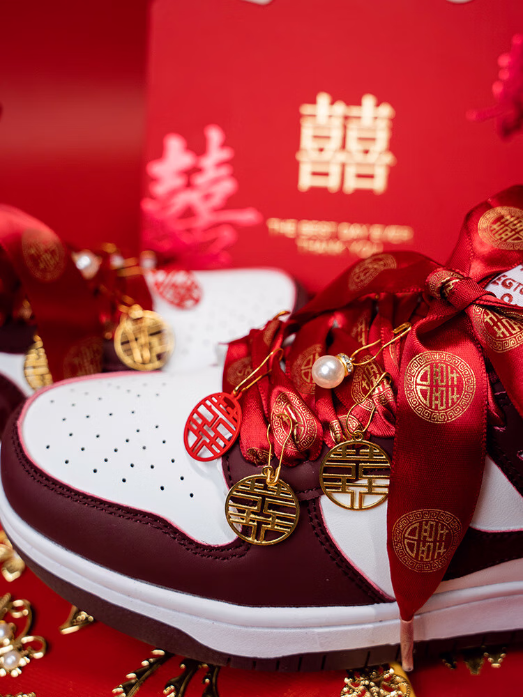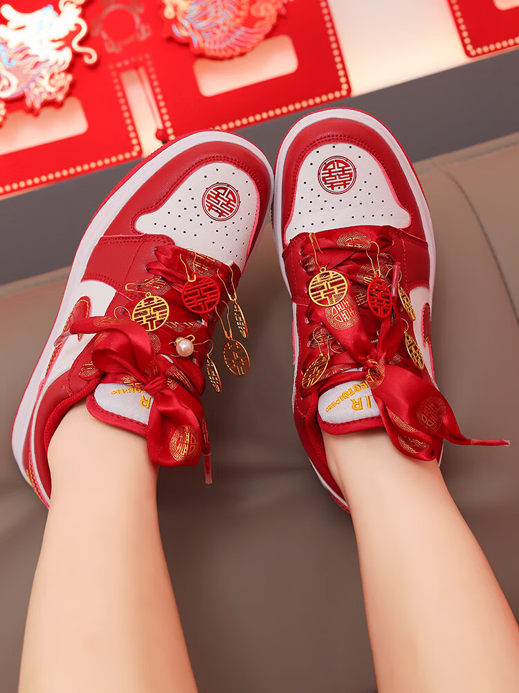 AIR莆田婚鞋秀禾鞋鞋本命年情侣2026款新娘结婚鞋红色男女板鞋 佳人才子 45